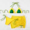 Europeo y Americano Nuevo Simple Sexy Asimétrico Bikini Traje de Tres Piezas Sling Elástico Casual Vacaciones Vestido de Playa