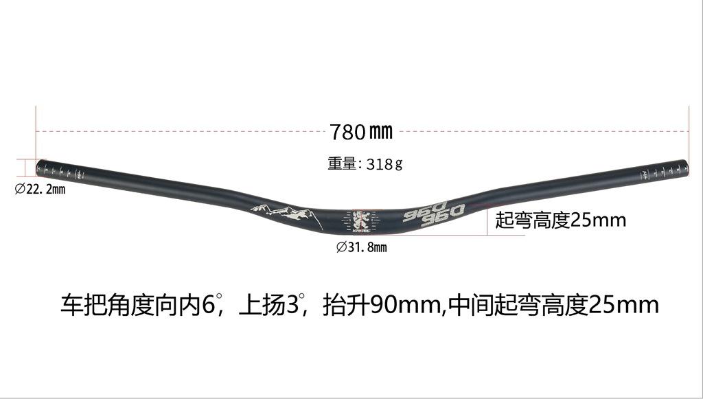 Manillar de aleación de aluminio para bicicleta de montaña KRSEC, todoterreno, diseño ultraligero, esmerilado, universal, accesorios Yanshou