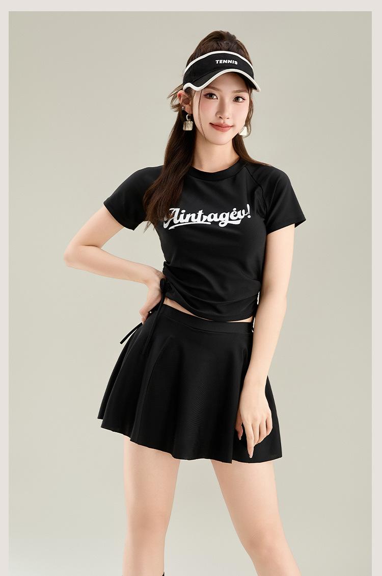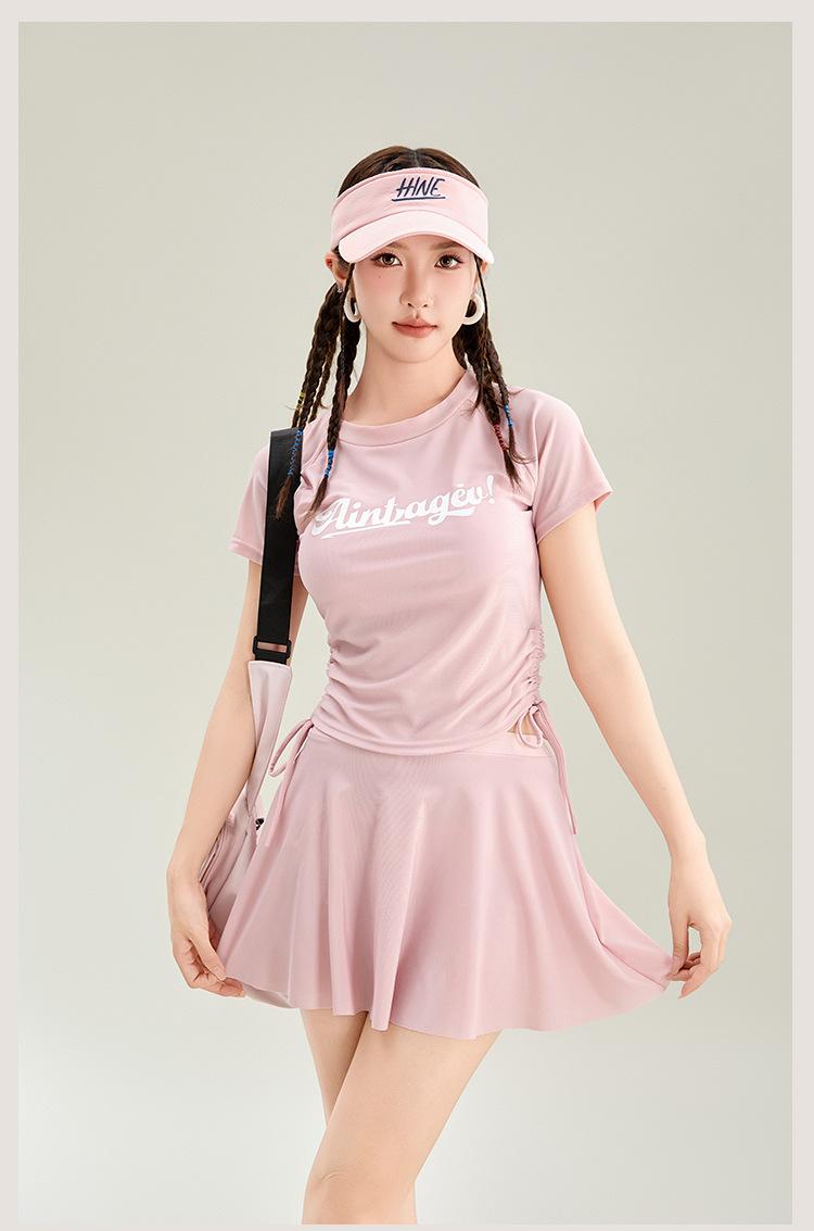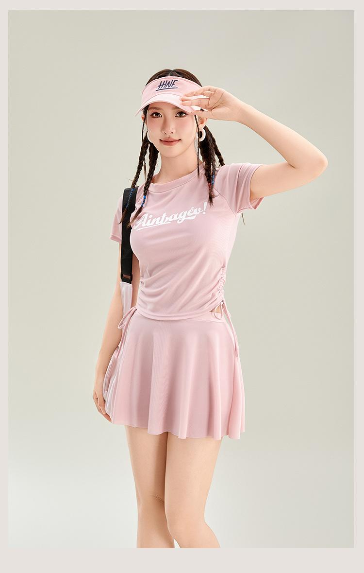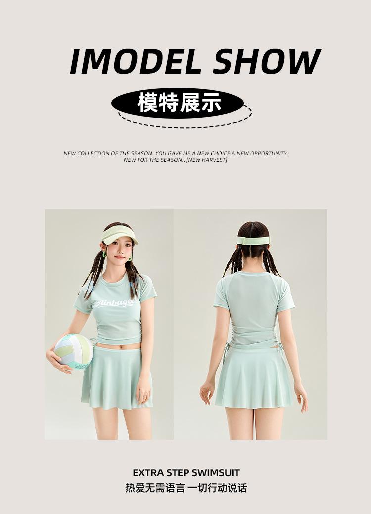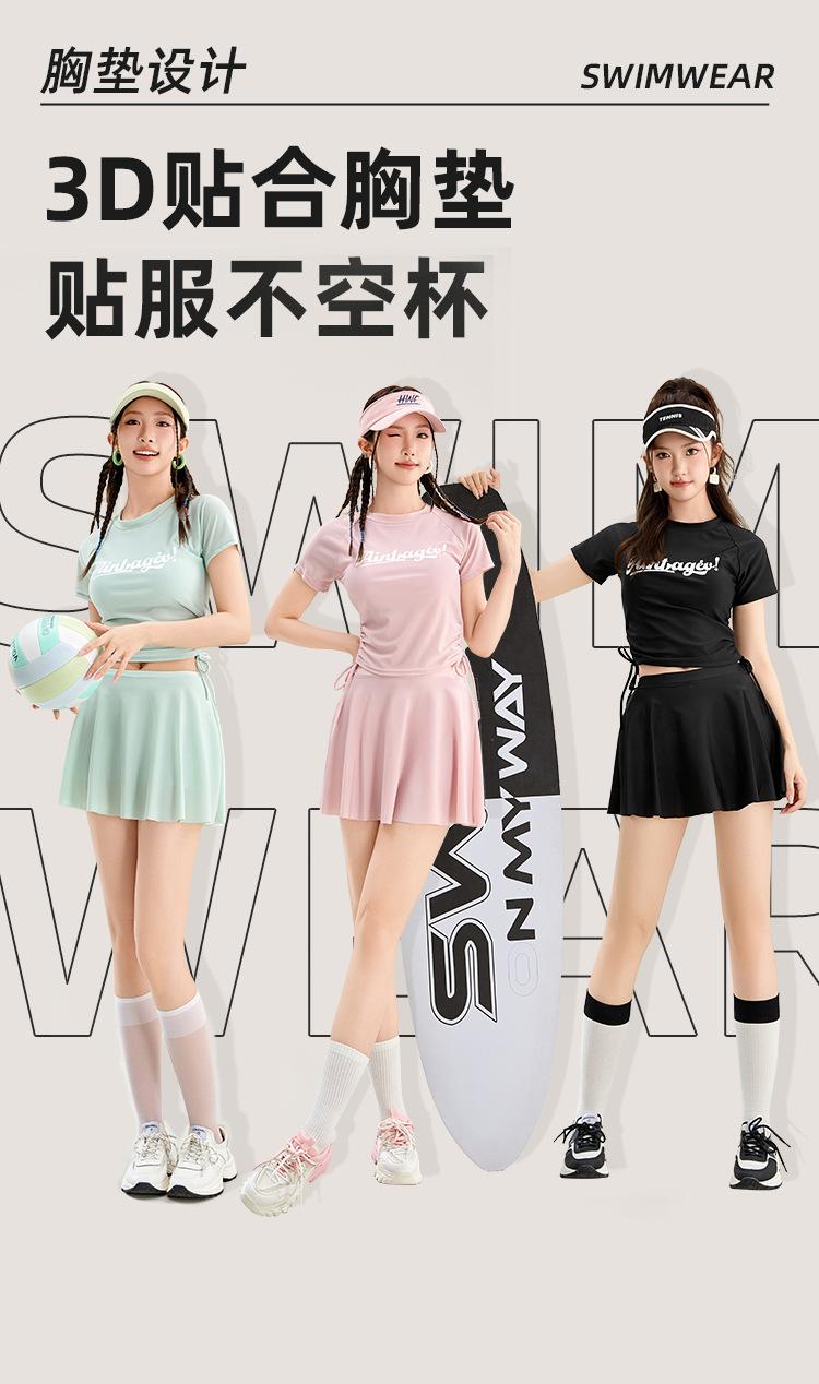 Nuevo Traje de Baño Dividido para Mujer Casual Deportivo con Tirantes Traje de Baño para Surf Aguas Termales Falda de Manga Corta Traje de Baño al Por Mayor