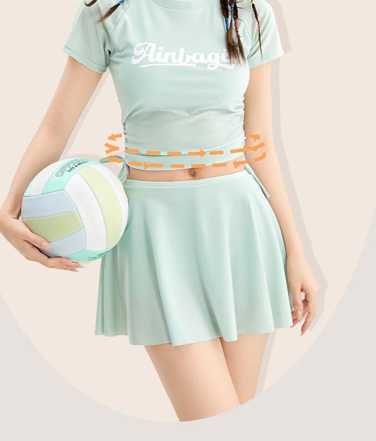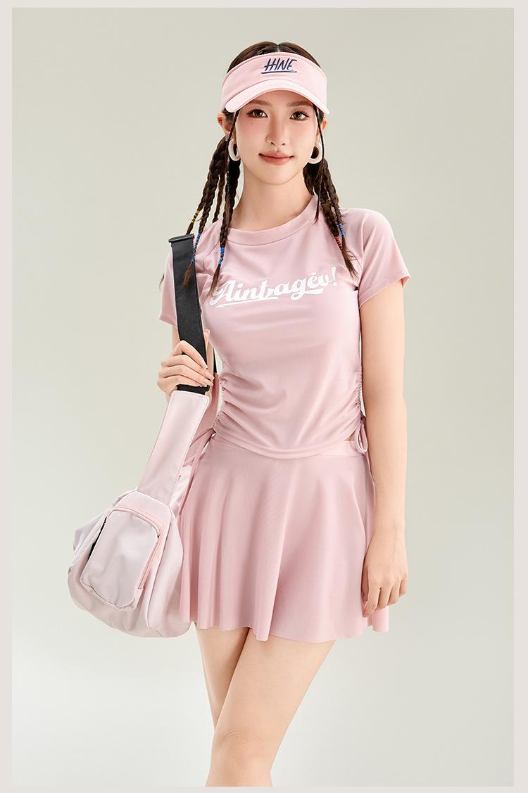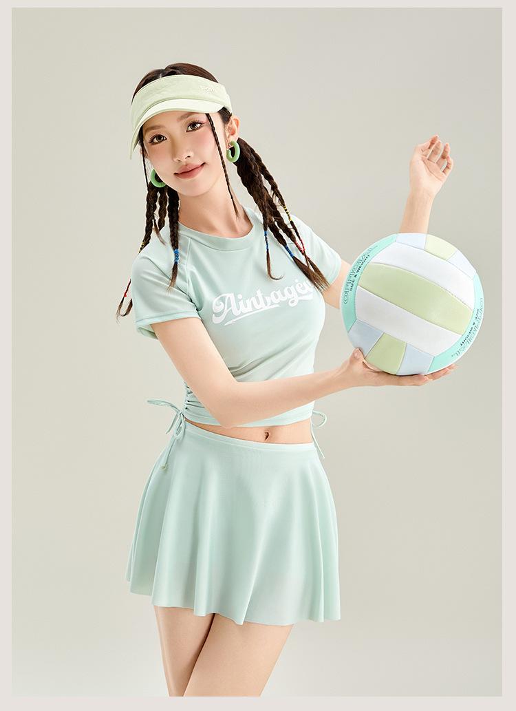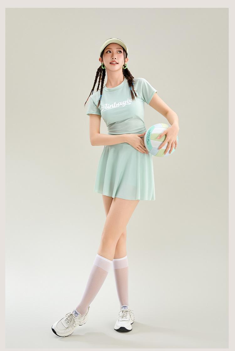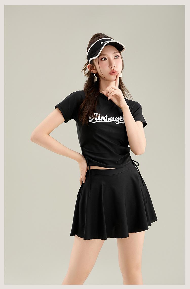 Nuevo Traje de Baño Dividido para Mujer Casual Deportivo con Tirantes Traje de Baño para Surf Aguas Termales Falda de Manga Corta Traje de Baño al Por Mayor