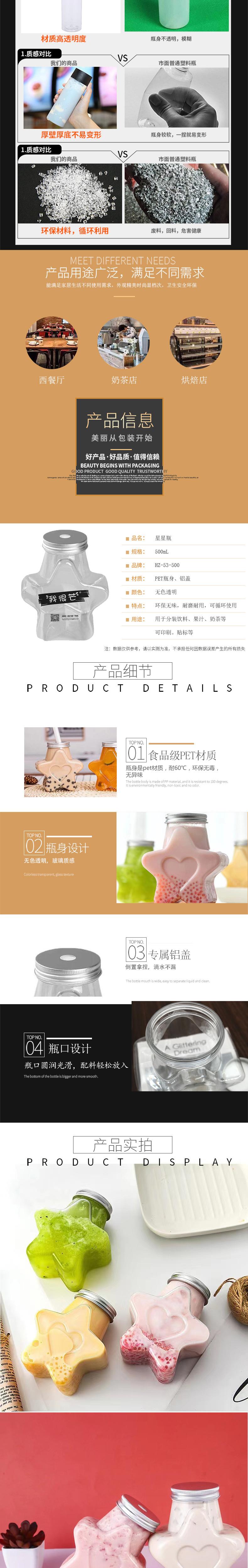 Botella de Té con Leche Estrella de 500 ml Celebridad de Internet Transparente Botella para Bebida de Jugo Desechable para Llevar Grado Alimenticio Botella de Plástico PET