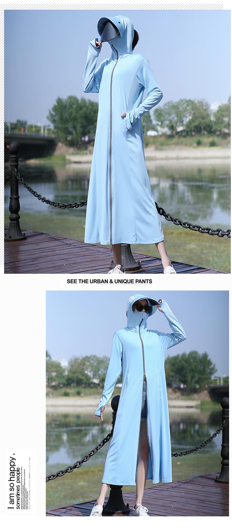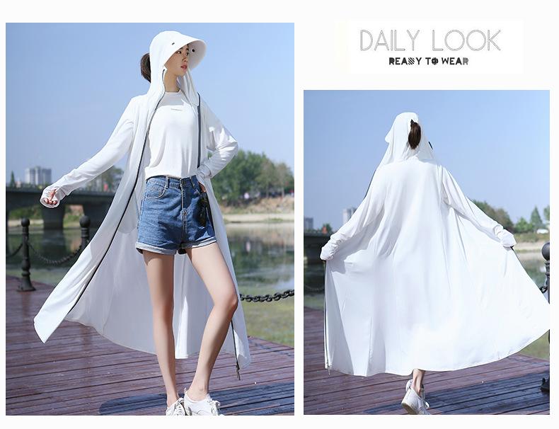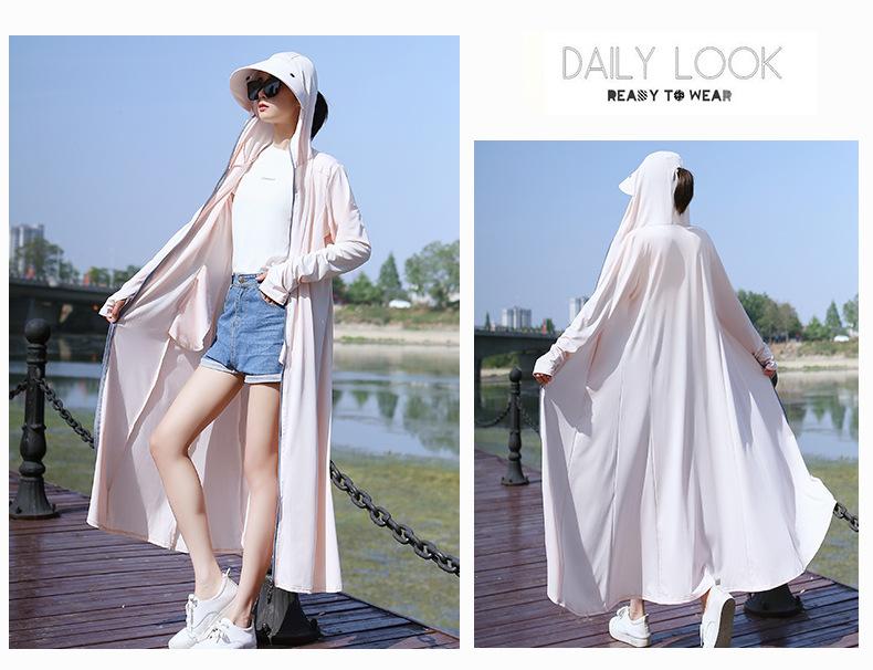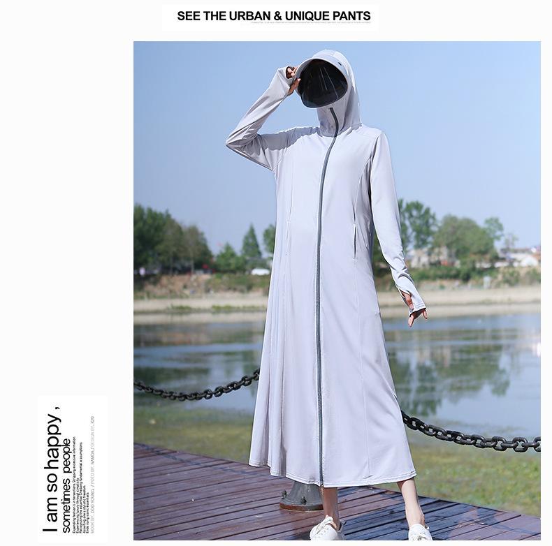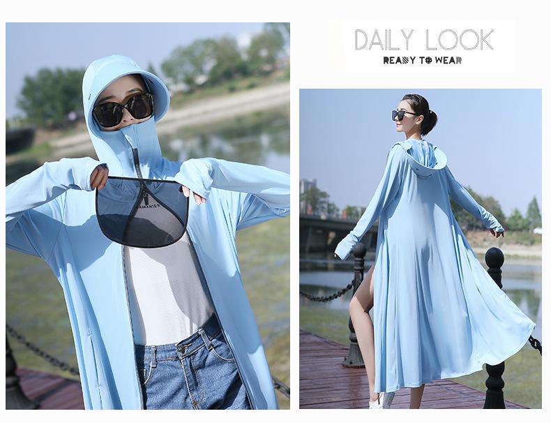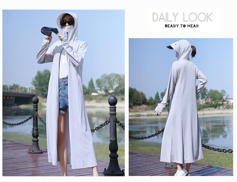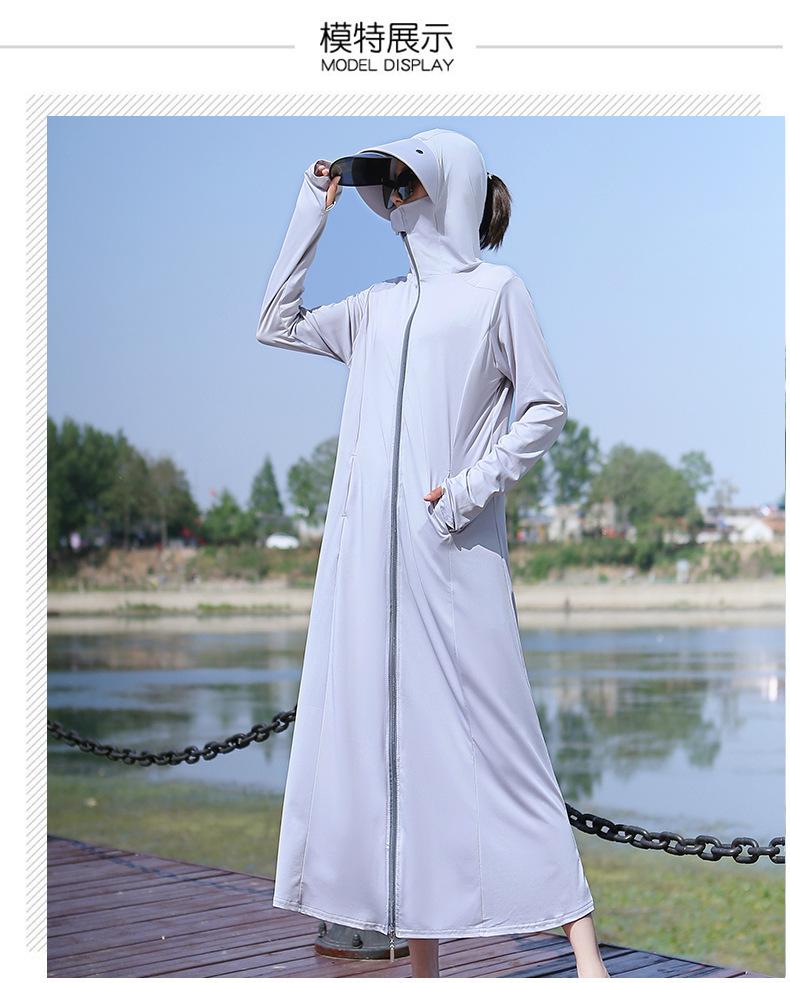 Ropa de Protección Solar para Mujer Largo hasta la Rodilla 2025 Nuevo Verano Fino Seda de Hielo Camisa de Protección Solar de Manga Larga Ropa de Protección Solar Transpirable Protección UV