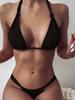 Traje de baño sexy plisado bikini europeo y americano al por mayor transfronterizo 2025, traje de baño sexy con tirantes separados, color sólido, anudado, bikini