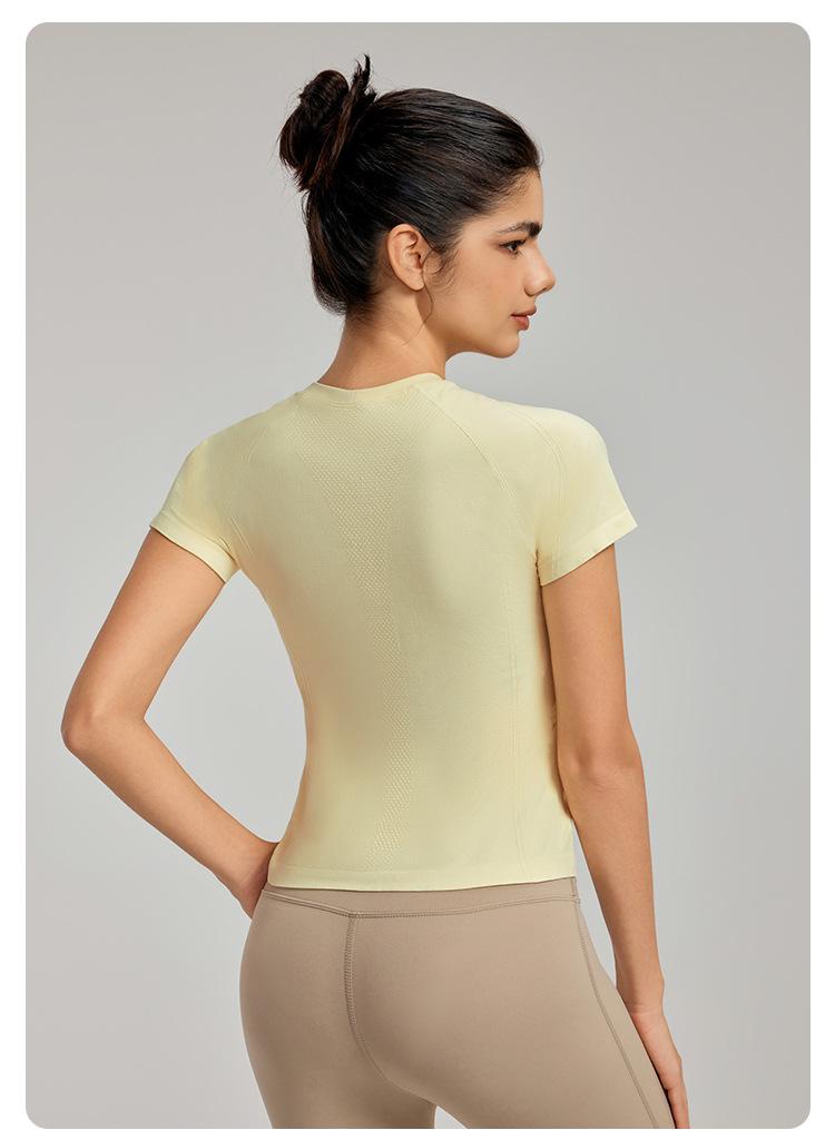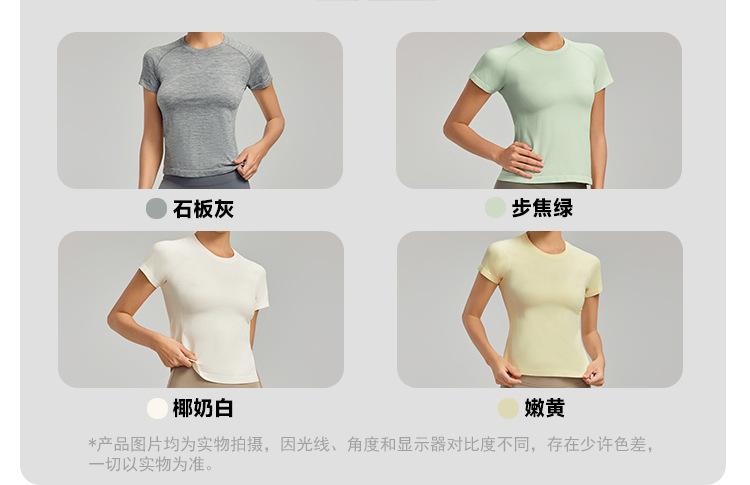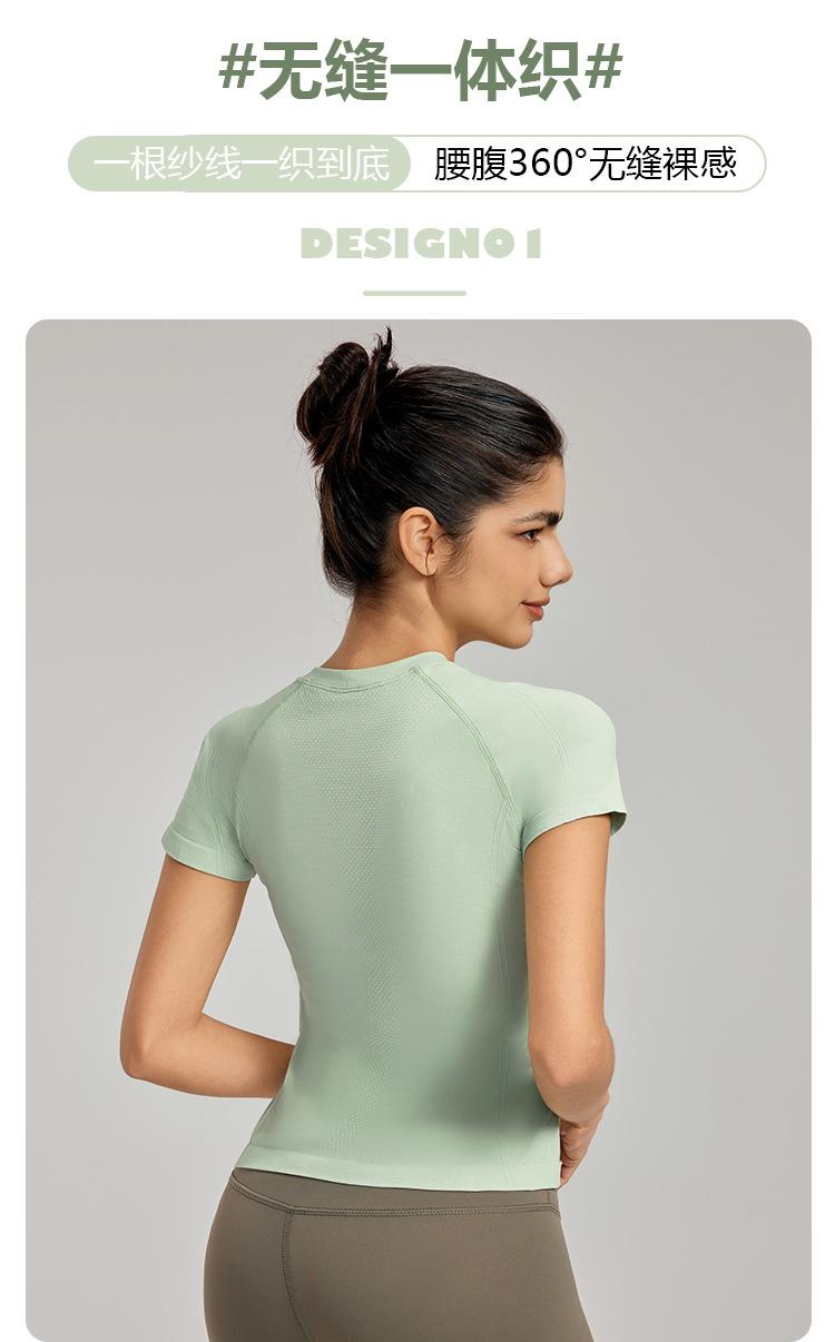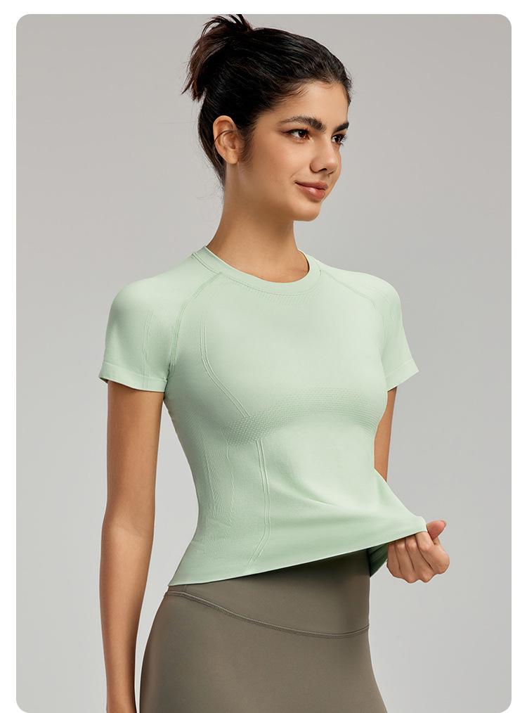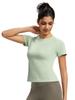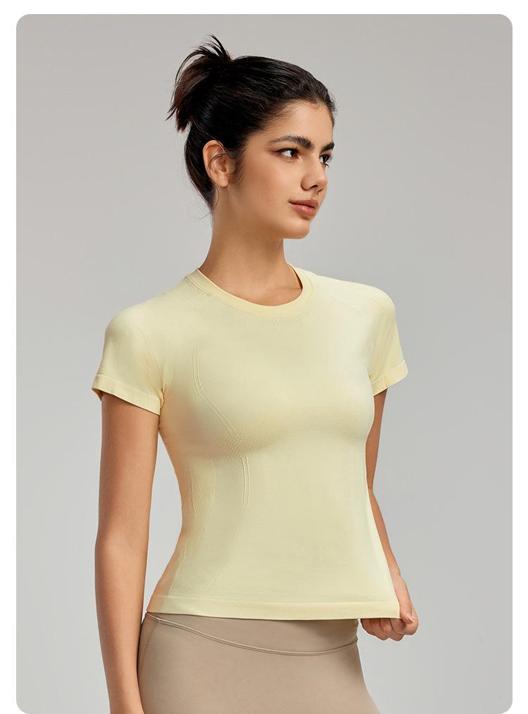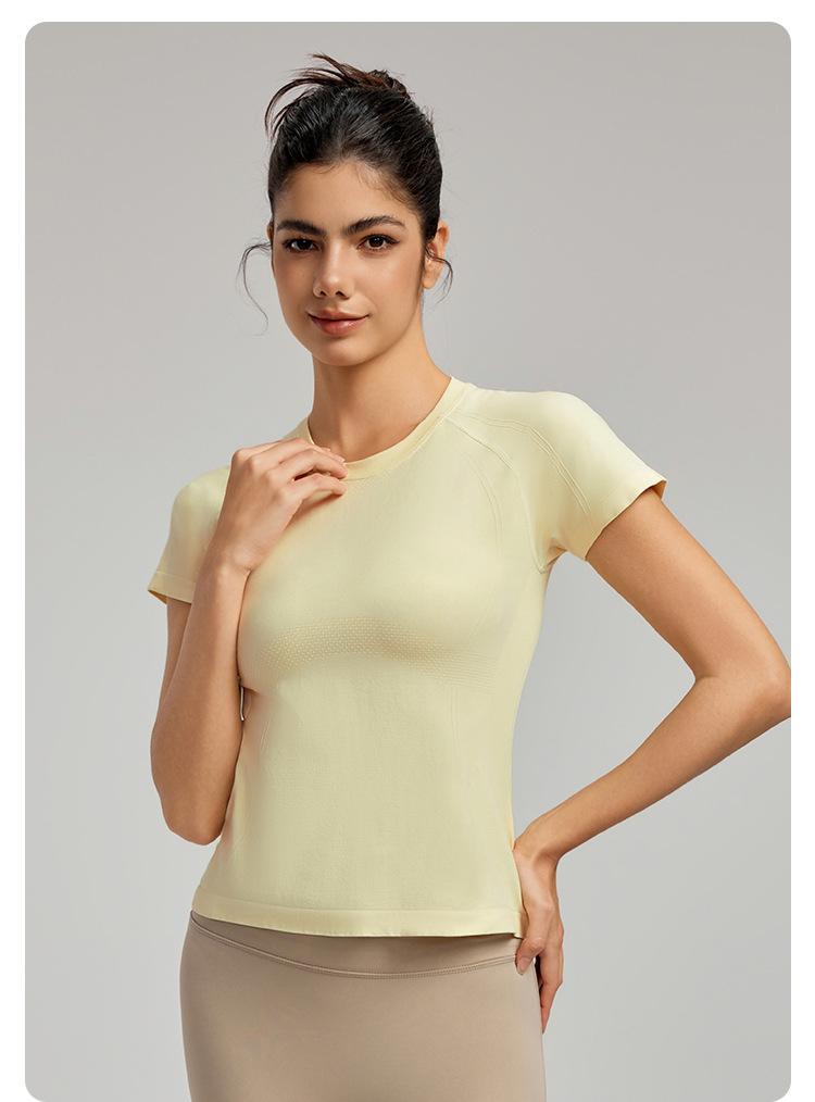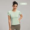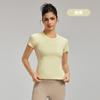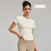 Traje de yoga sin costuras, camiseta de manga corta con cuello redondo que adelgaza la cintura, transpirable y agradable para la piel, top deportivo fresco para mujer.