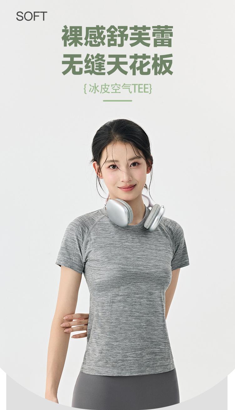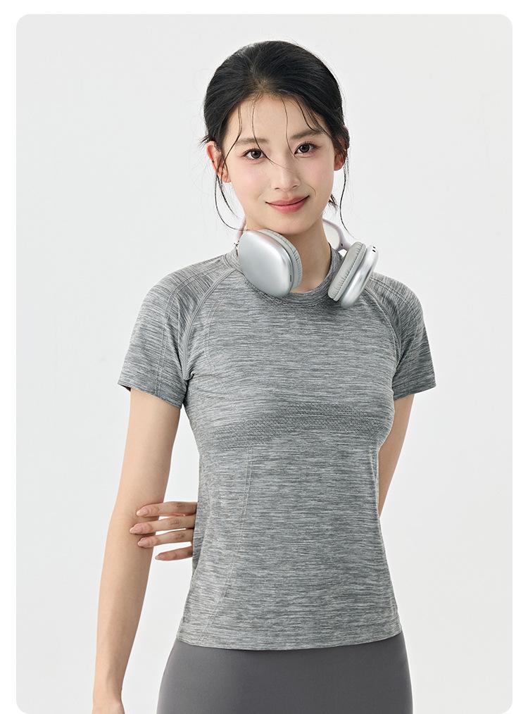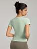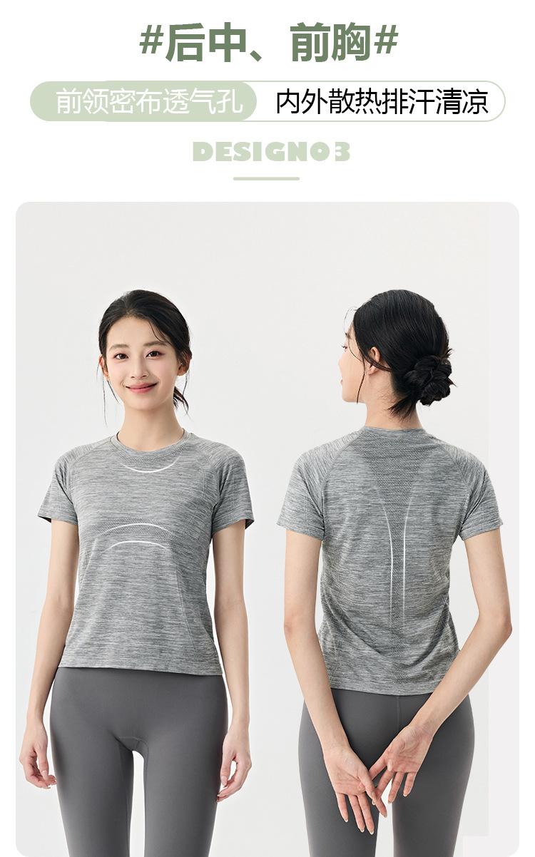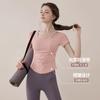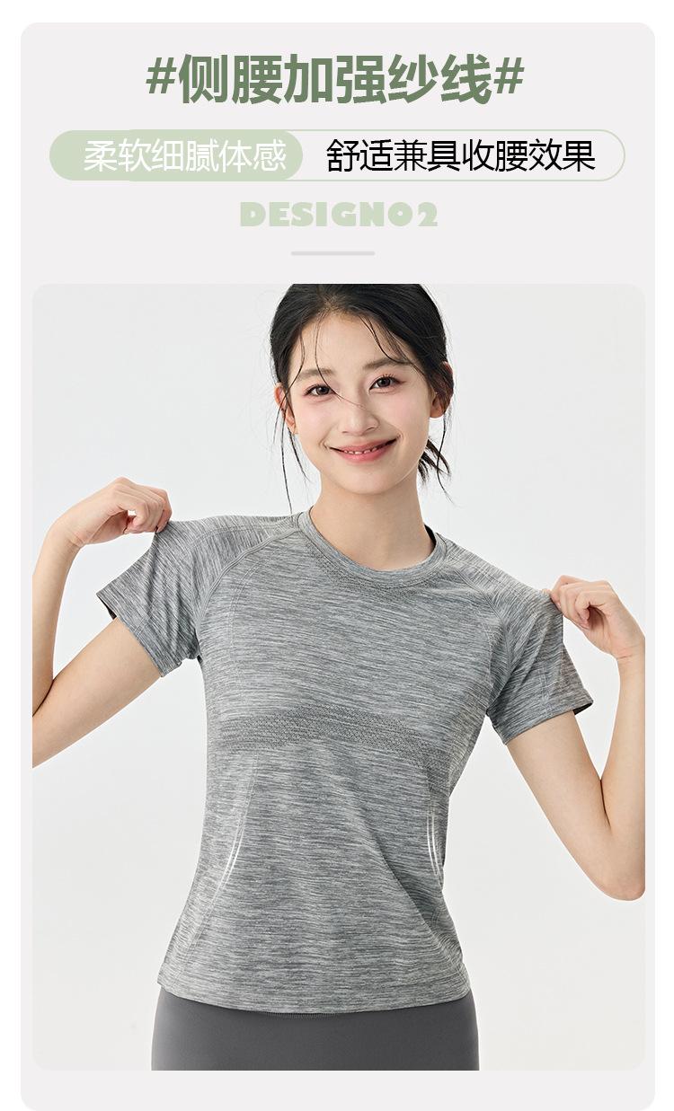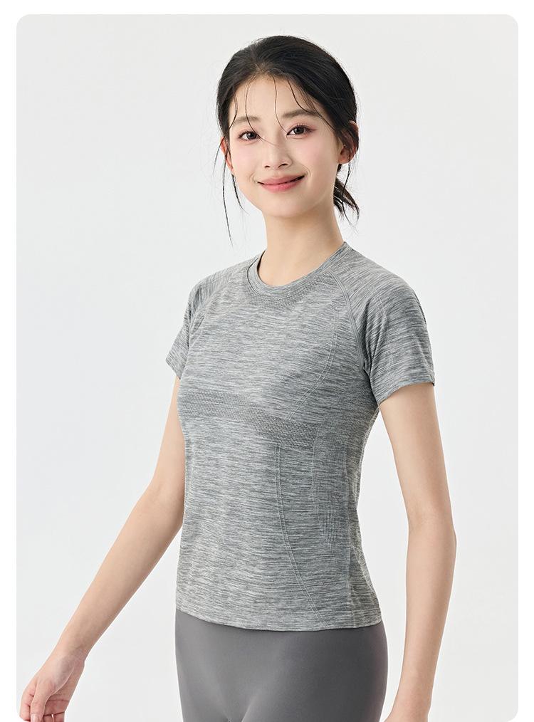 Traje de yoga sin costuras, camiseta de manga corta con cuello redondo que adelgaza la cintura, transpirable y agradable para la piel, top deportivo fresco para mujer.