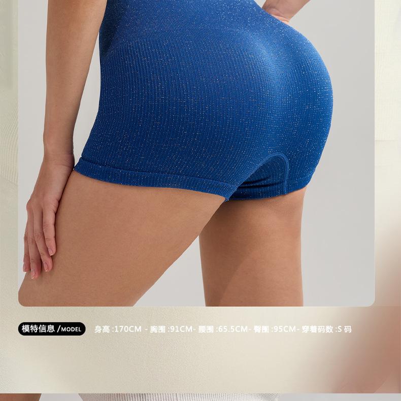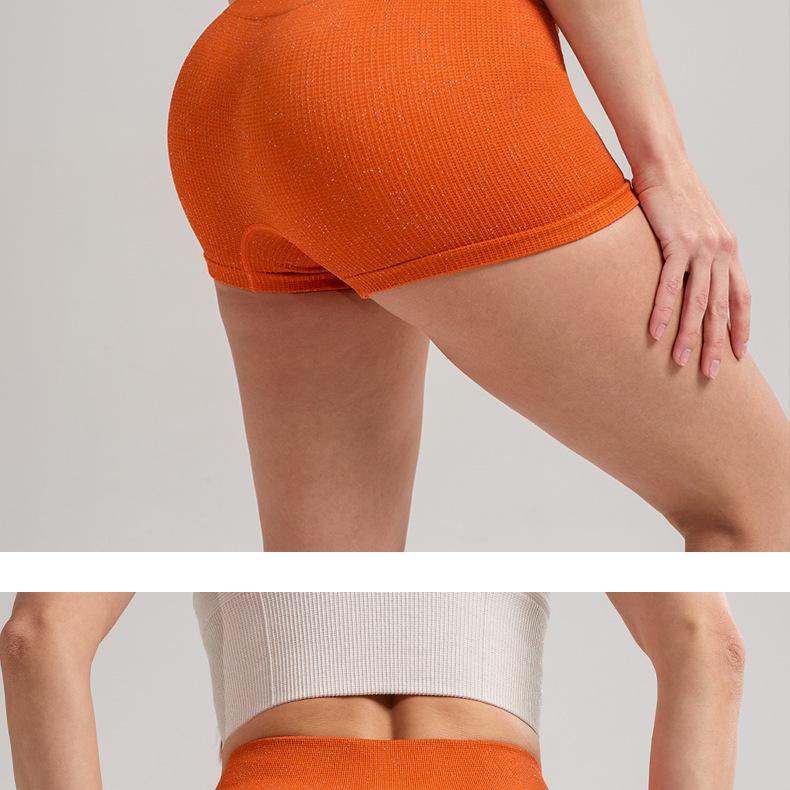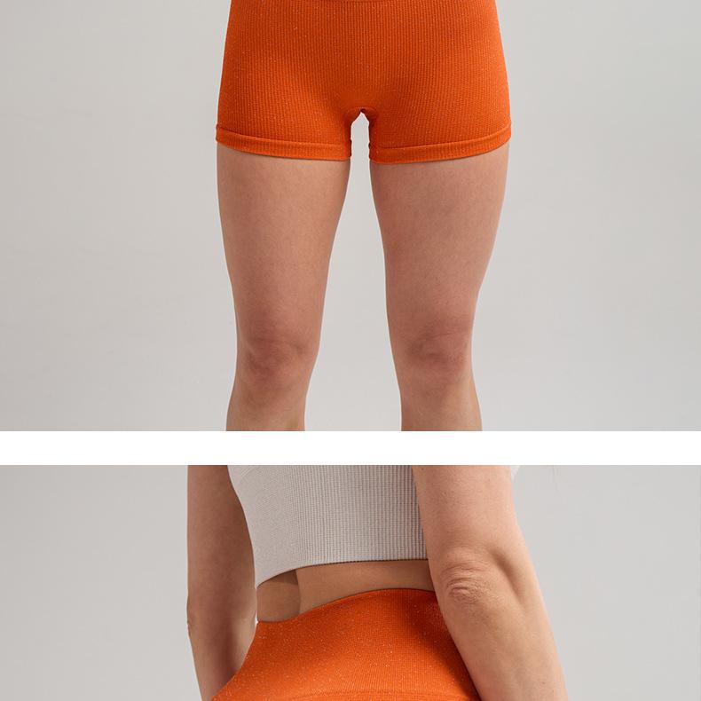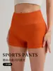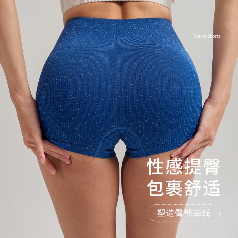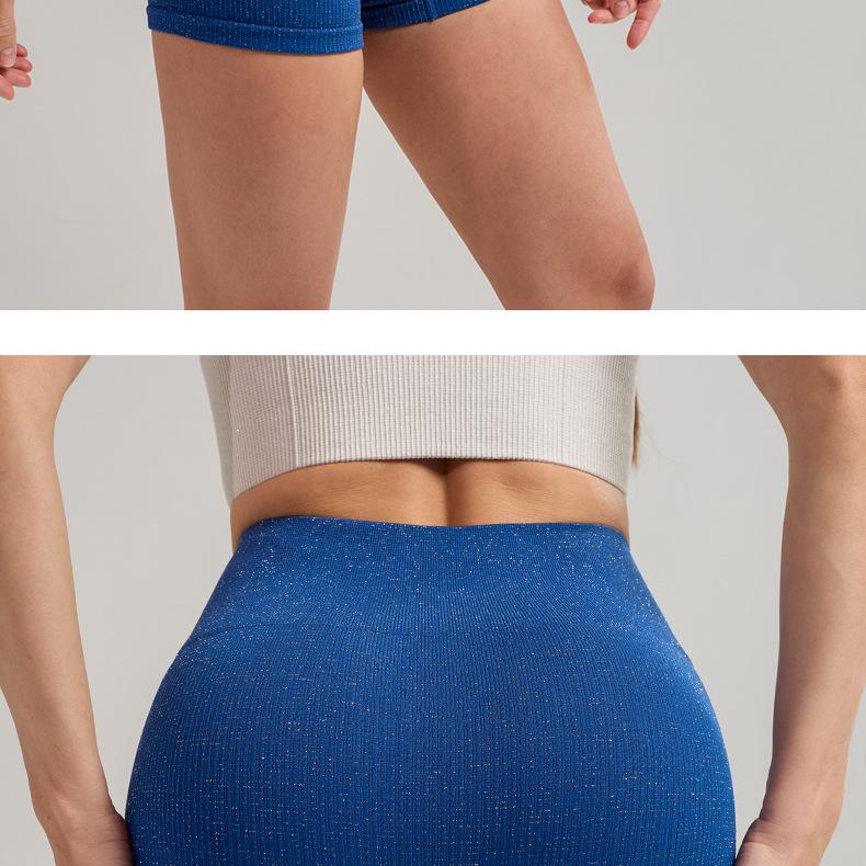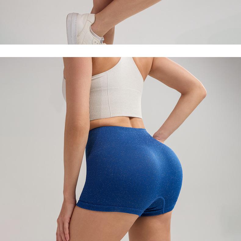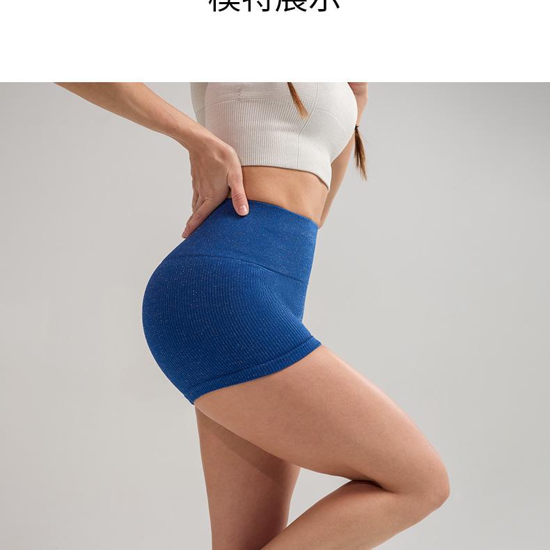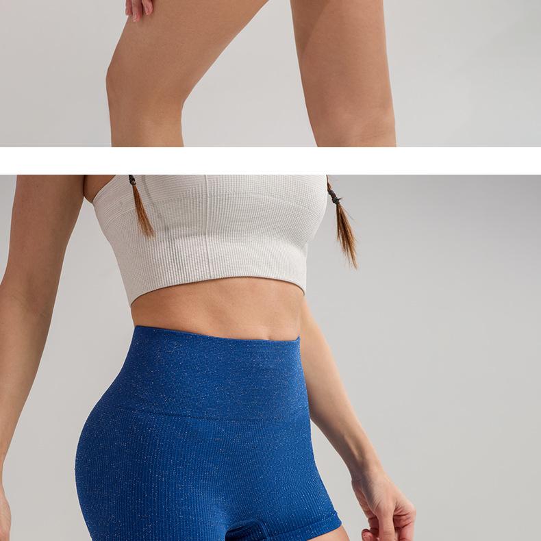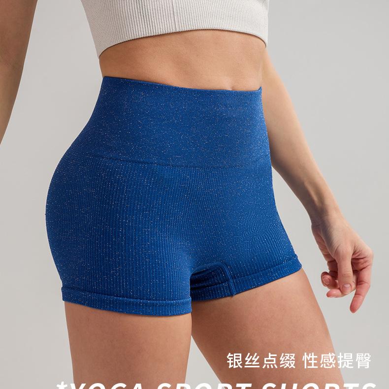 Pantalones cortos deportivos de yoga de cintura alta que levantan la cadera, pantalones cortos deportivos de tres puntos para mujer, pantalones cortos de fitness con cintura ajustada de seda plateada, de secado rápido y transpirables.