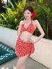 Traje de baño para niña, Halter femenino, Sin espalda, De aspecto alto, Pechos pequeños con almohadillas, Estilo coreano Estilo Lujuria Pura Resort junto al mar Aguas termales