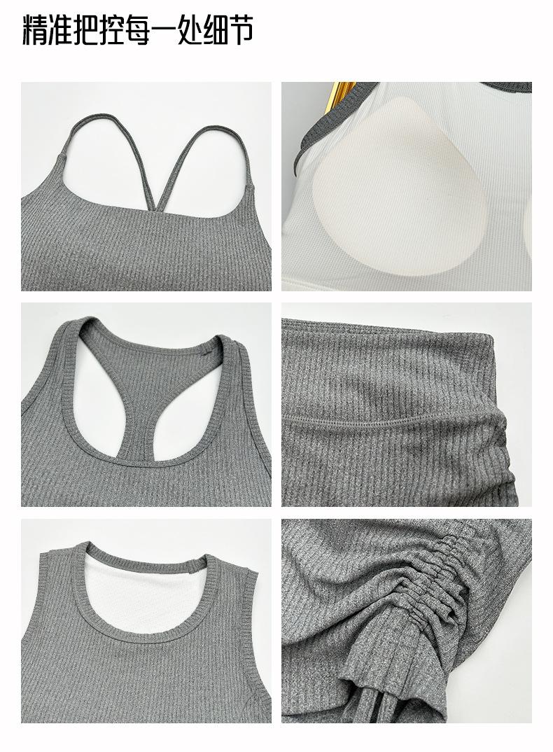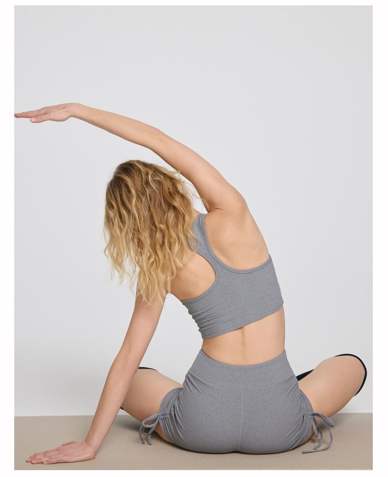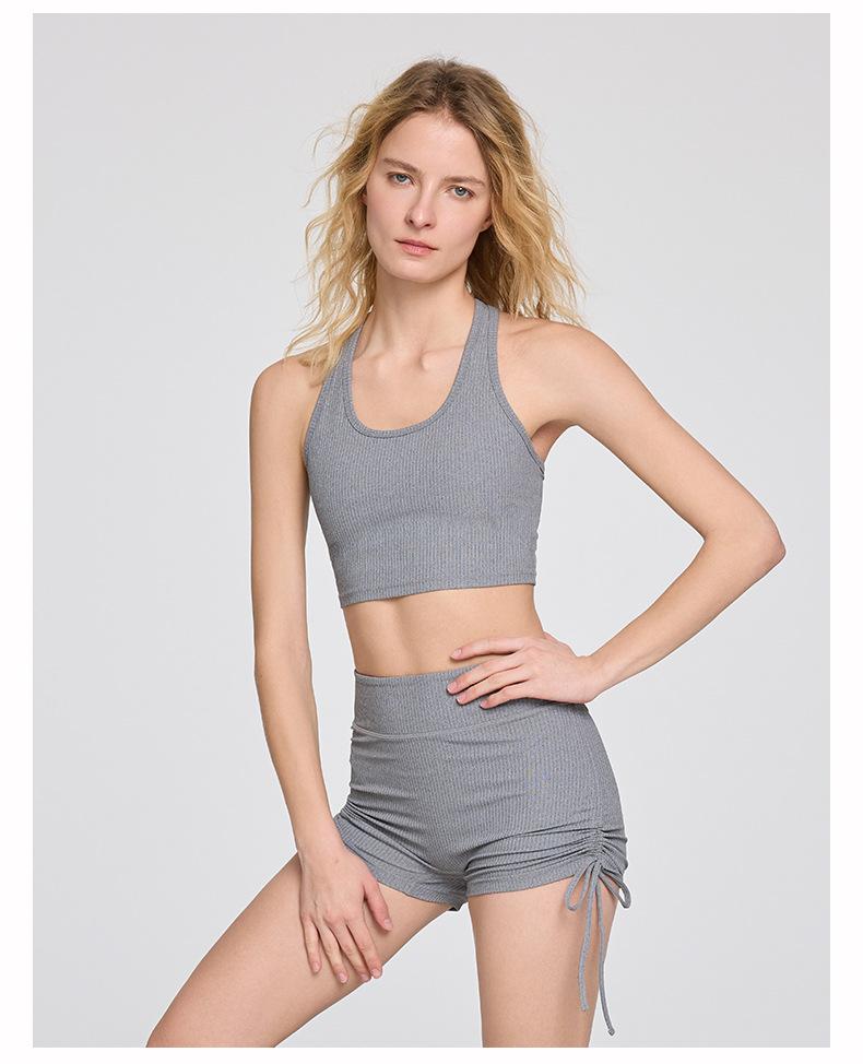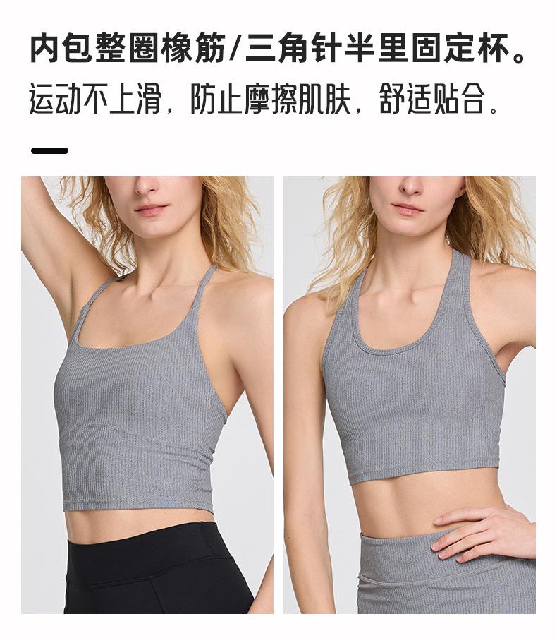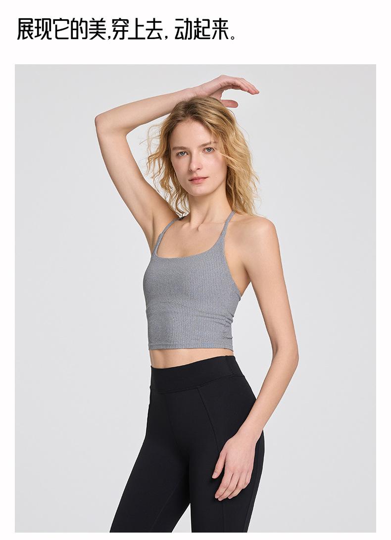 Ropa interior deportiva texturizada gris para mujer, nueva ropa de yoga de primavera y verano de 2025, con tirantes anchos y copa fija, ajustada y ajustada para fitness.