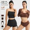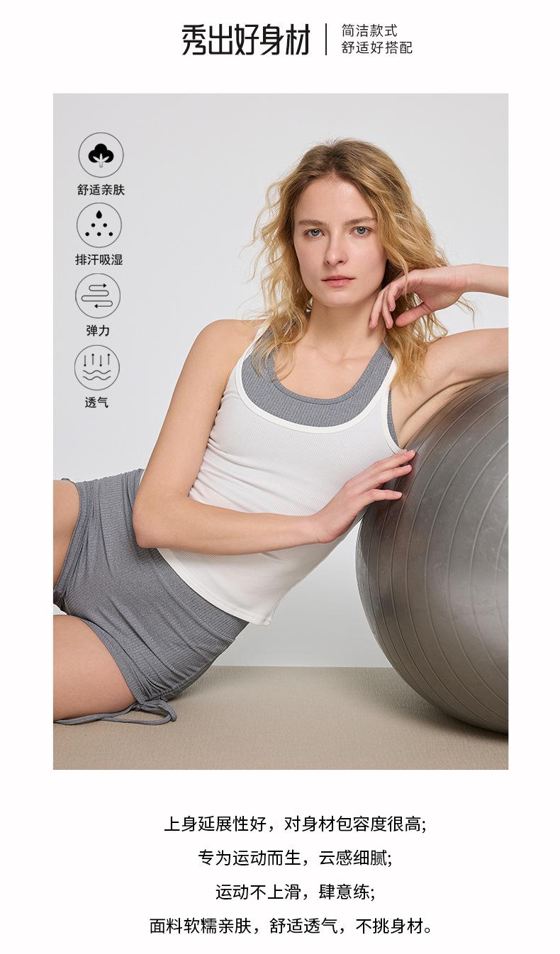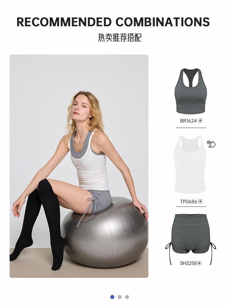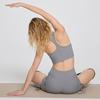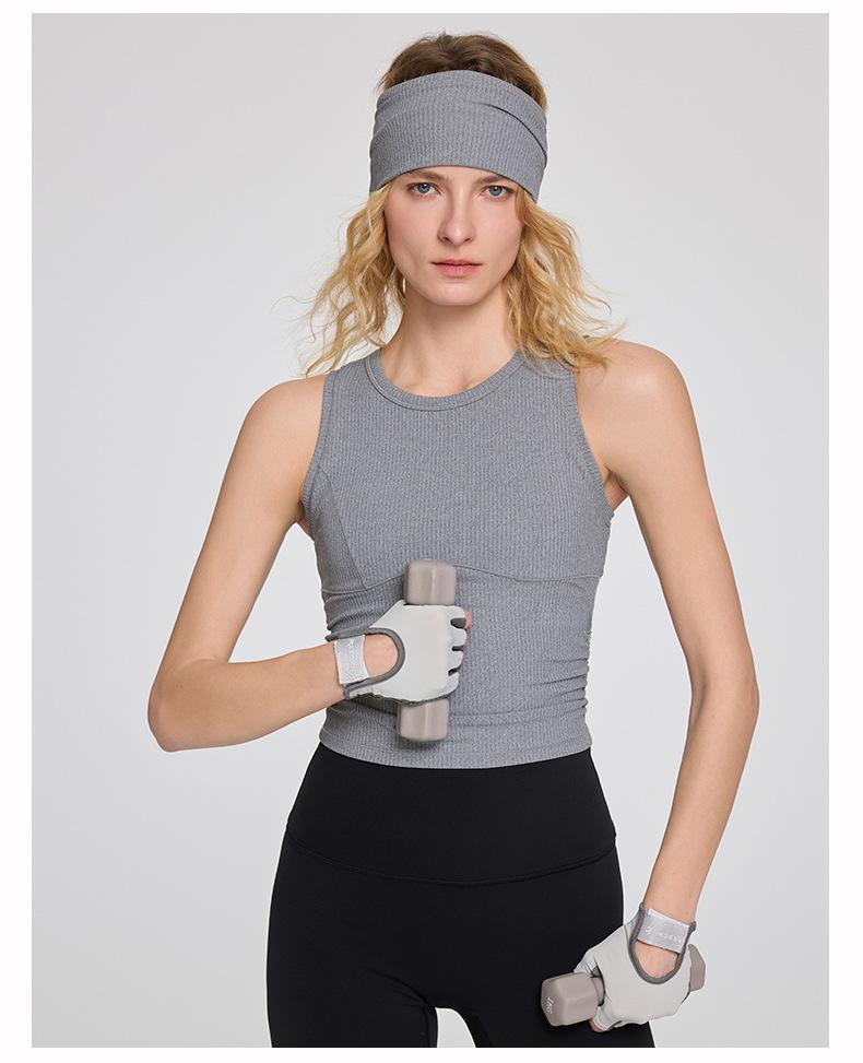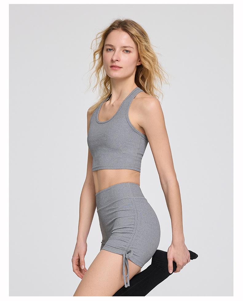 Ropa interior deportiva texturizada gris para mujer, nueva ropa de yoga de primavera y verano de 2025, con tirantes anchos y copa fija, ajustada y ajustada para fitness.