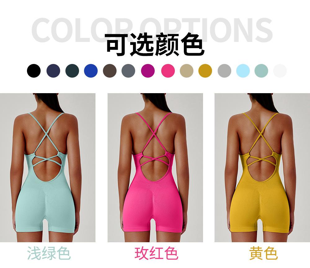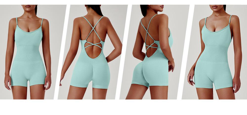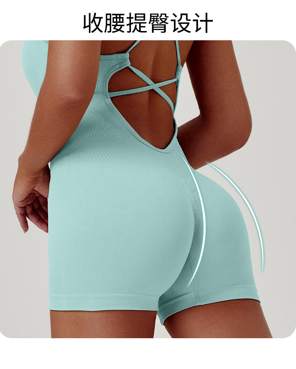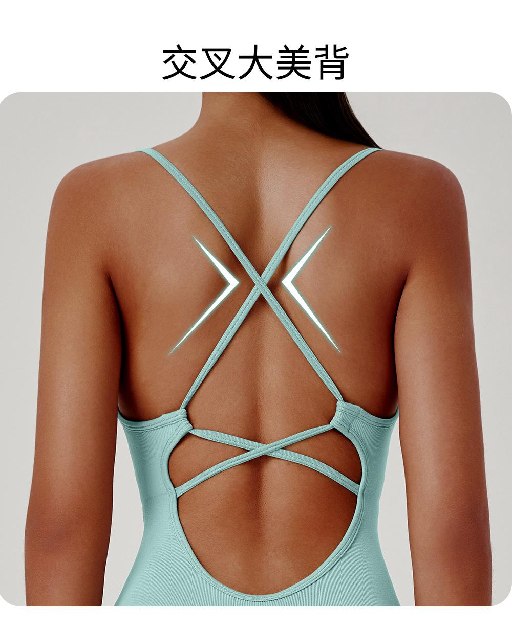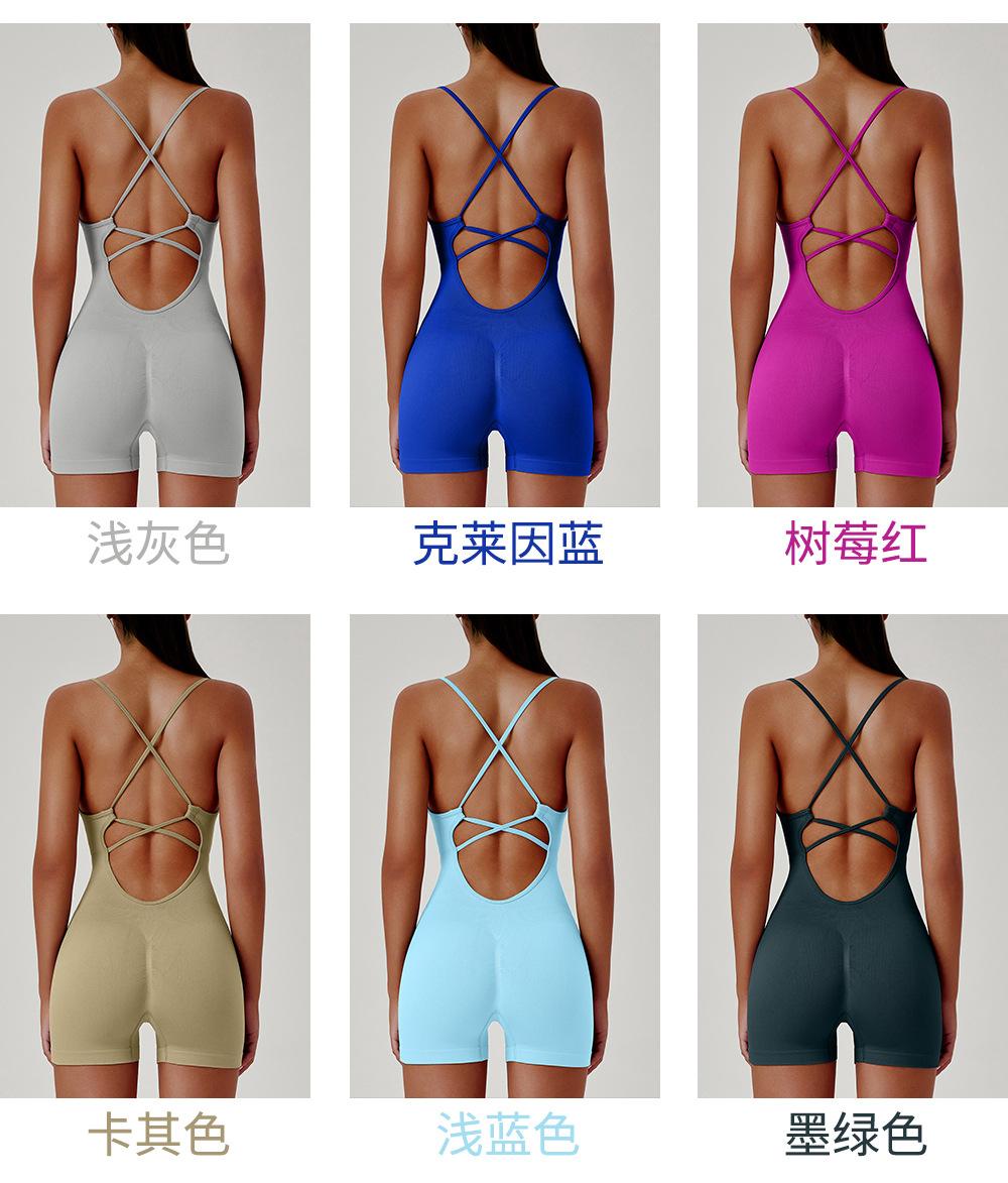 Shorts sin costuras transfronterizos europeos y americanos con tirantes cruzados y almohadillas en el pecho, mono de yoga, mono deportivo sexy de espalda