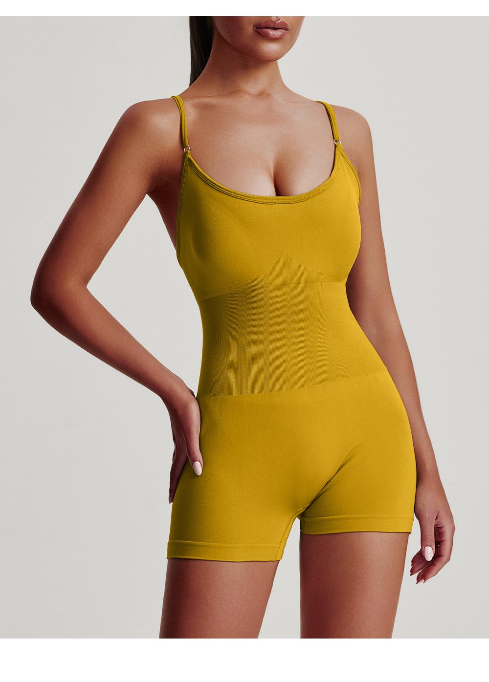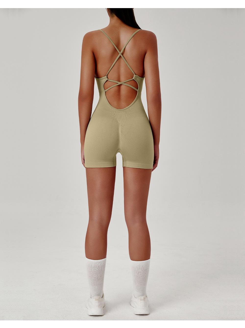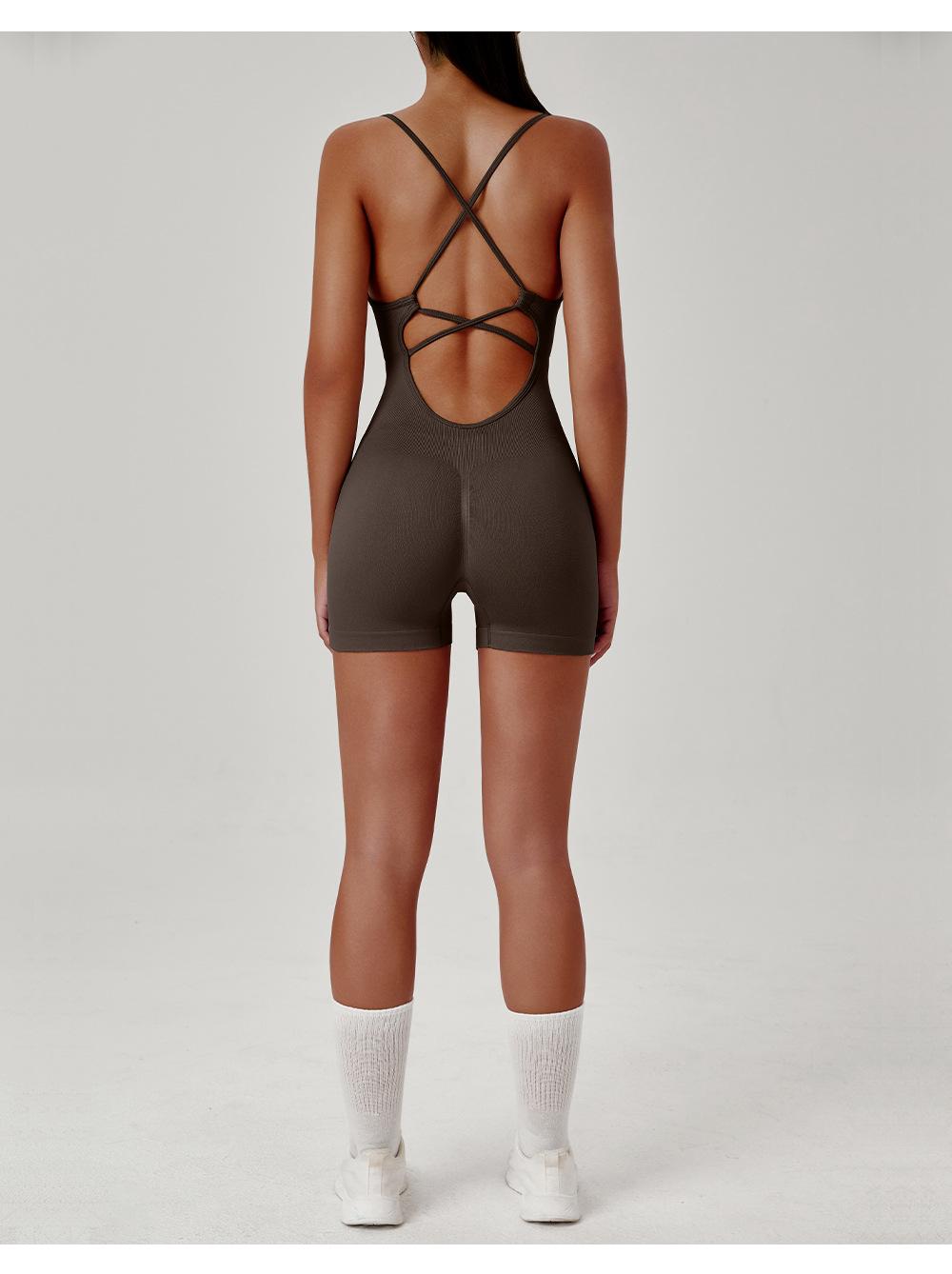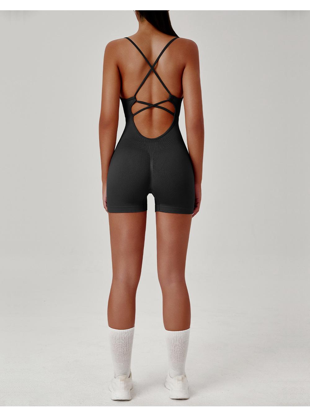 Shorts sin costuras transfronterizos europeos y americanos con tirantes cruzados y almohadillas en el pecho, mono de yoga, mono deportivo sexy de espalda