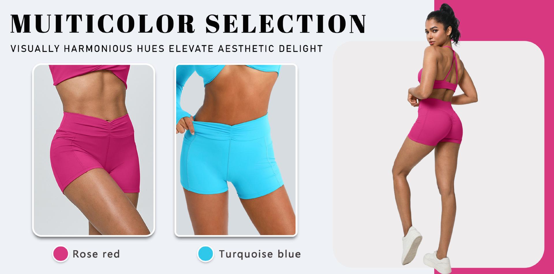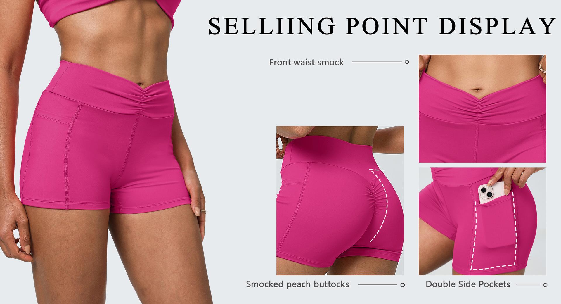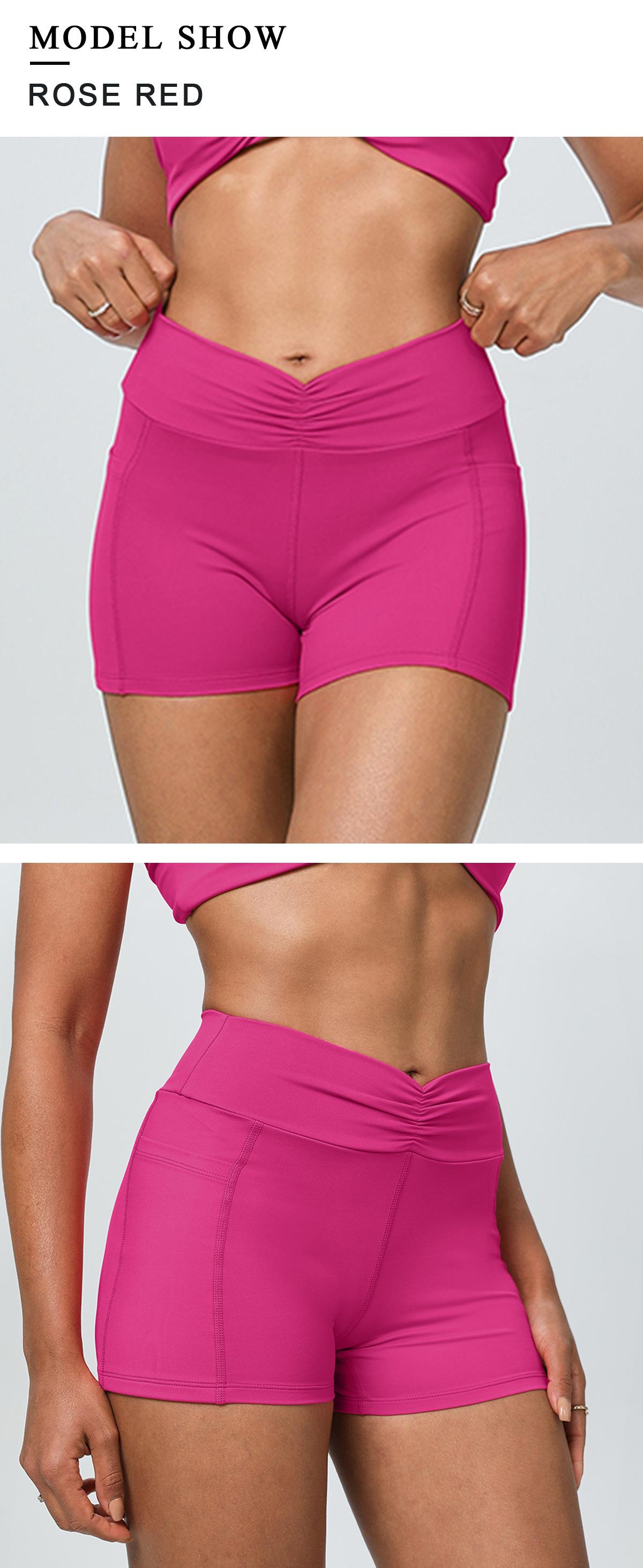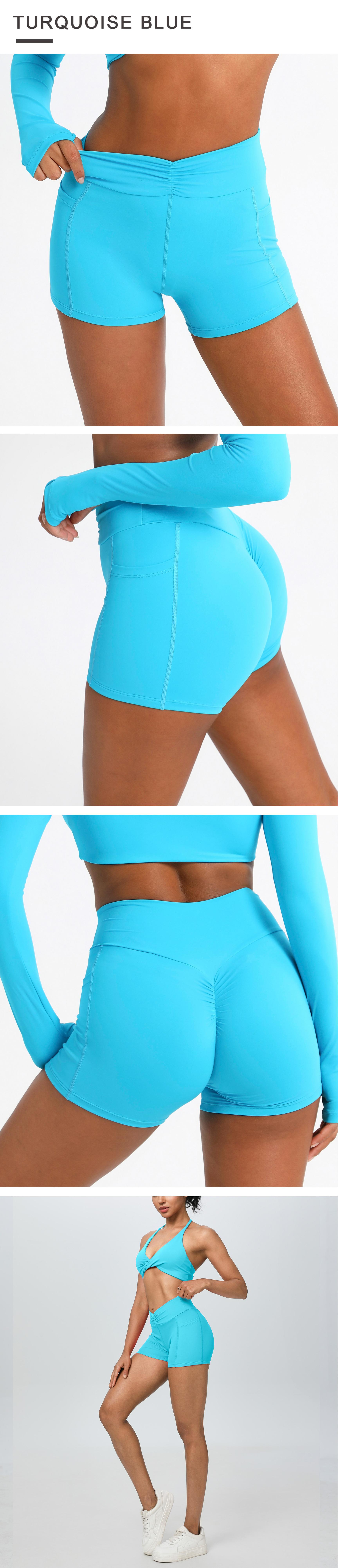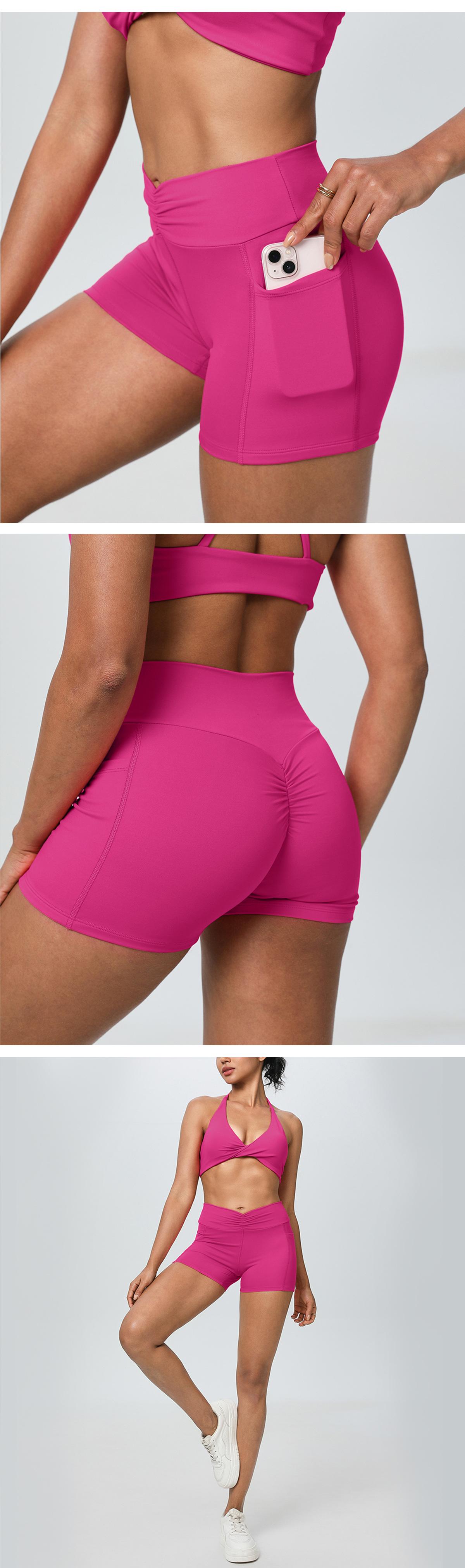 Pantalones cortos de yoga ajustados con bolsillos, estilo europeo y americano, para correr, hacer ejercicio, levantar la cadera y hacer ejercicio, de tres puntos.