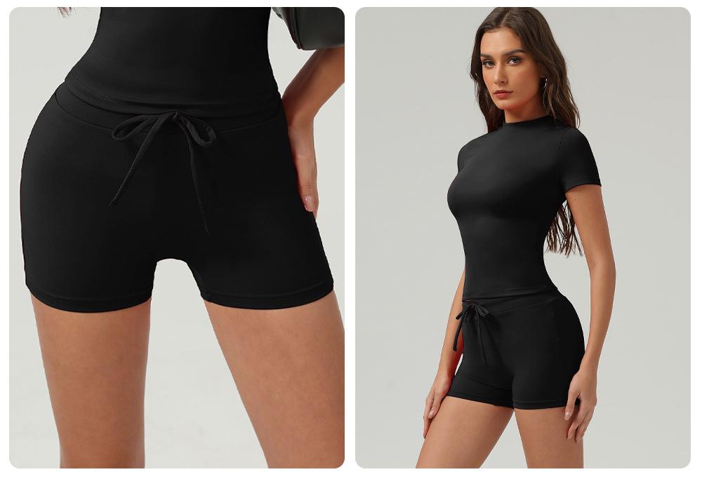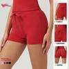 Pantalones cortos de yoga ajustados de cintura alta para mujer, de estilo europeo y americano, con realce de cadera, de secado rápido y ajustados para correr.
