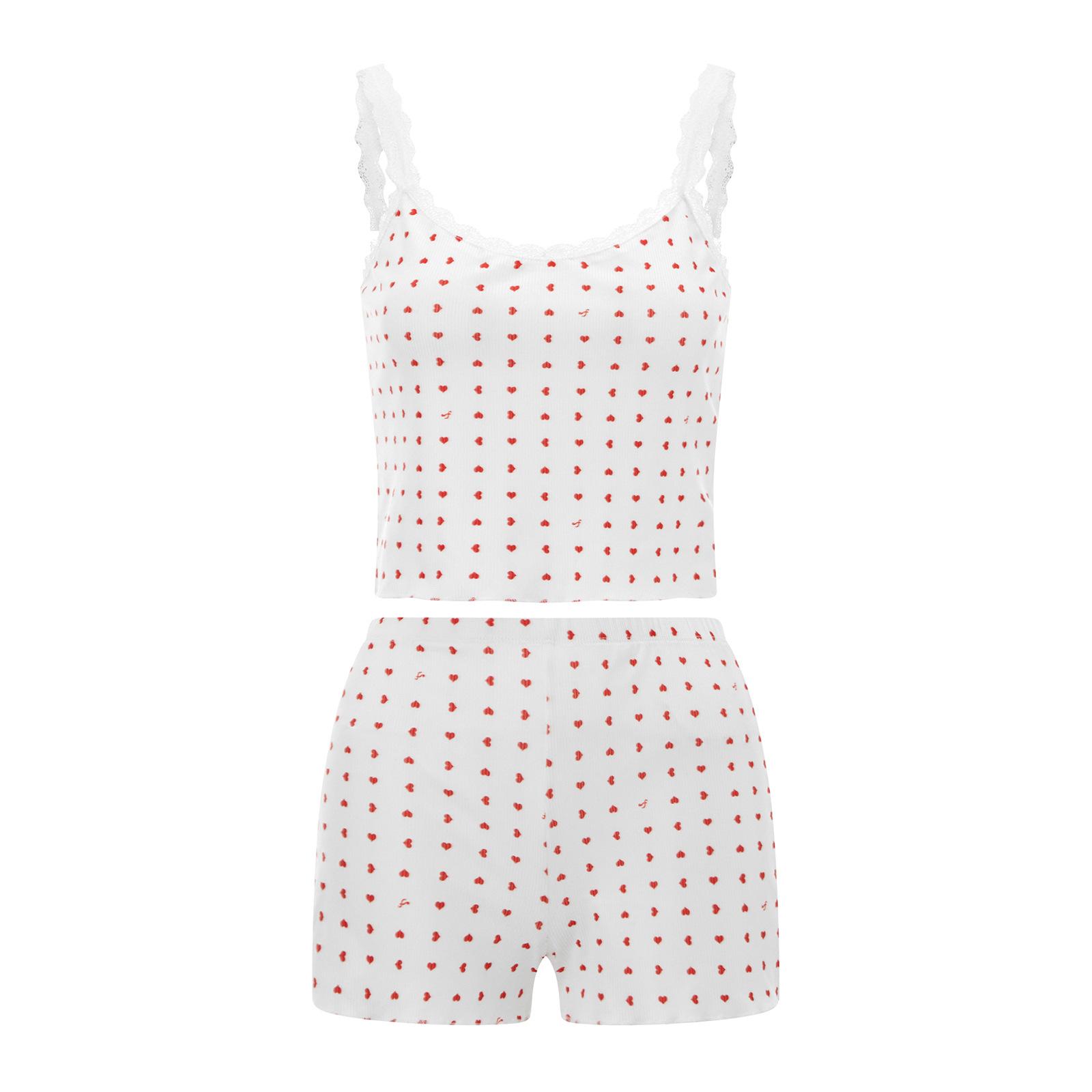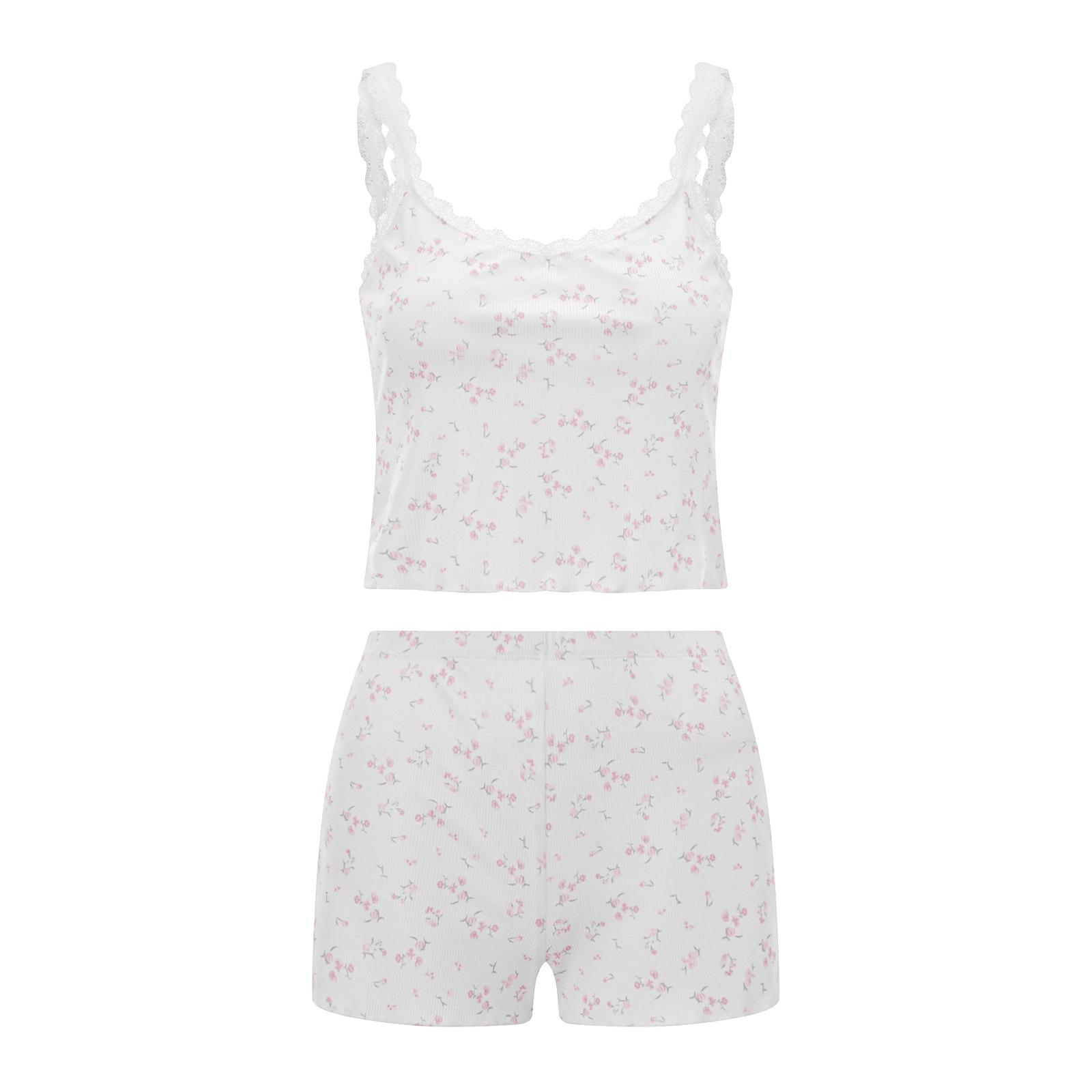 Traje Sexy de Tirantes Pequeños de Encaje y Shorts para Primavera Verano 2025, Estampado, Moda Urbana Picante