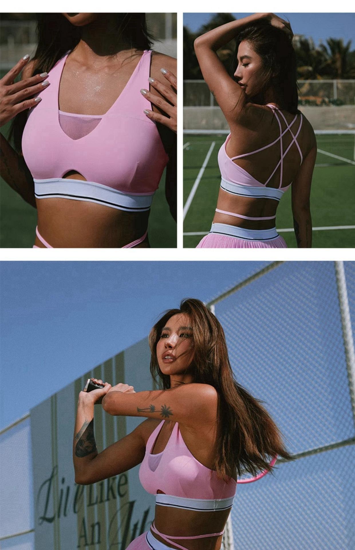 Falda plisada de color contrastante para mujer Traje de tenis Transpirable de secado rápido Traje de Pilates Yoga Entrenamiento Deportes Fitness Conjunto de dos piezas