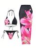 2025 Nuevo Traje de Baño Bikini Estampado Europeo y Americano Transfronterizo Vestido Envolvente Ajustado Traje de Baño de Tres Piezas Traje de Playa para Mujer