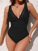 Compra Traje de baño de una pieza con escote en V profundo para mujer, color sólido, sexy sin espalda, para busto grande, traje de baño transfronterizo de Amazon, delgado, casual al por mayor en Joom.pro