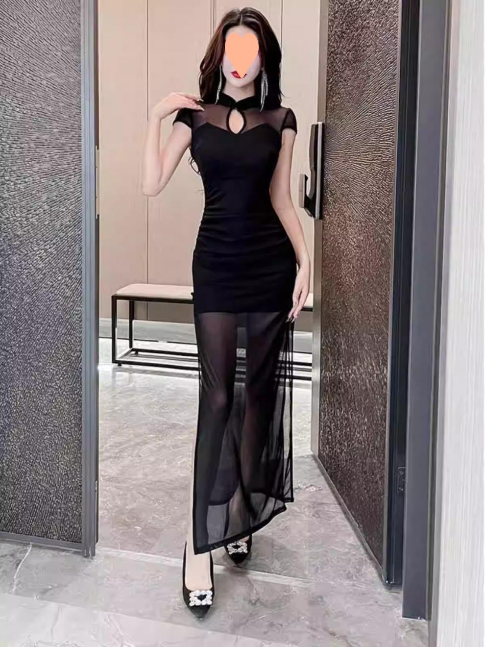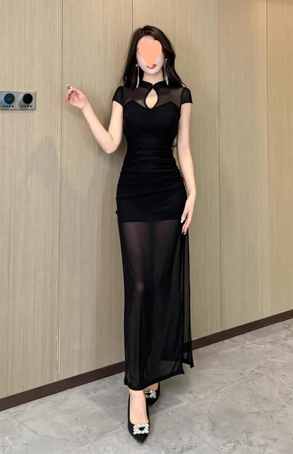 Nuevo Vestido de Belleza Ktv Cheongsam Retro Mejorado Falda Ropa de Trabajo de Club Nocturno Falda Larga Ropa de Trabajo de Técnico de Pedicura