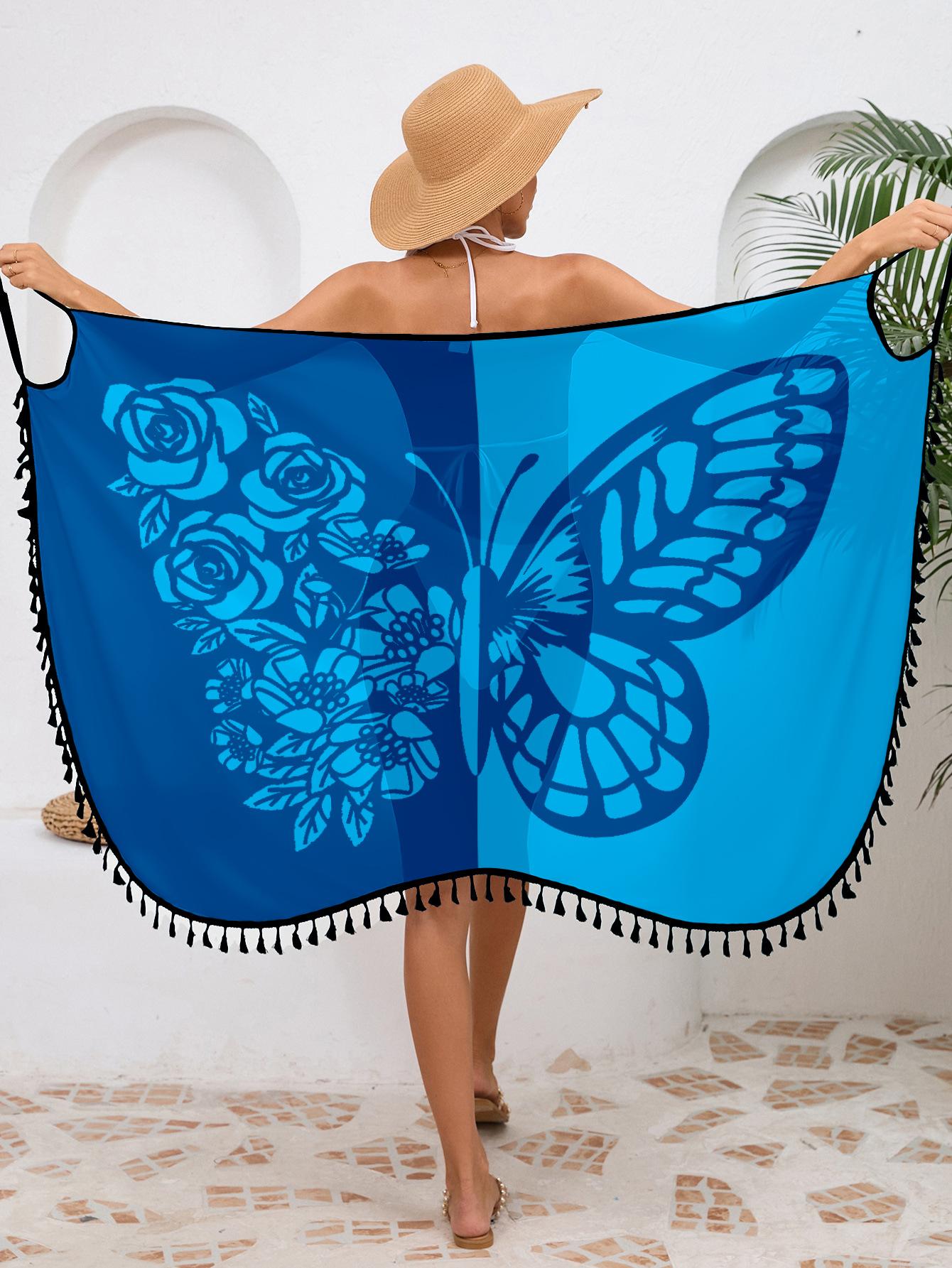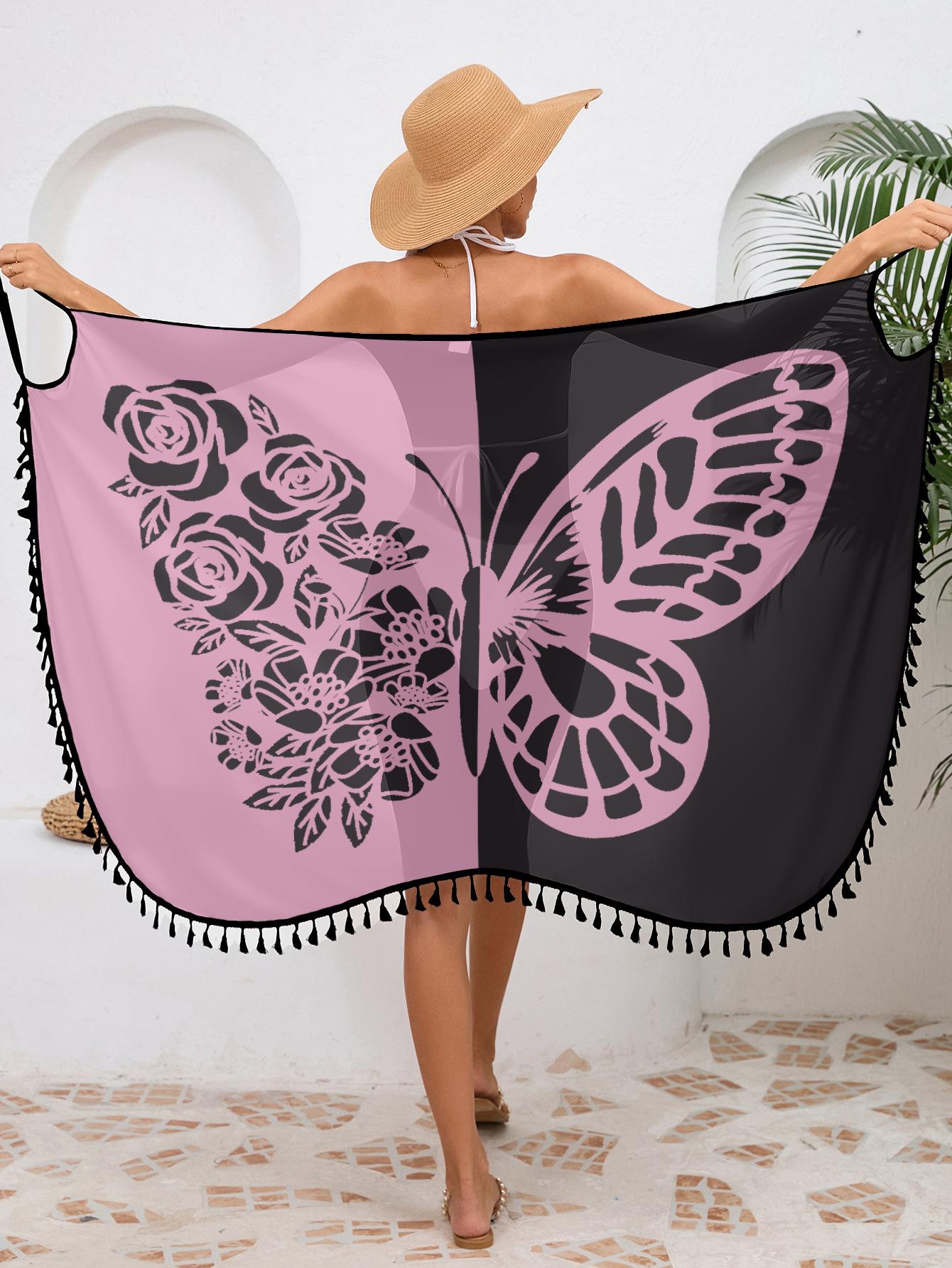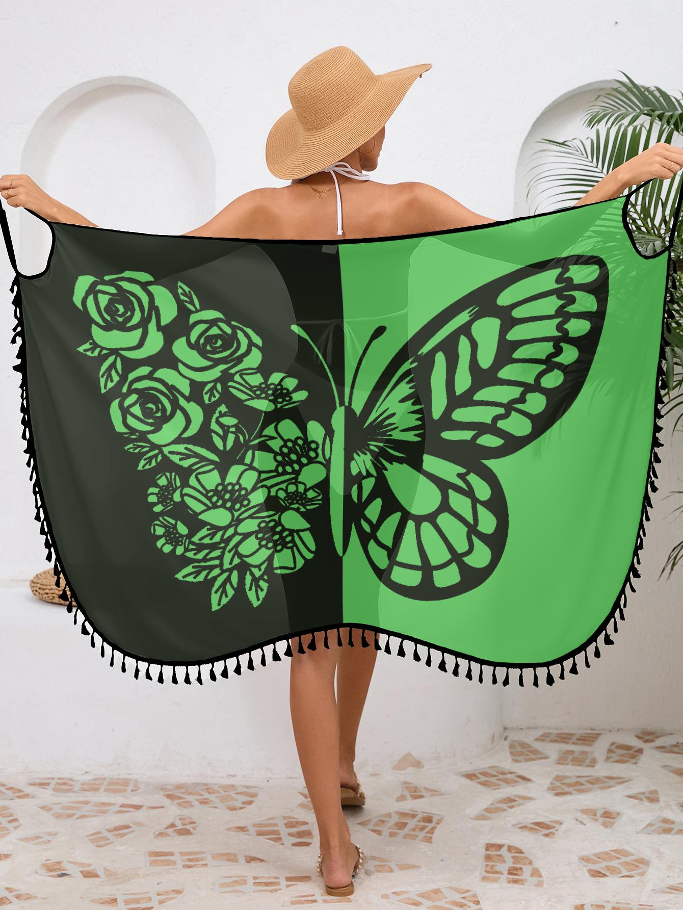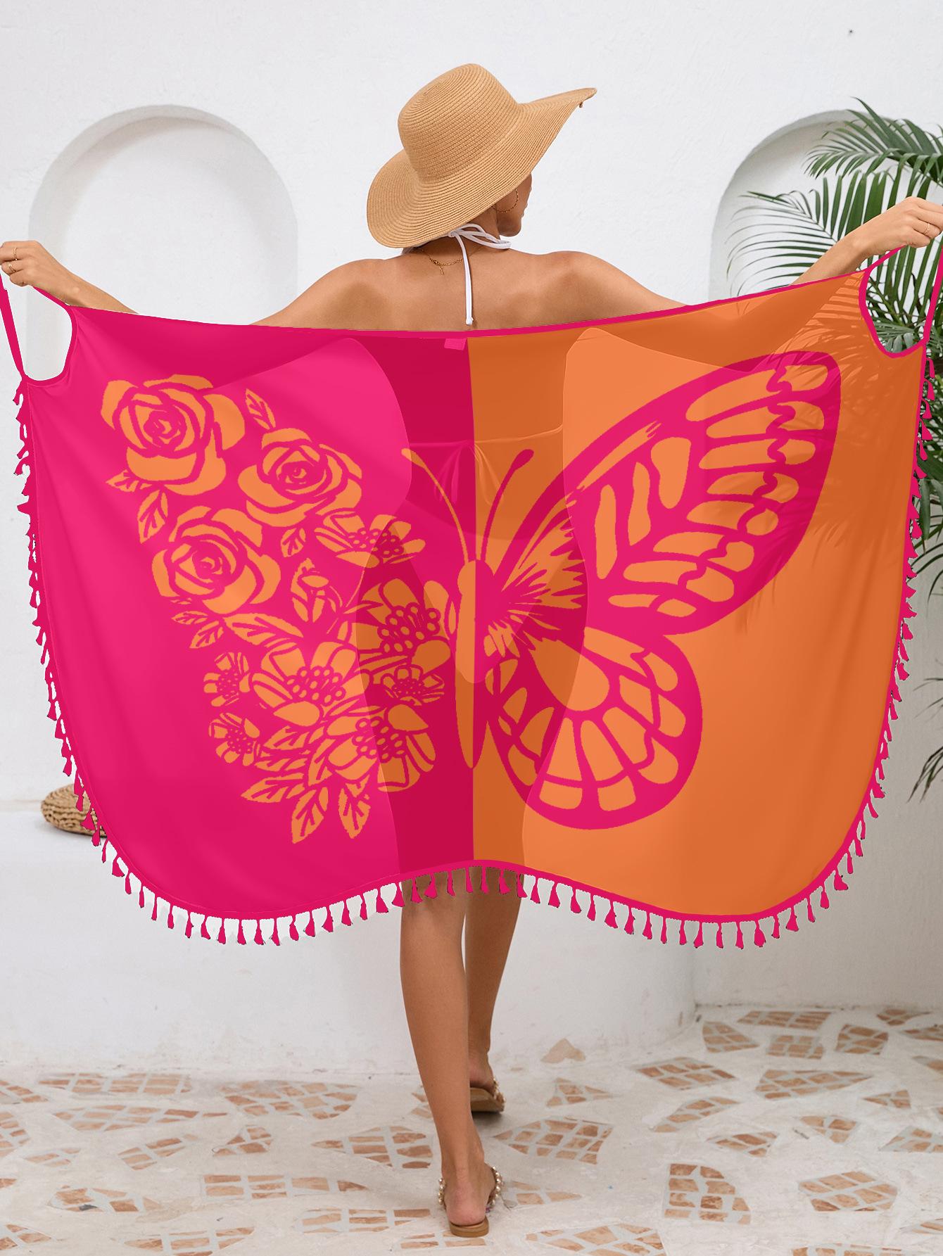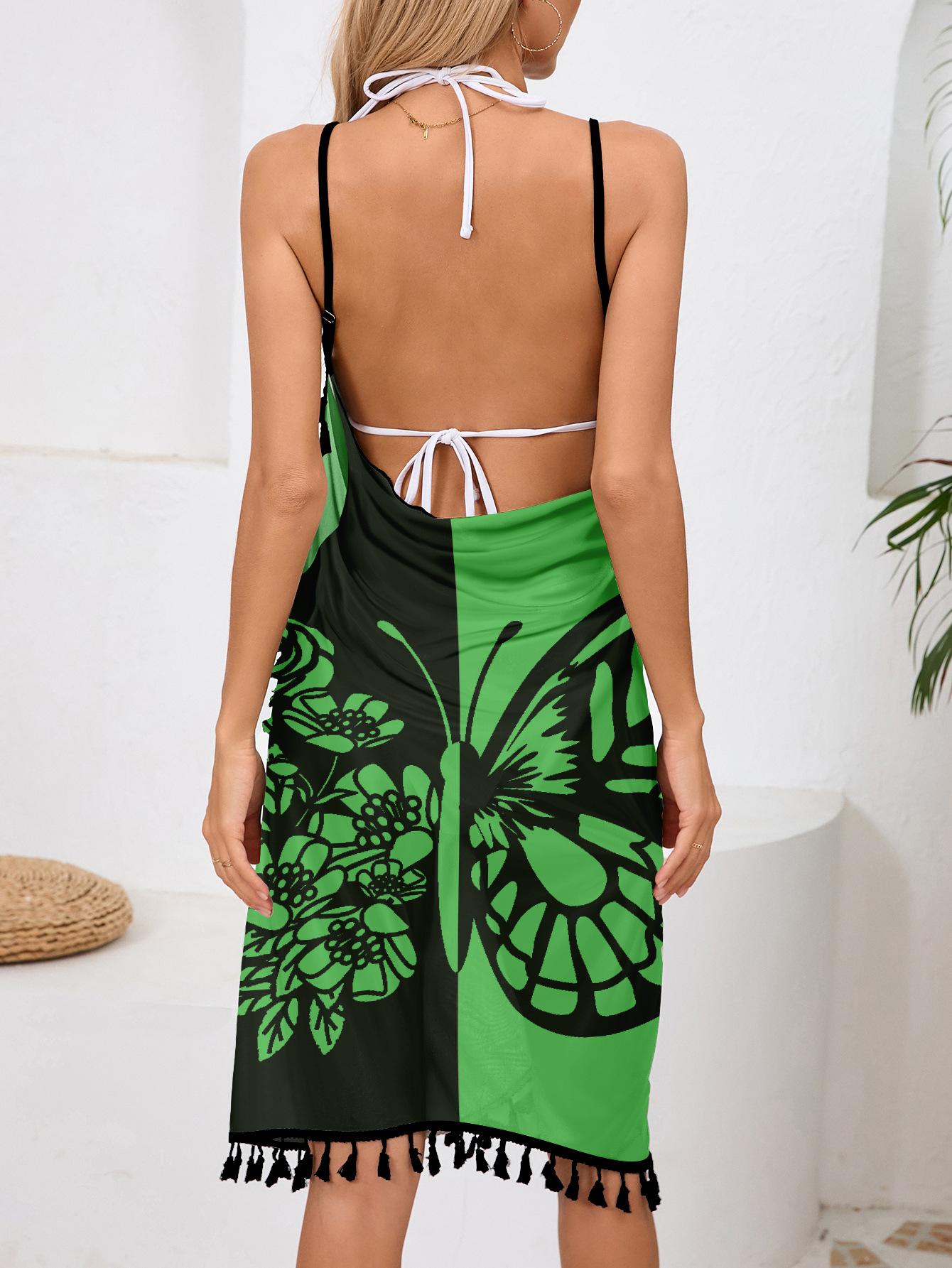 Moda Europea y Americana Transfronteriza Mariposa Flor Vestido de Playa Empalme de Borlas Irregular Una Pieza Sexy Vestido de Tirantes