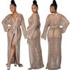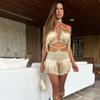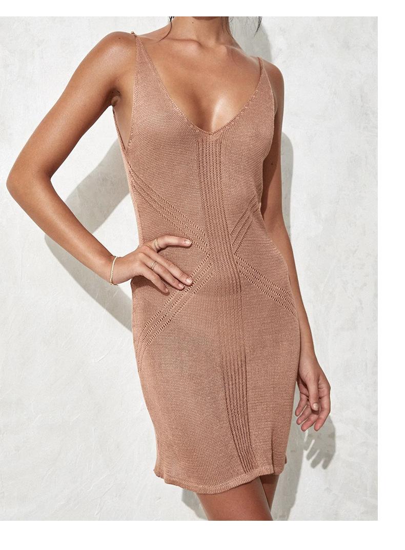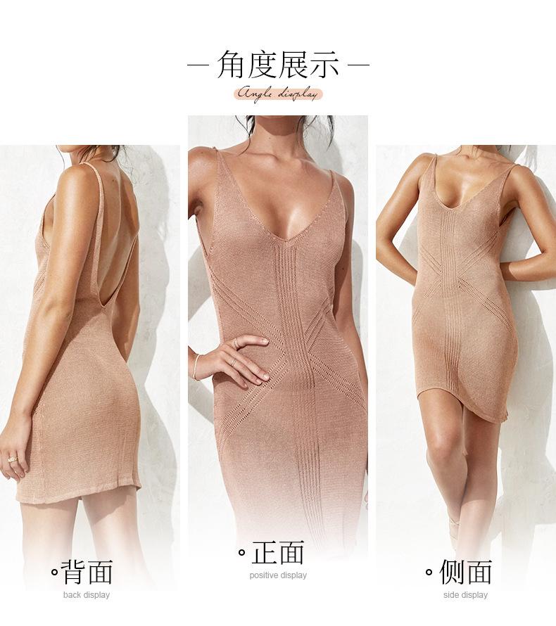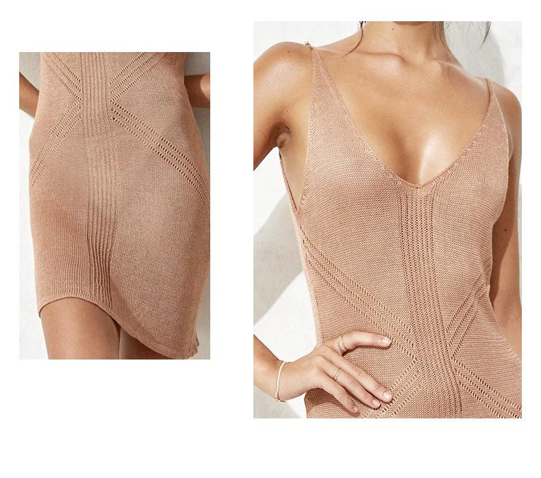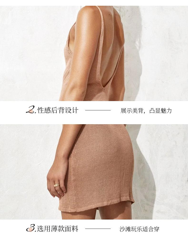 Vestido de playa europeo y americano nuevo, bikini de punto con tirantes, vestido largo de vacaciones, bikini sin espalda, vestido corto sexy de verano para mujer