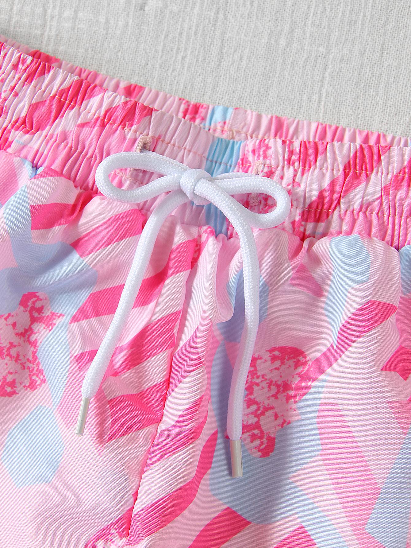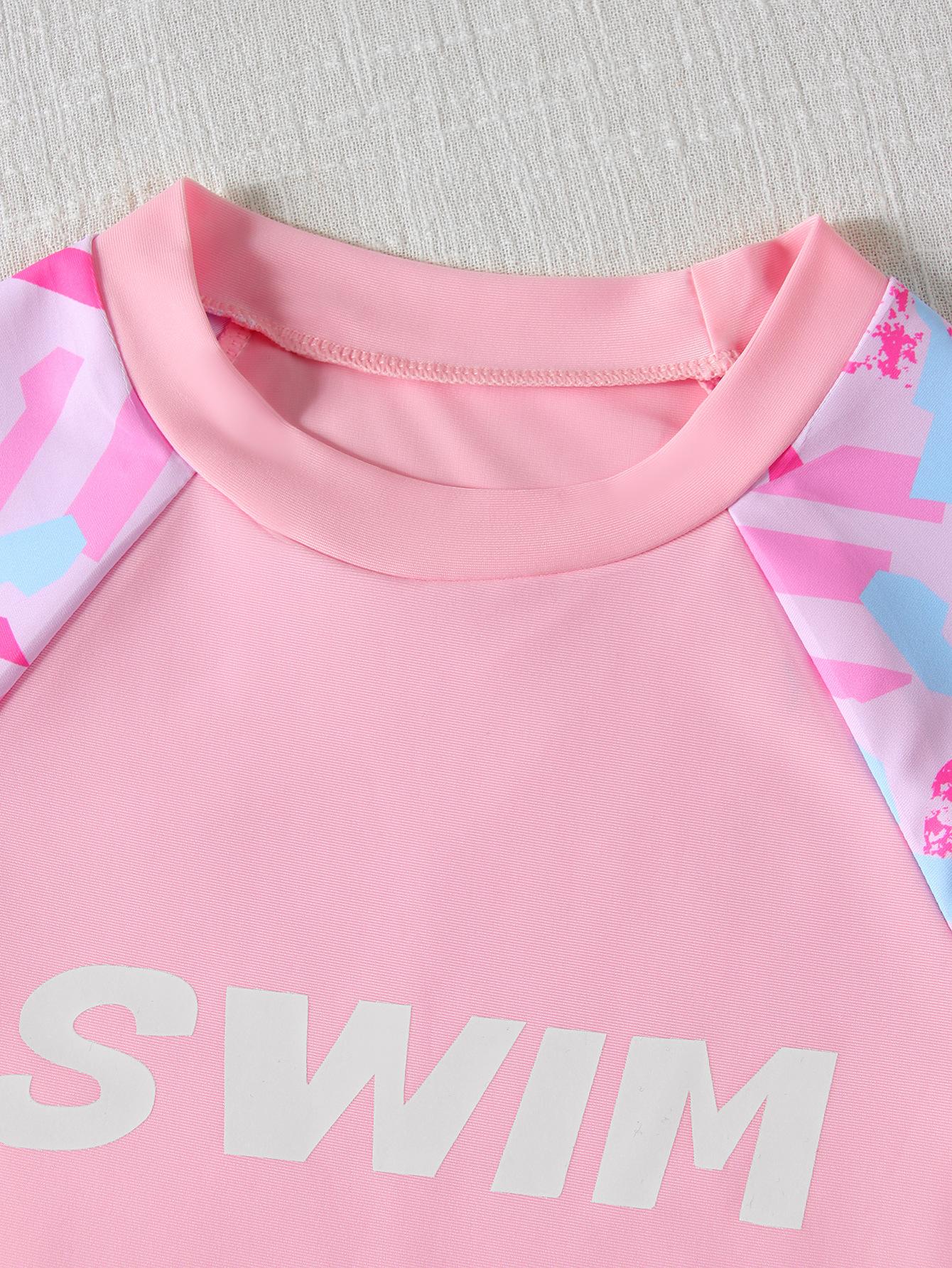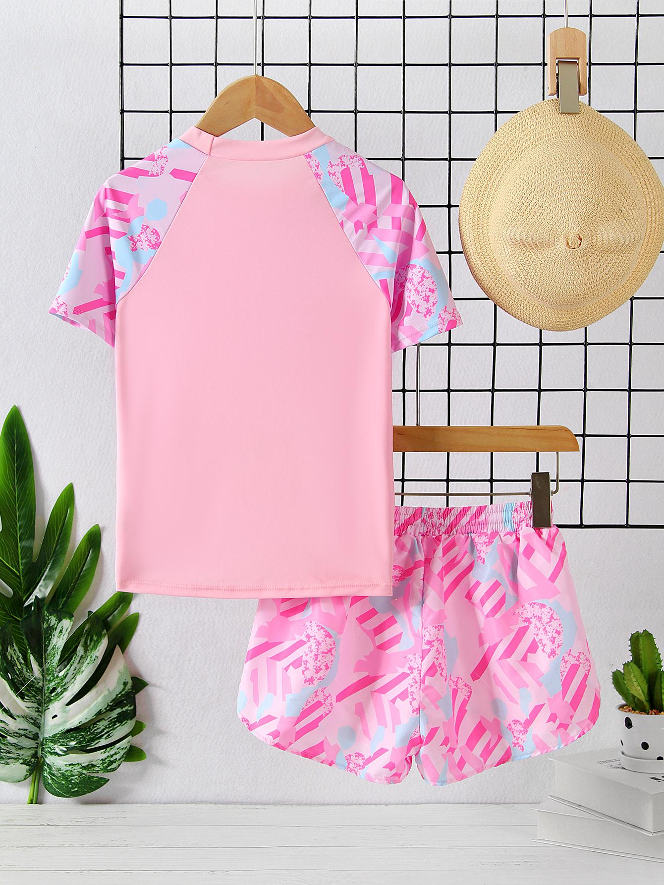 Traje de Baño para Niñas Traje de Baño Dividido 2025 Nuevo Rosa Manga Corta Shorts Letra Deportivo Traje de Baño para Niña