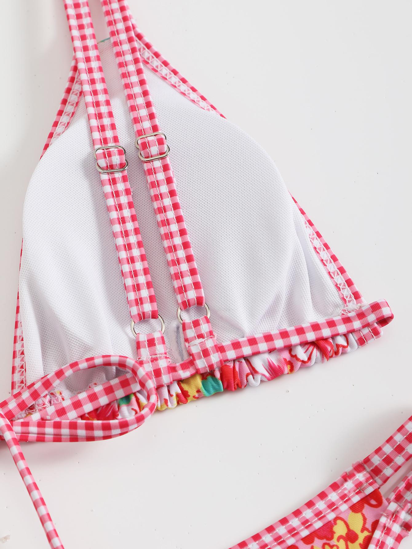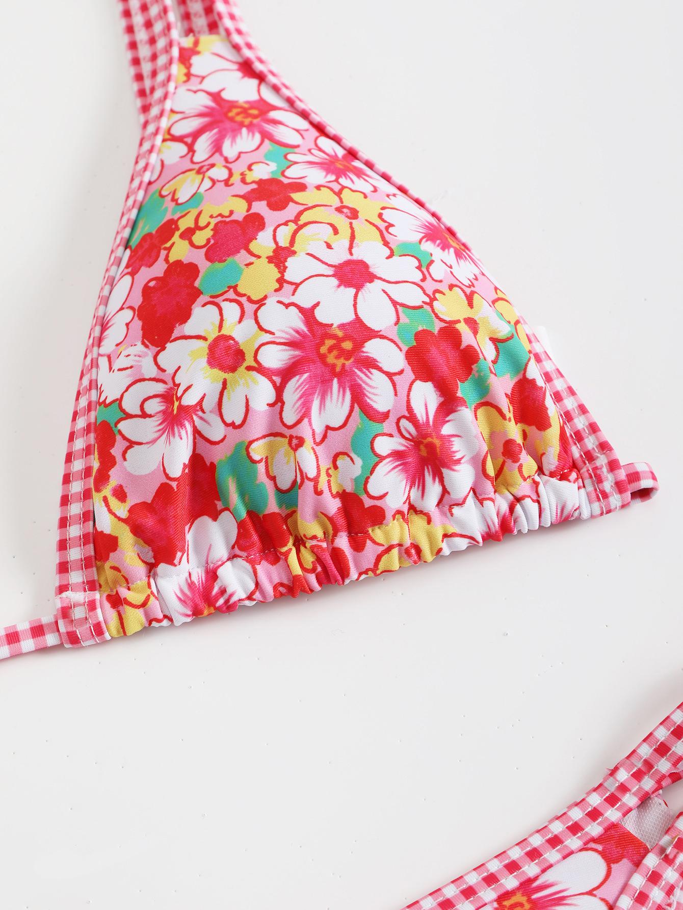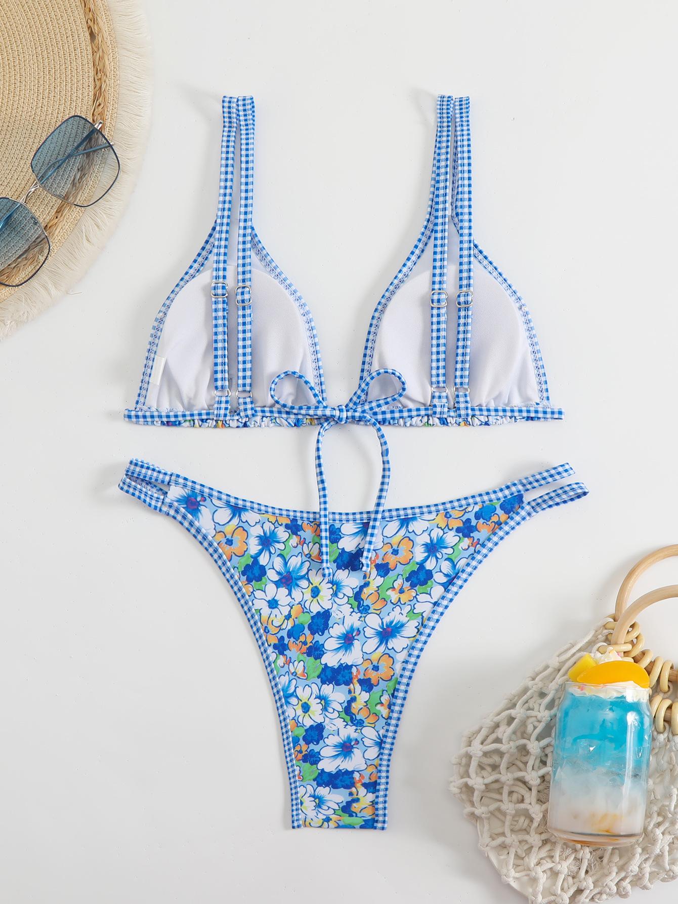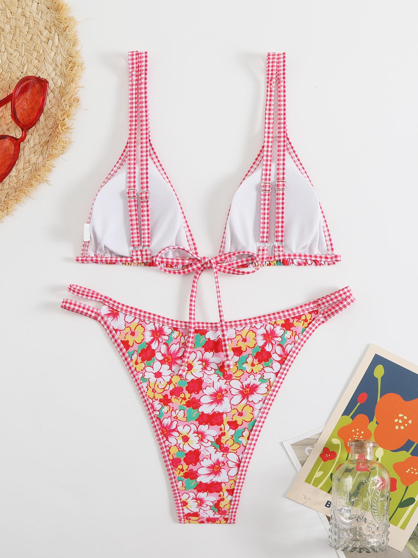 Bikini 2025 Europeo y Americano de Nueva Llegada Encaje Floral con Cordones Sexy Traje de Baño Dividido para Mujer Ropa de Playa Bikini Transfronterizo