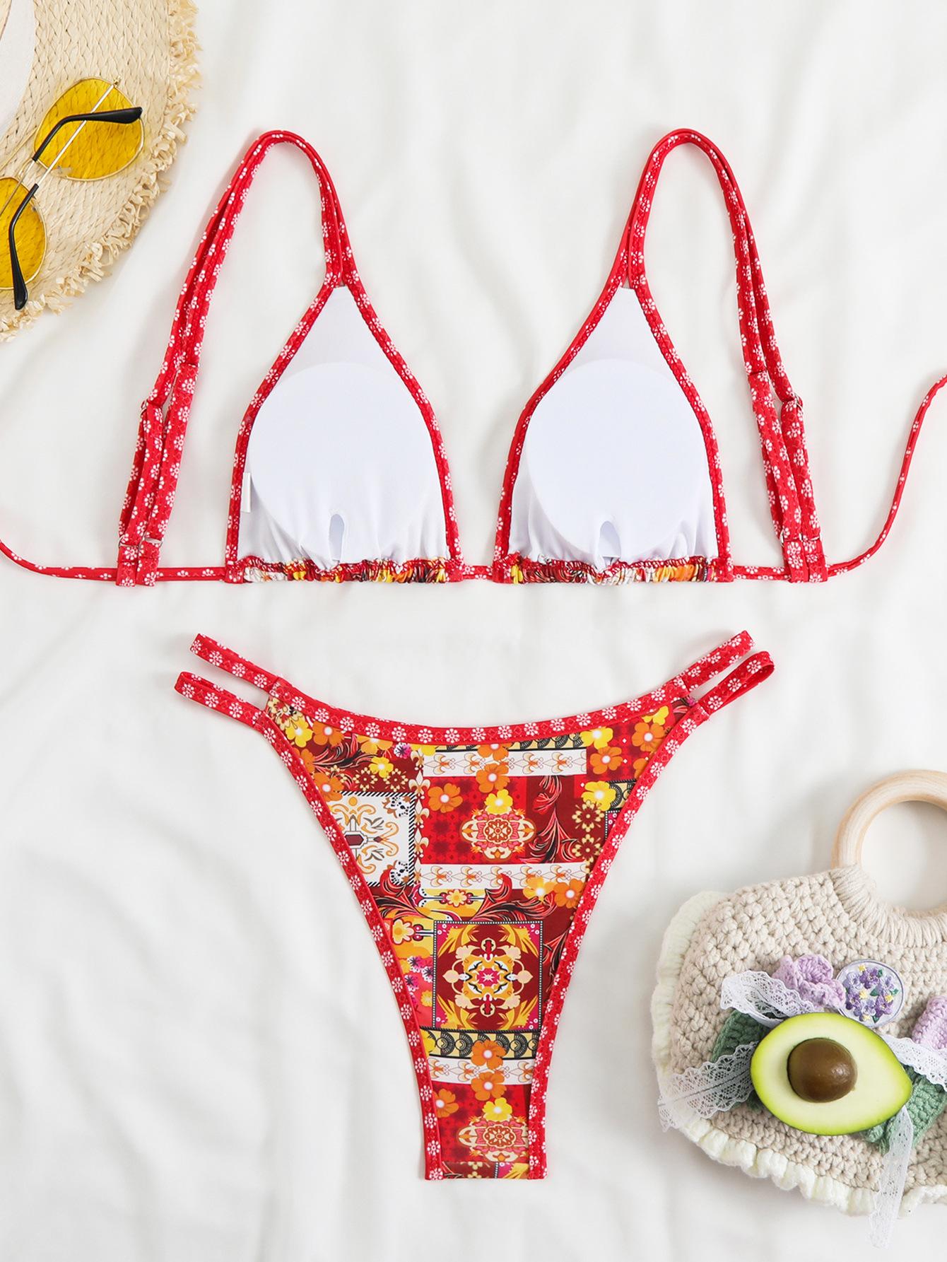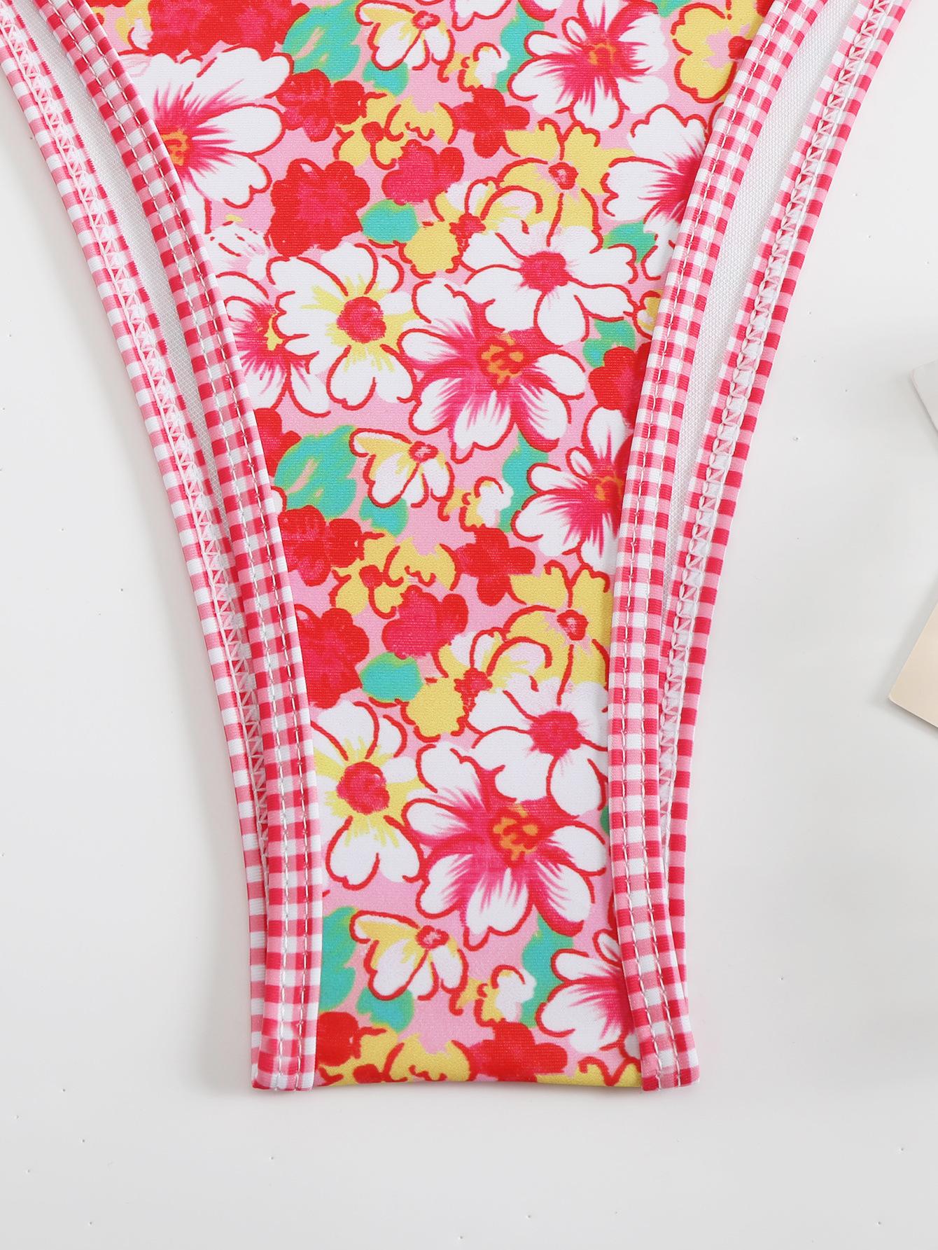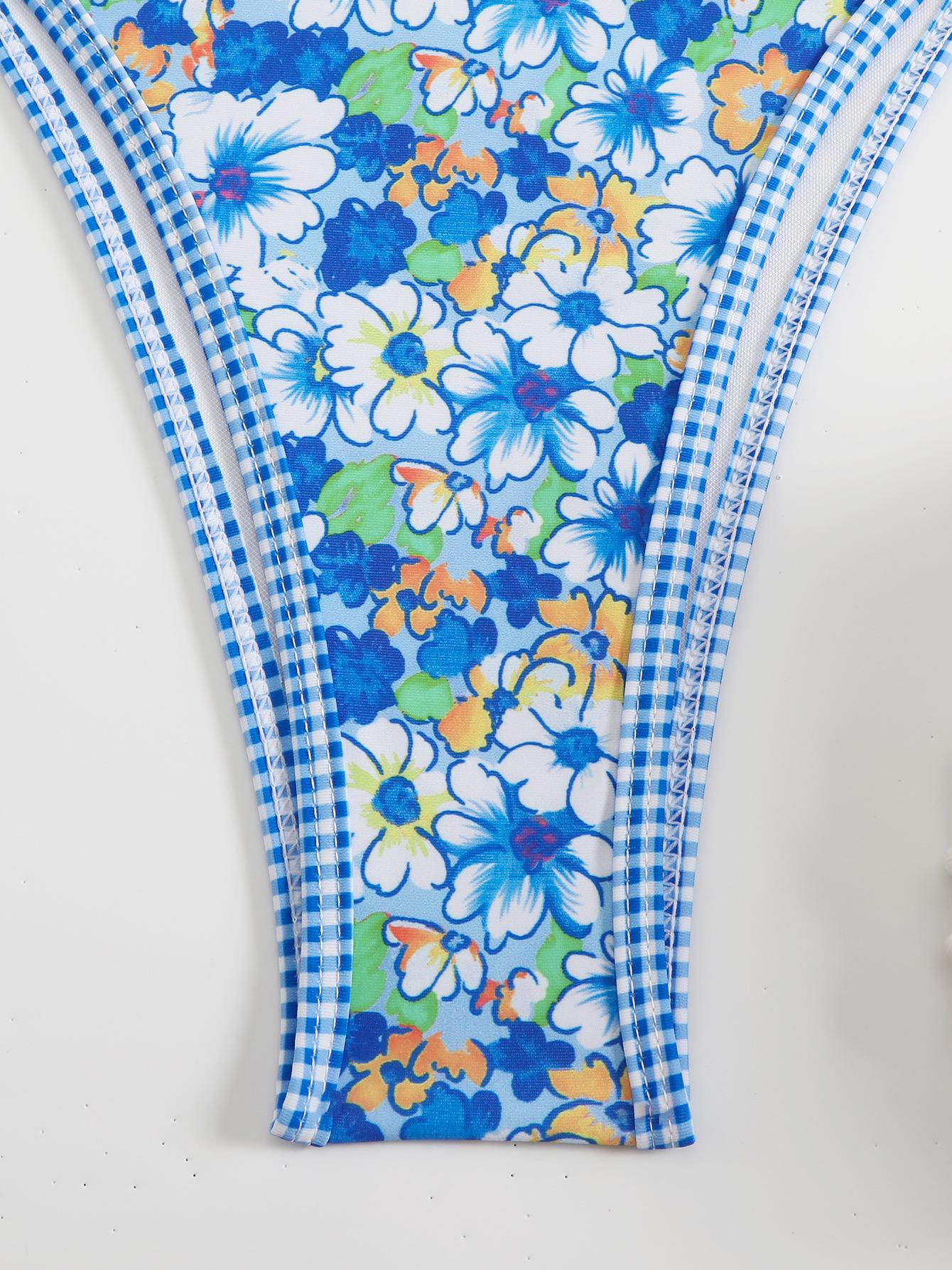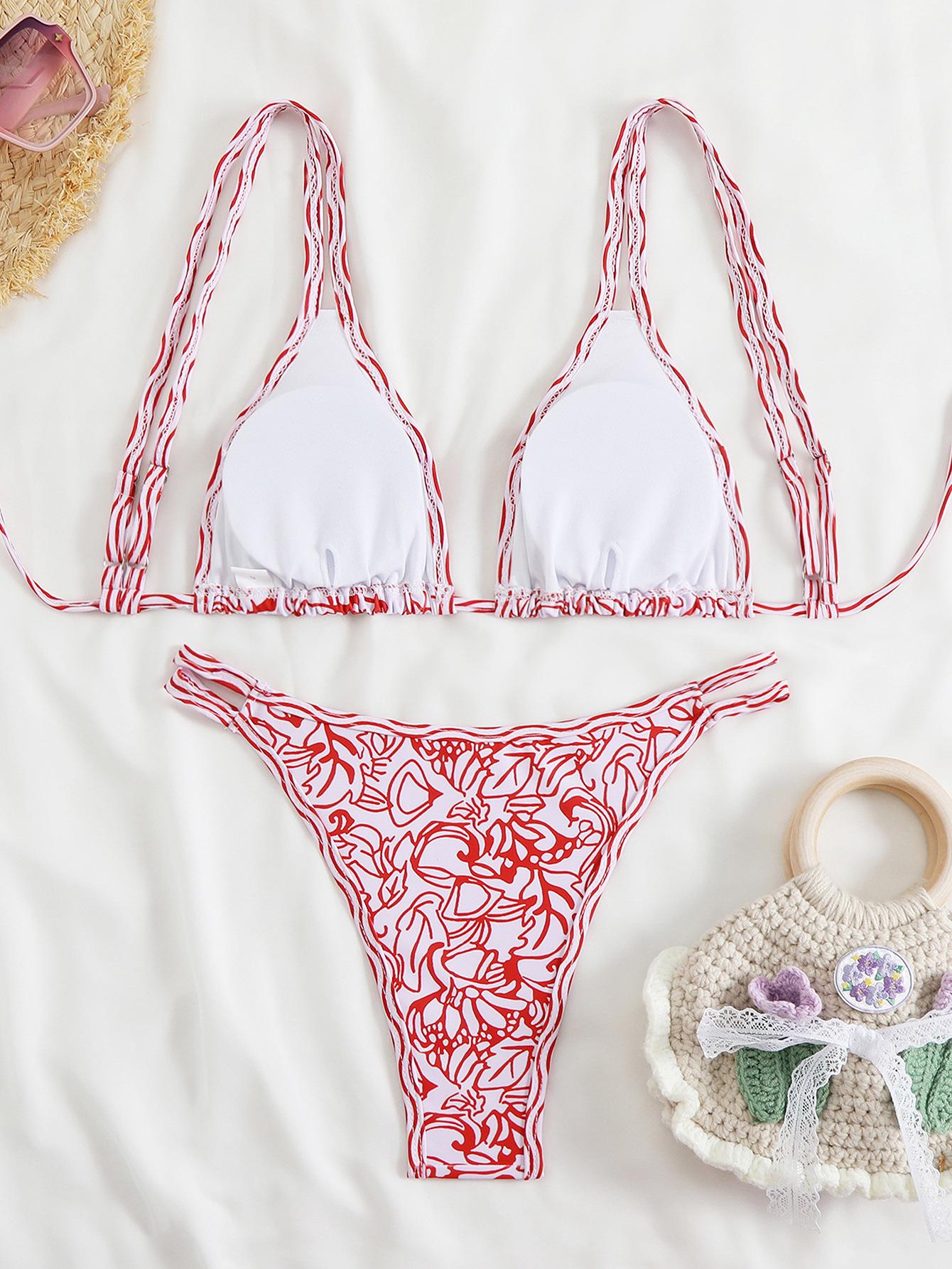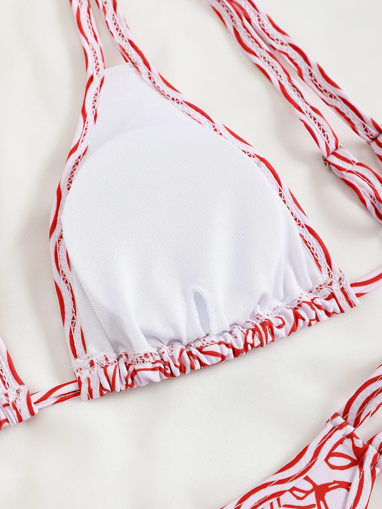 Bikini 2025 Europeo y Americano de Nueva Llegada Encaje Floral con Cordones Sexy Traje de Baño Dividido para Mujer Ropa de Playa Bikini Transfronterizo
