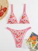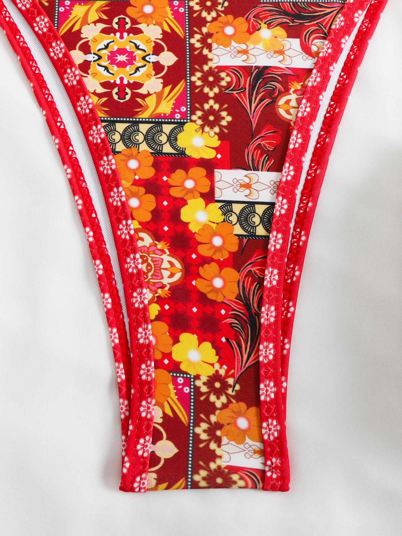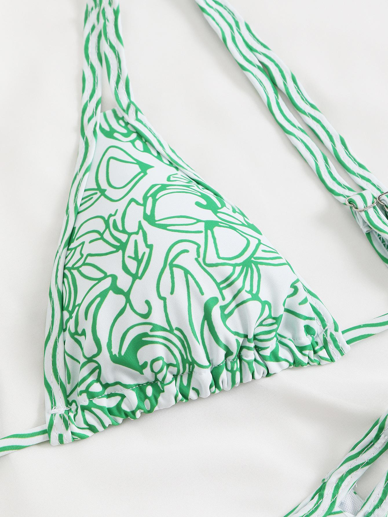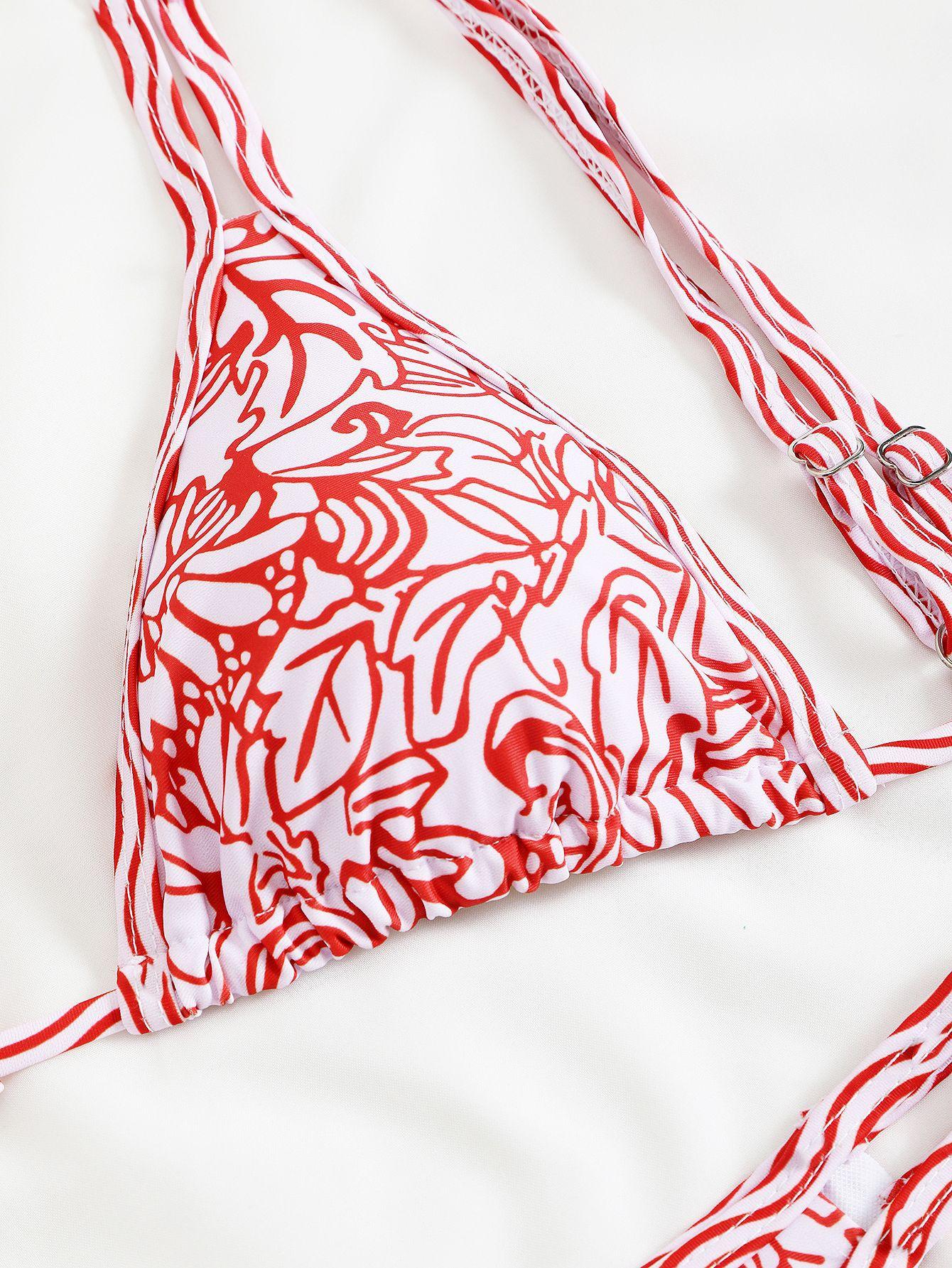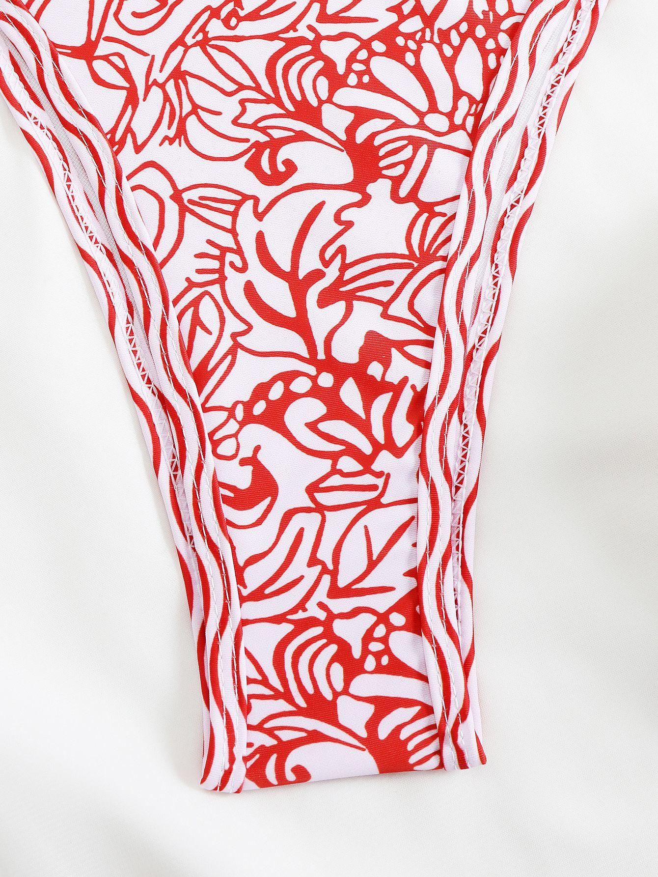 Bikini 2025 Europeo y Americano de Nueva Llegada Encaje Floral con Cordones Sexy Traje de Baño Dividido para Mujer Ropa de Playa Bikini Transfronterizo