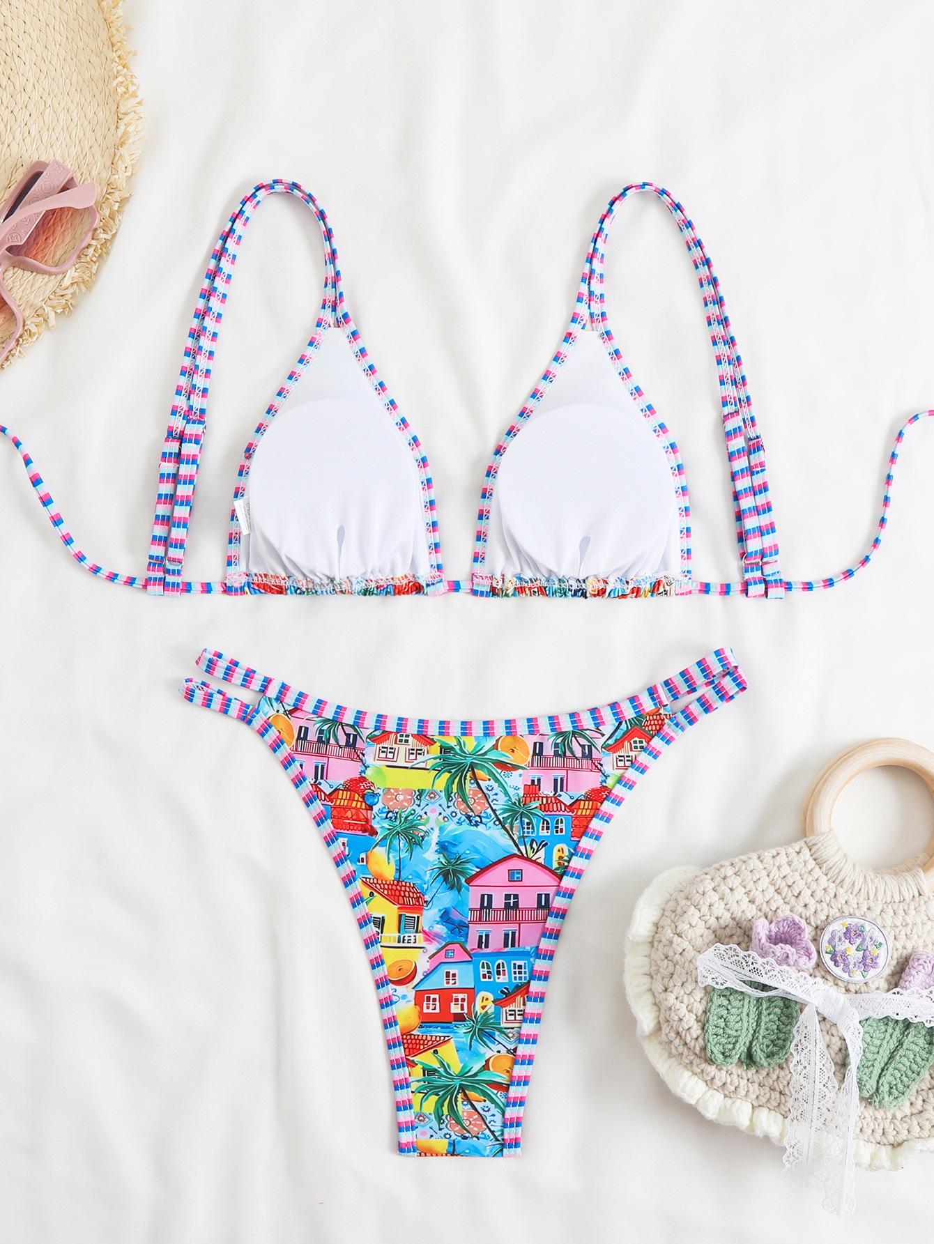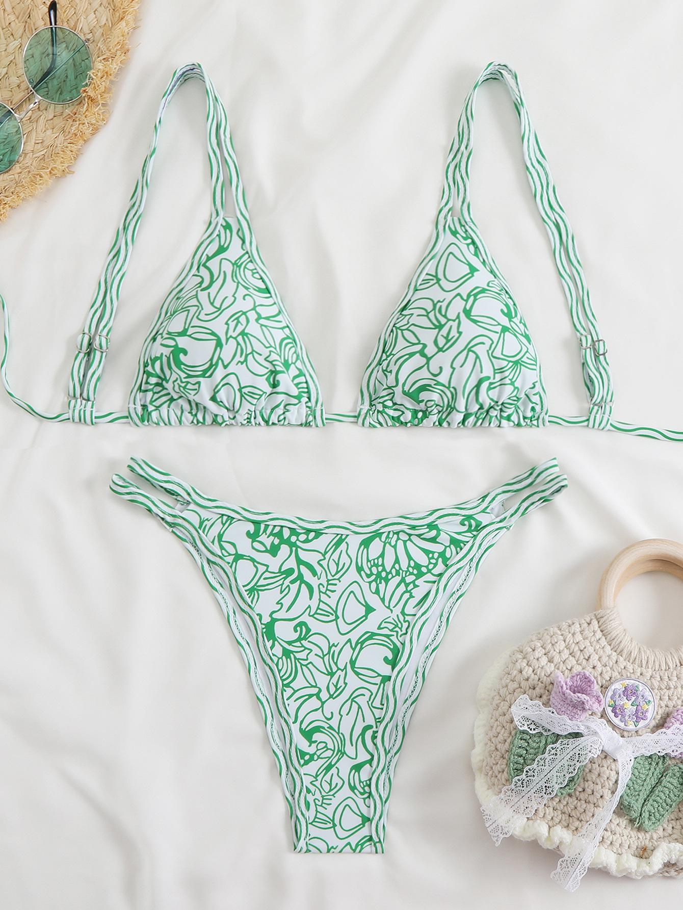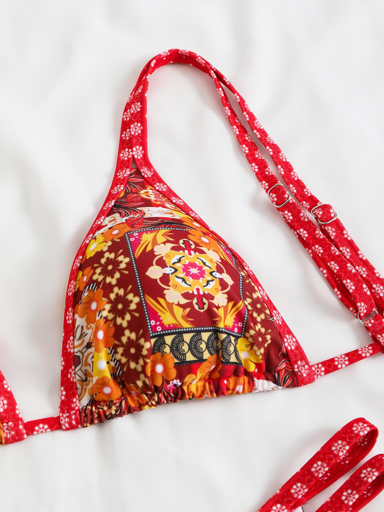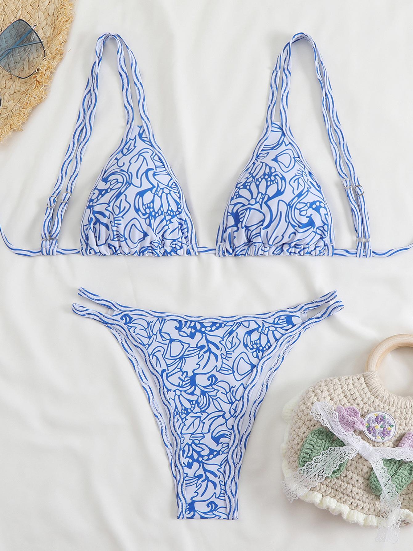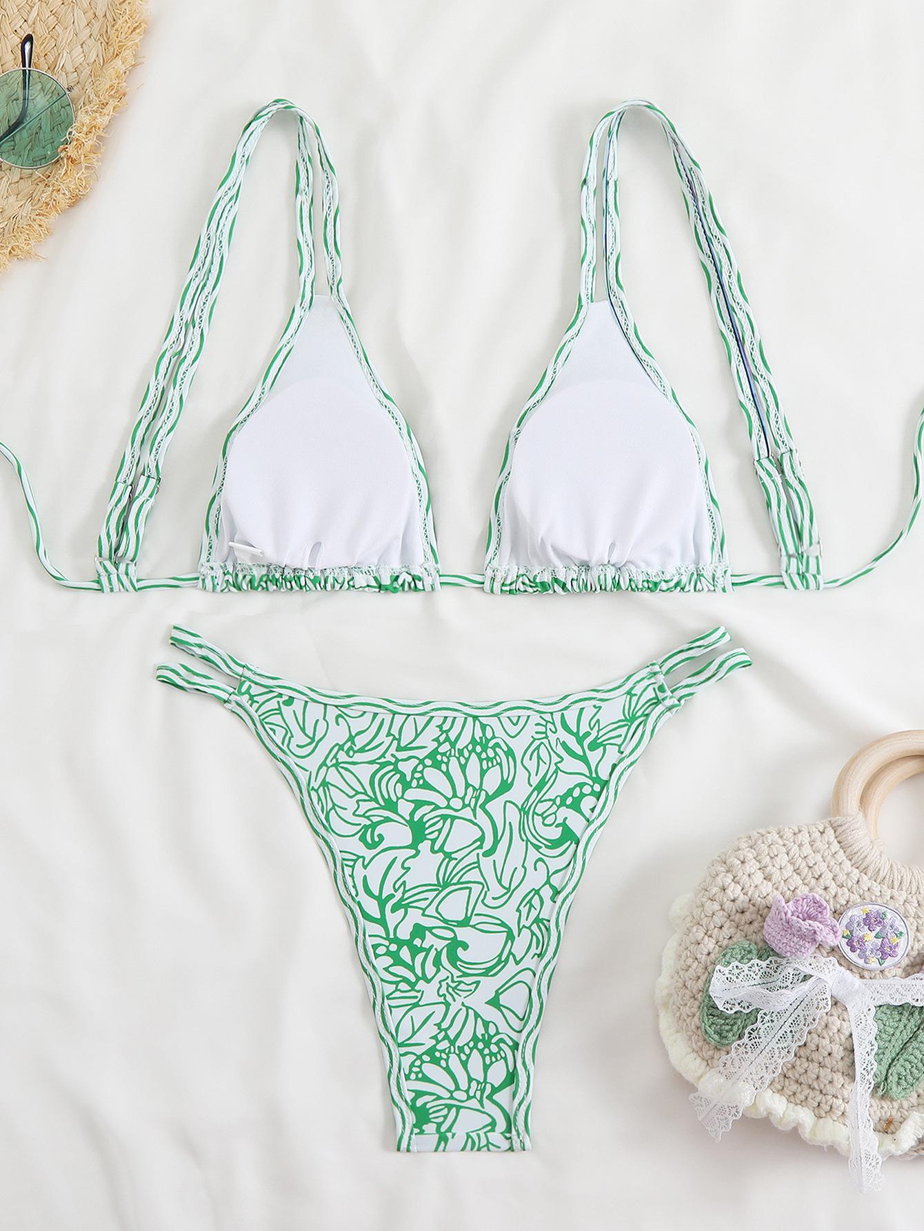 Bikini 2025 Europeo y Americano de Nueva Llegada Encaje Floral con Cordones Sexy Traje de Baño Dividido para Mujer Ropa de Playa Bikini Transfronterizo