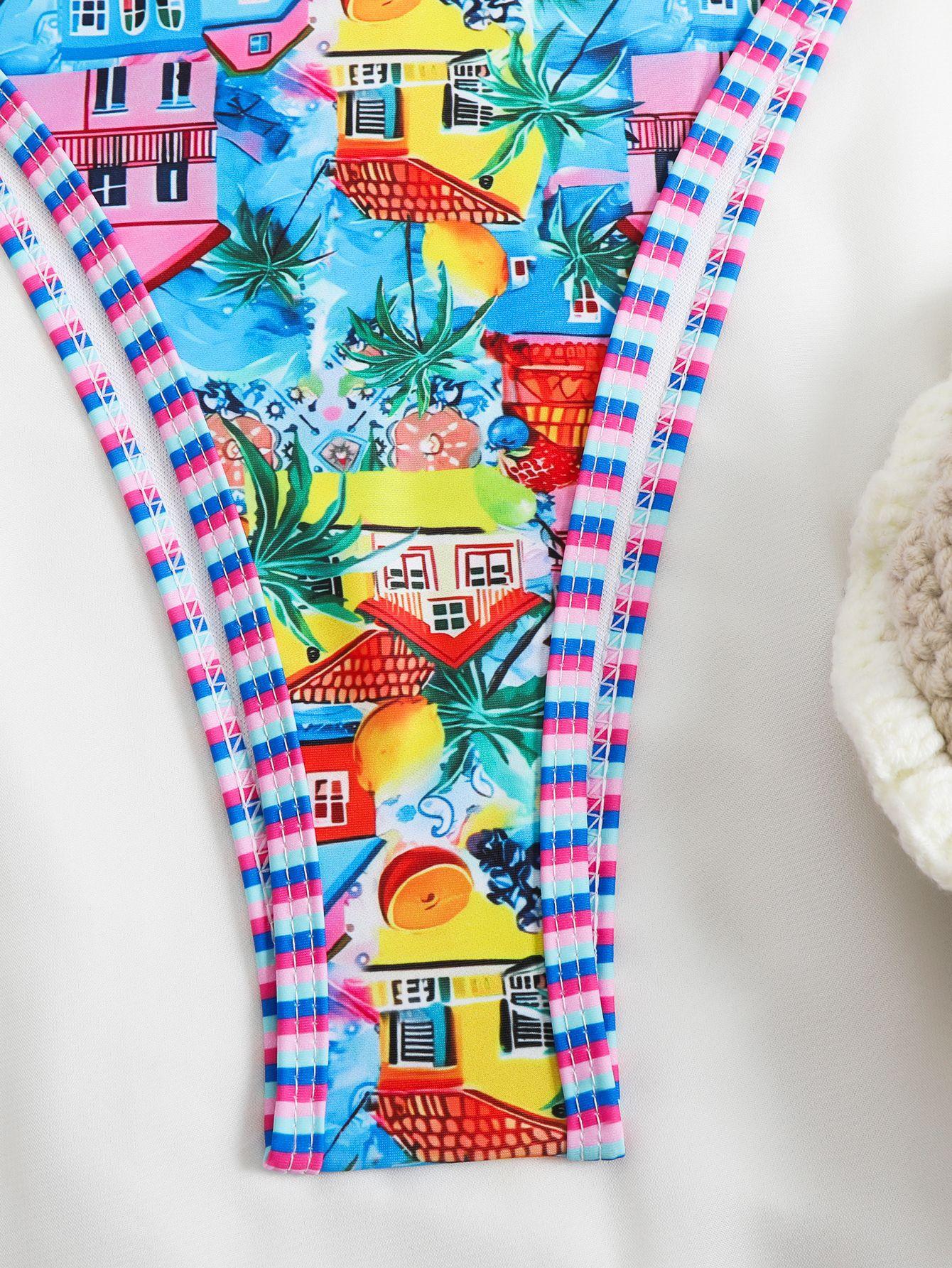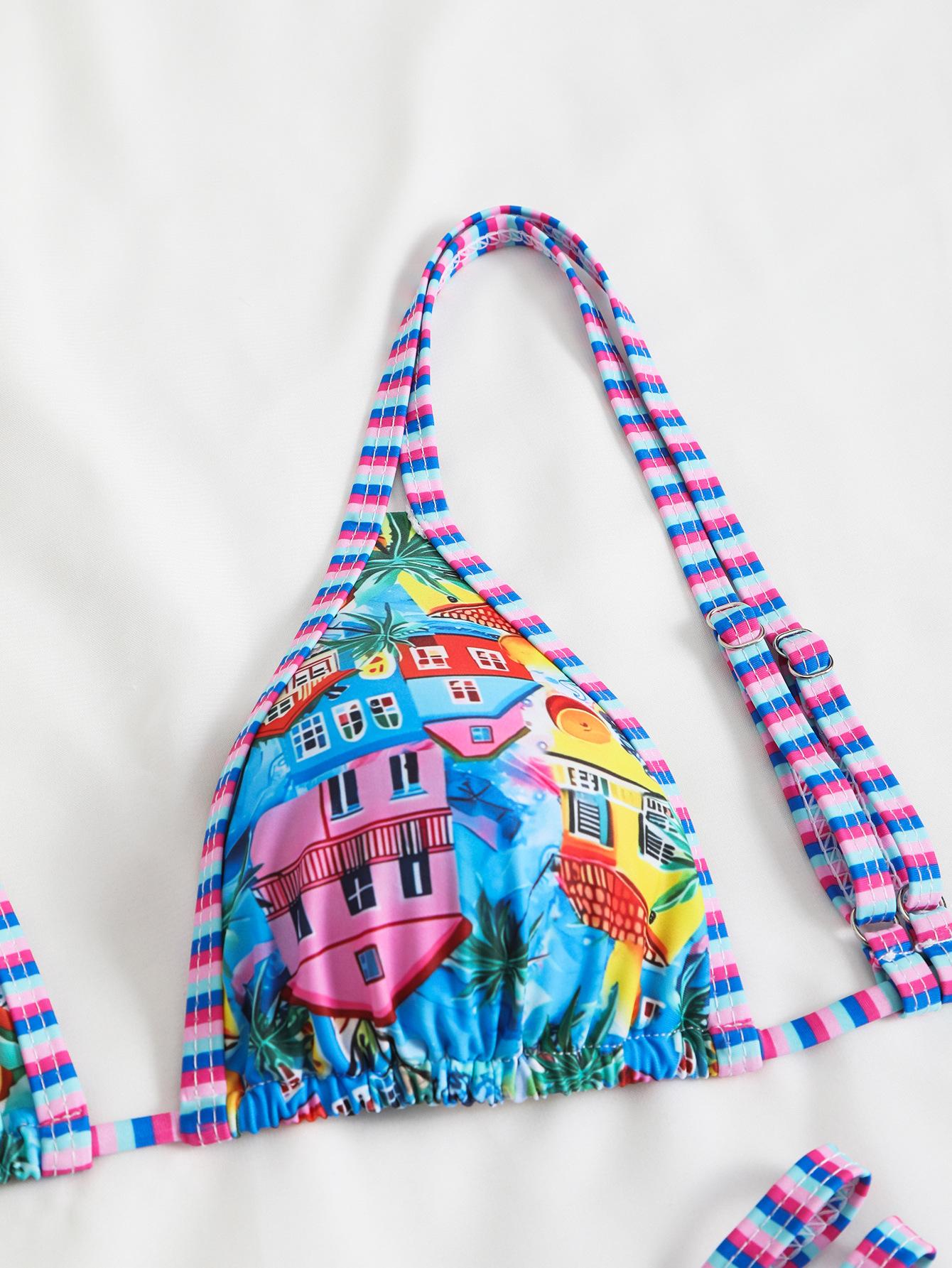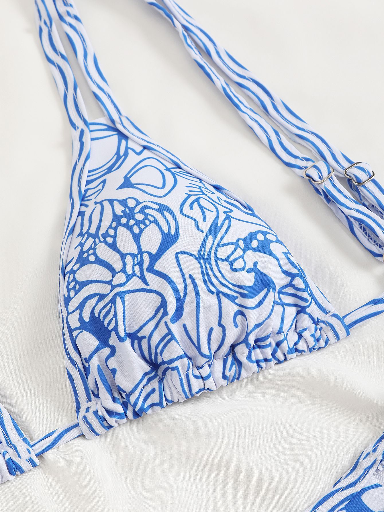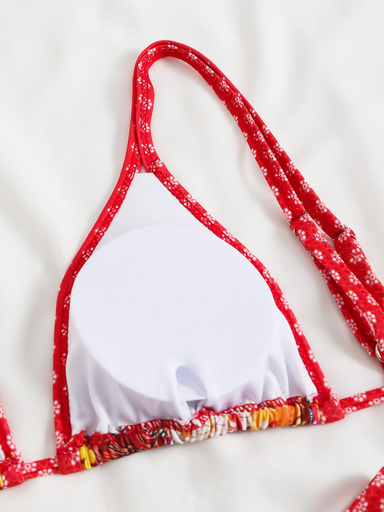 Bikini 2025 Europeo y Americano de Nueva Llegada Encaje Floral con Cordones Sexy Traje de Baño Dividido para Mujer Ropa de Playa Bikini Transfronterizo