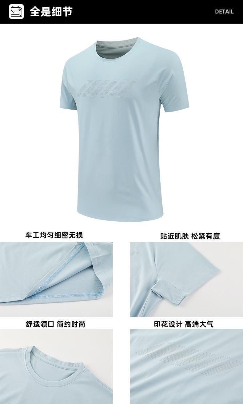 Camiseta Deportiva de Verano para Hombre Delgada Transpirable de Alta Elasticidad Seda de Hielo Fría Fitness Running Cuello Redondo Secado Rápido Estampada Manga Corta