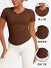 Camiseta Europea y Americana Desnuda de Cuello en V y Manga Corta para Mujer, Ajustada a la Cintura, Slim-fit, Versátil, Top Deportivo, Fitness, Running, Ropa de Yoga