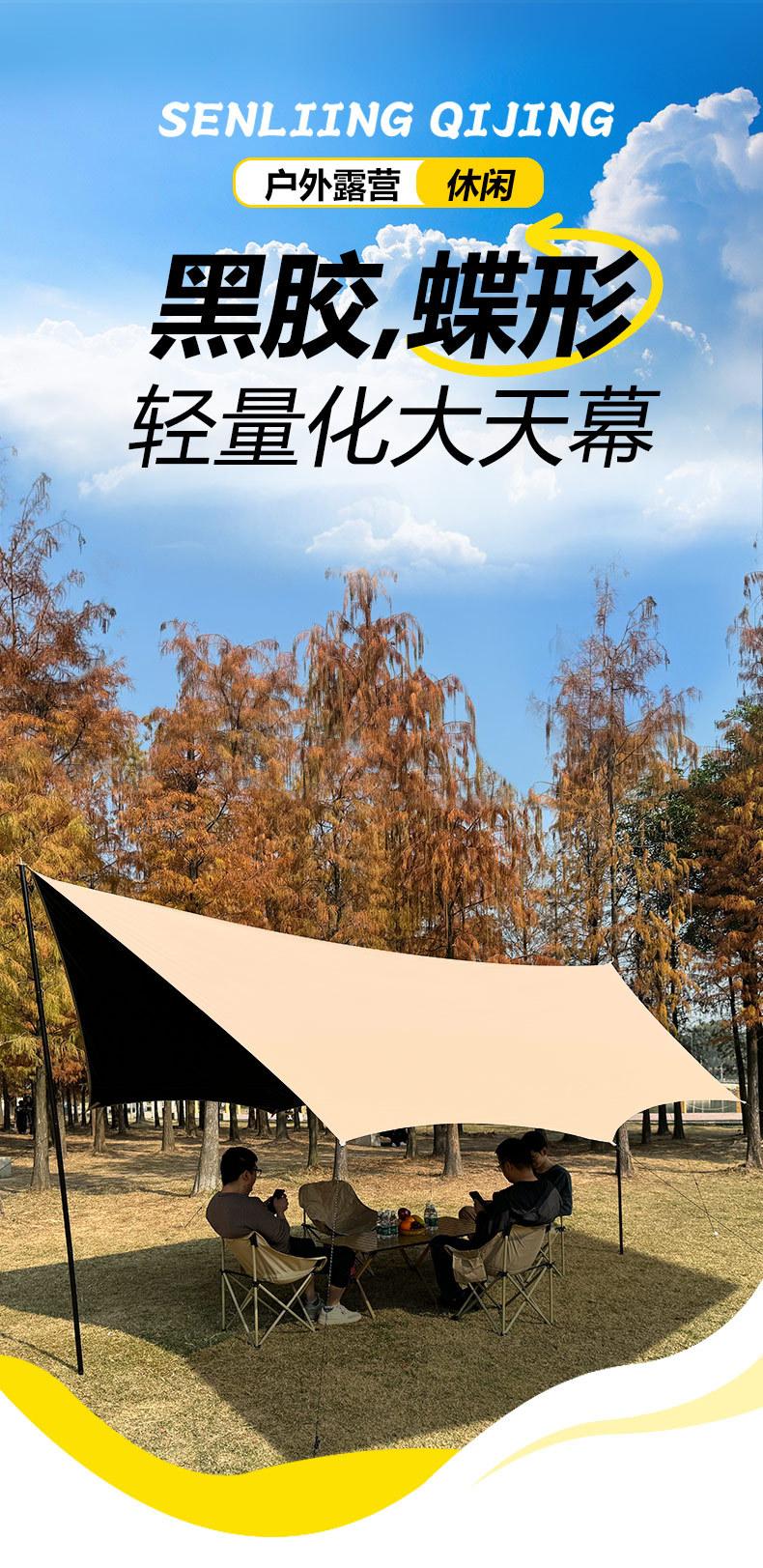 Carpa Cenador Exterior Engrosada Pegamento Negro Sombrilla Portátil Mariposa Hexagonal Equipo Equipo de Camping