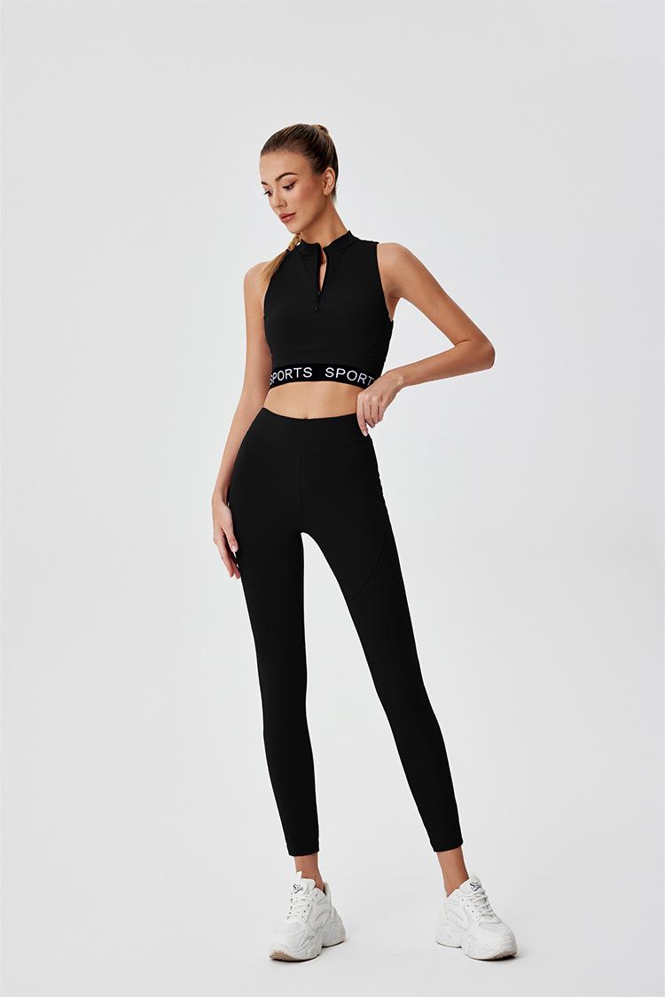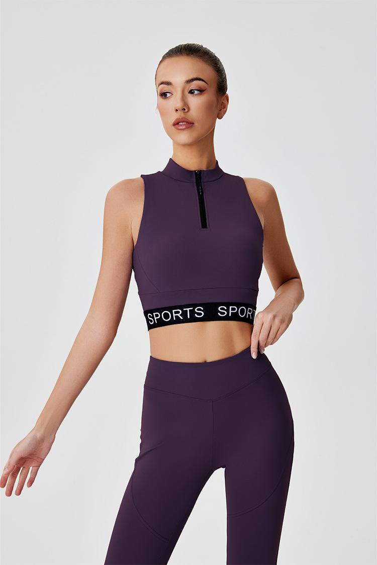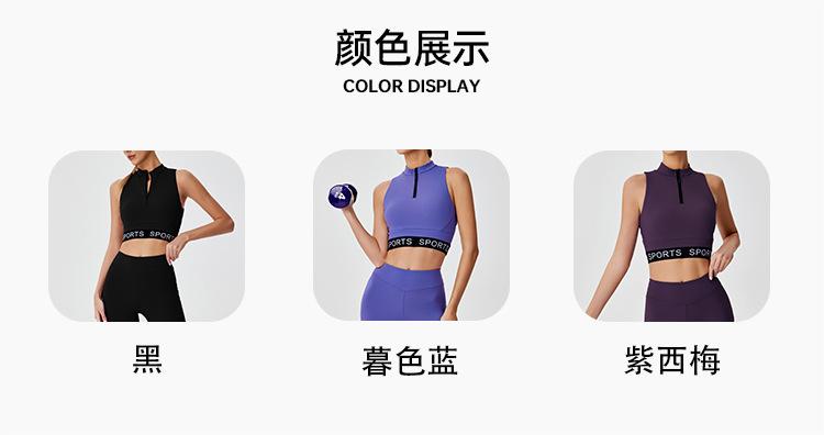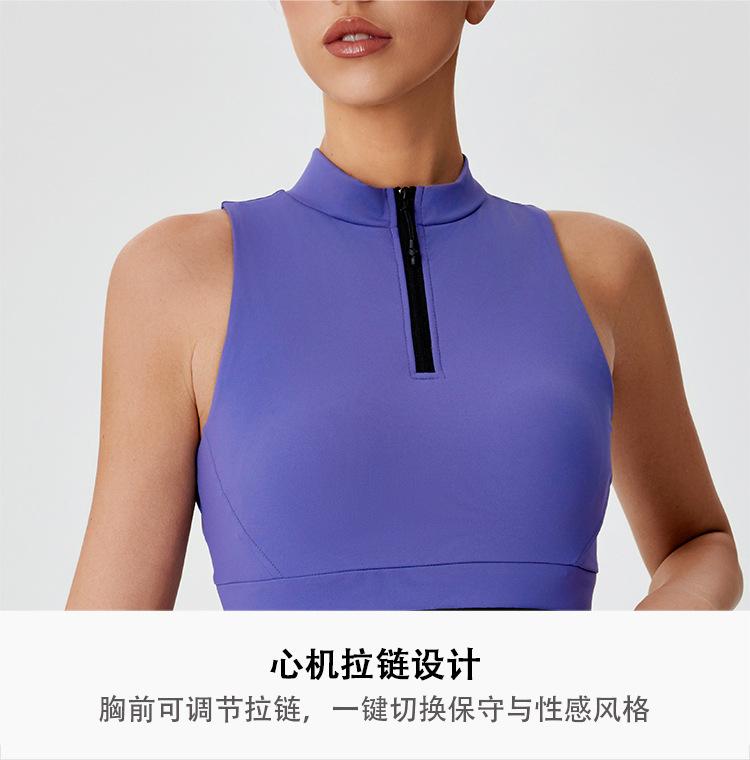 Nuevo Chaleco de Yoga de Goma con Letra Cruzada para Mujer, Cinturón, Cremallera, a Prueba de Golpes, Contraste de Color, Traje Deportivo de Fitness, Secado Rápido, Espalda Hermosa