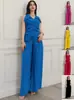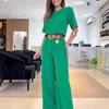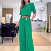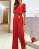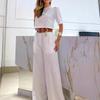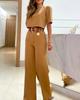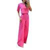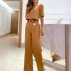 ¡en stock! Traje de verano transfronterizo europeo y americano 2023, nuevo, de moda, color sólido, informal, pantalones anchos, top de manga corta
