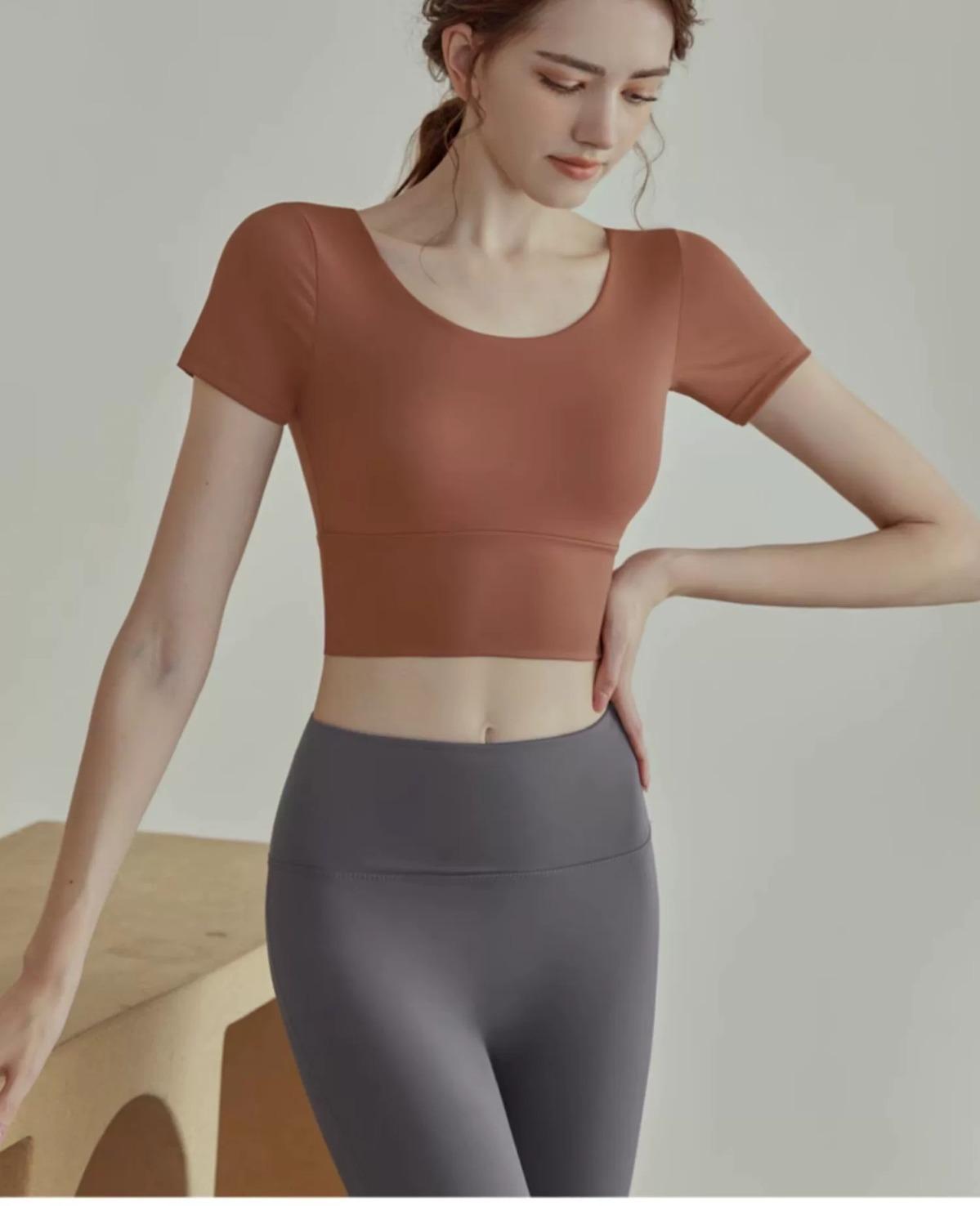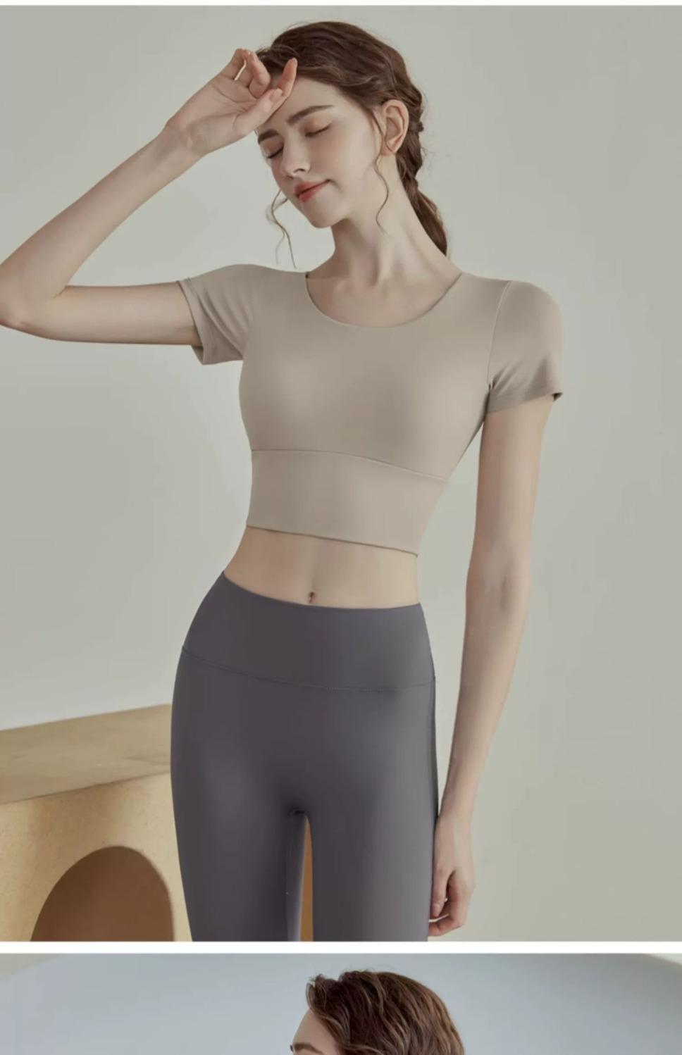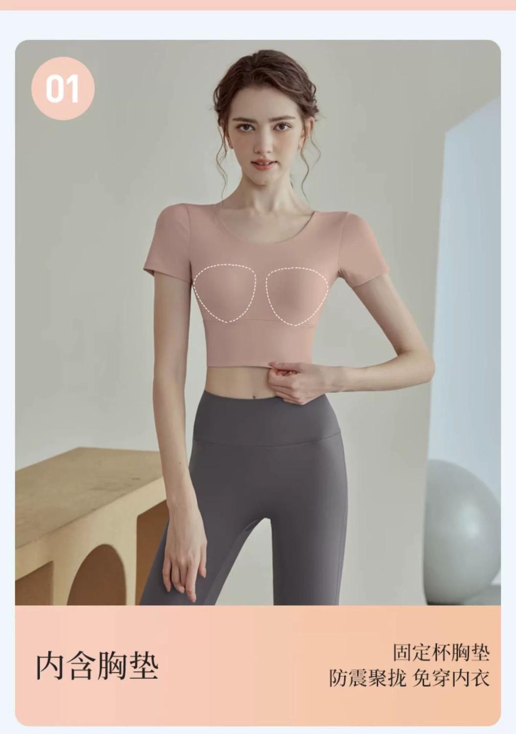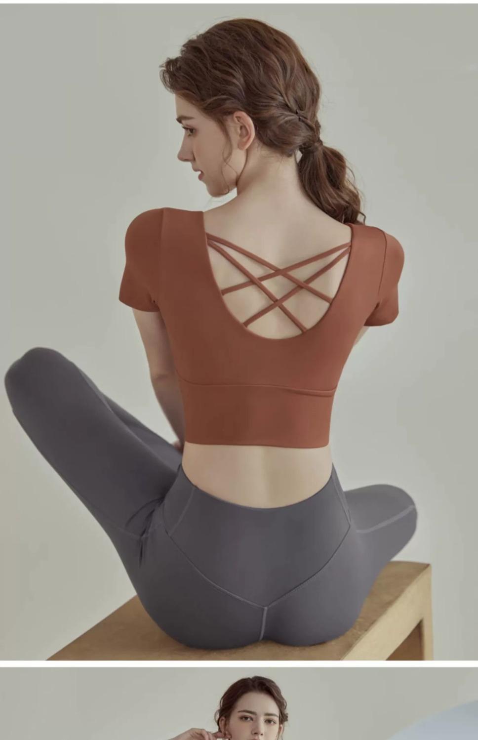 Ropa de Yoga Youyou para Mujer 2025 con Almohadilla en el Pecho Manga Corta Fitness Deportivo Pilates Entrenamiento Top Set