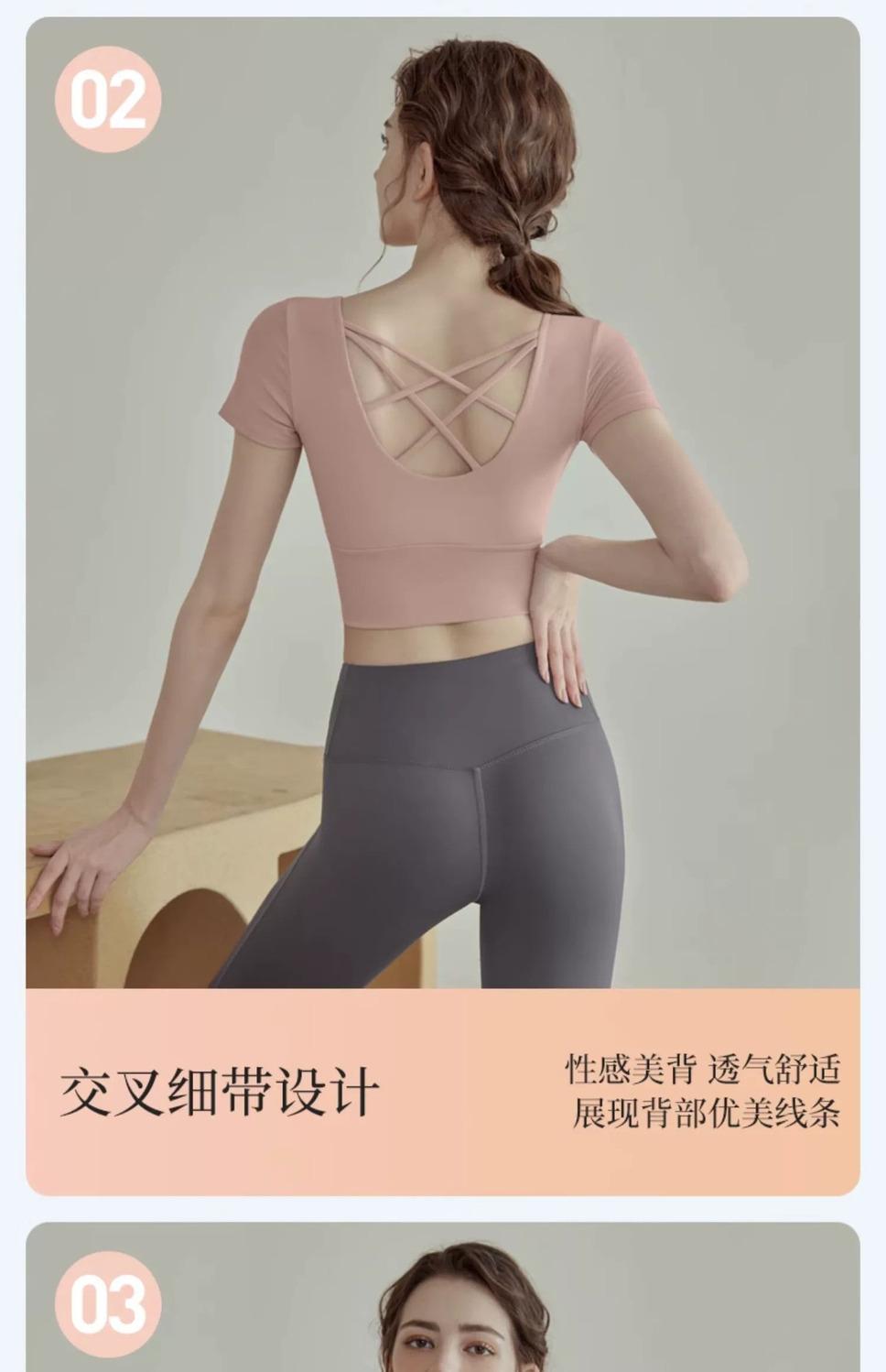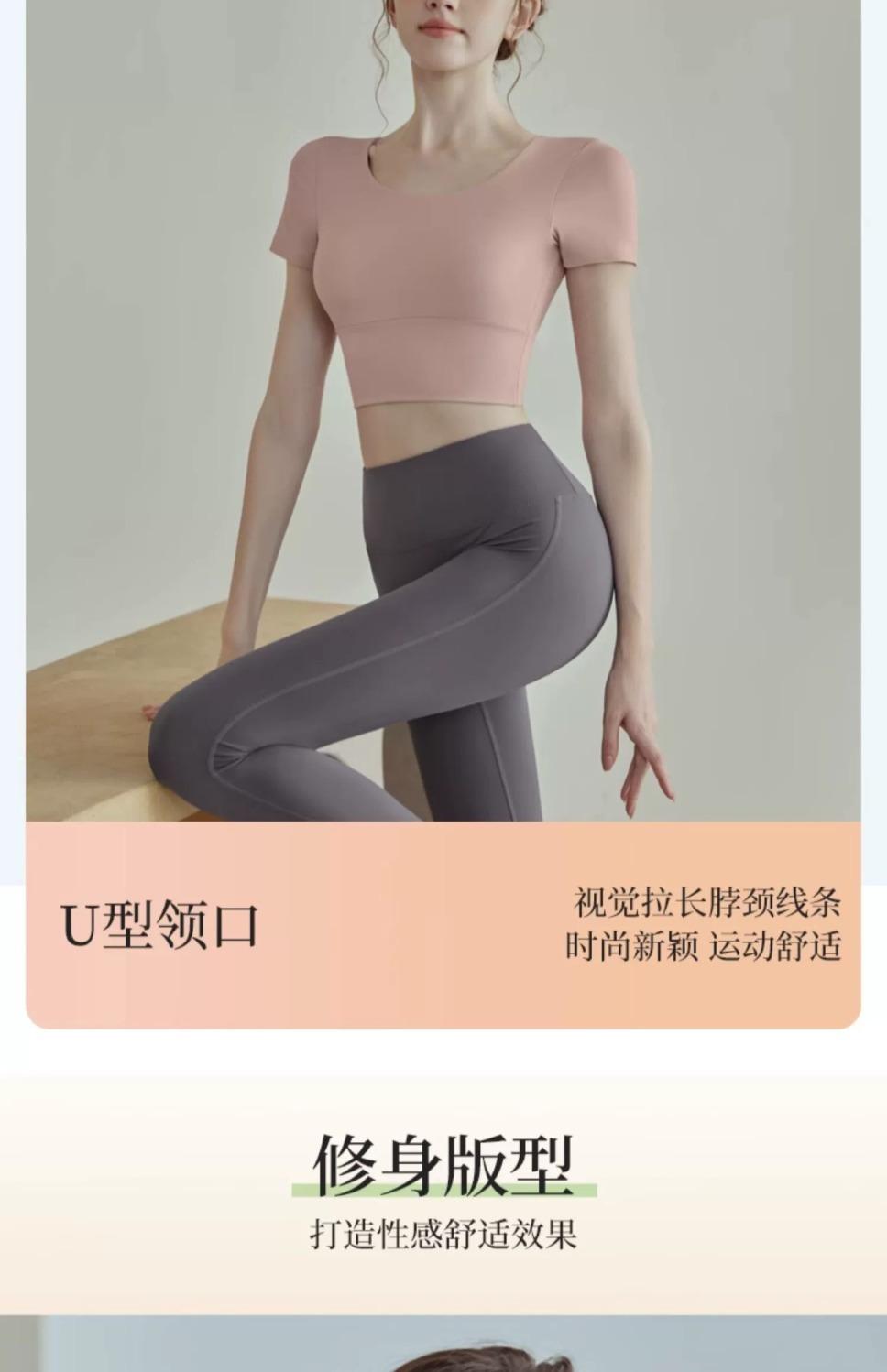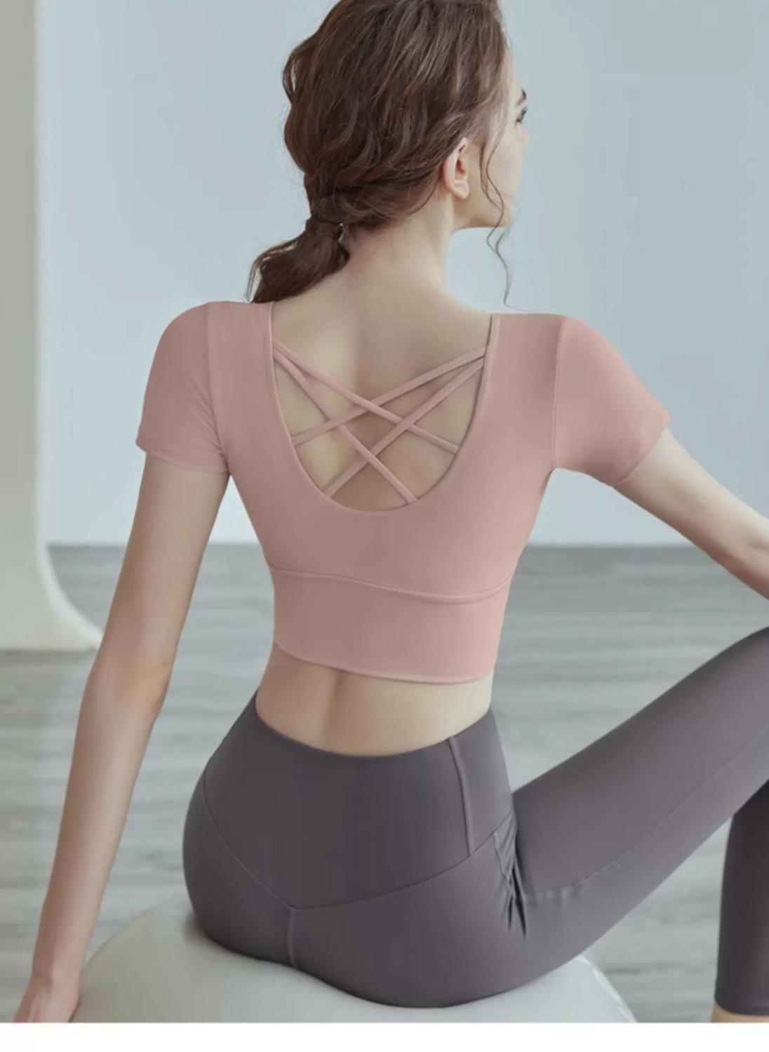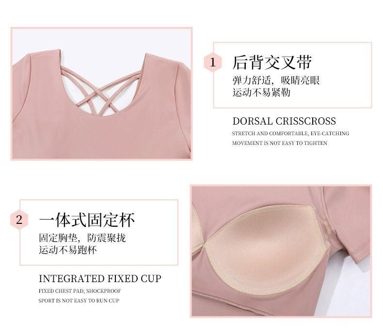 Ropa de Yoga Youyou para Mujer 2025 con Almohadilla en el Pecho Manga Corta Fitness Deportivo Pilates Entrenamiento Top Set