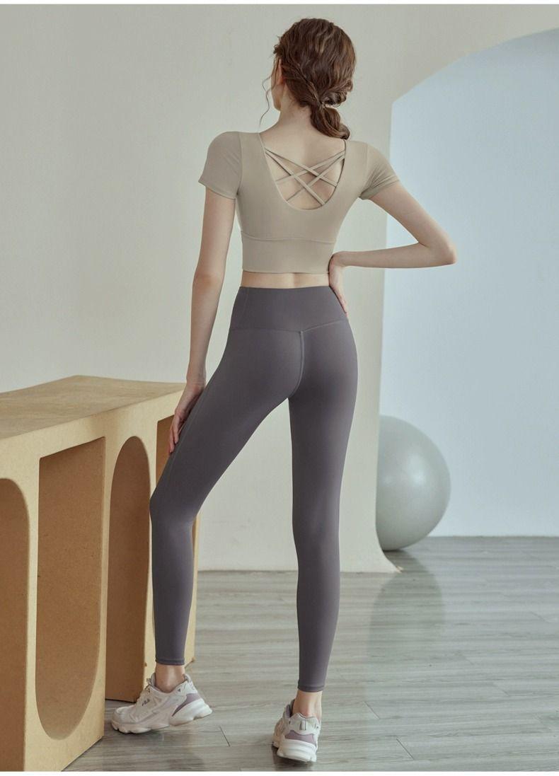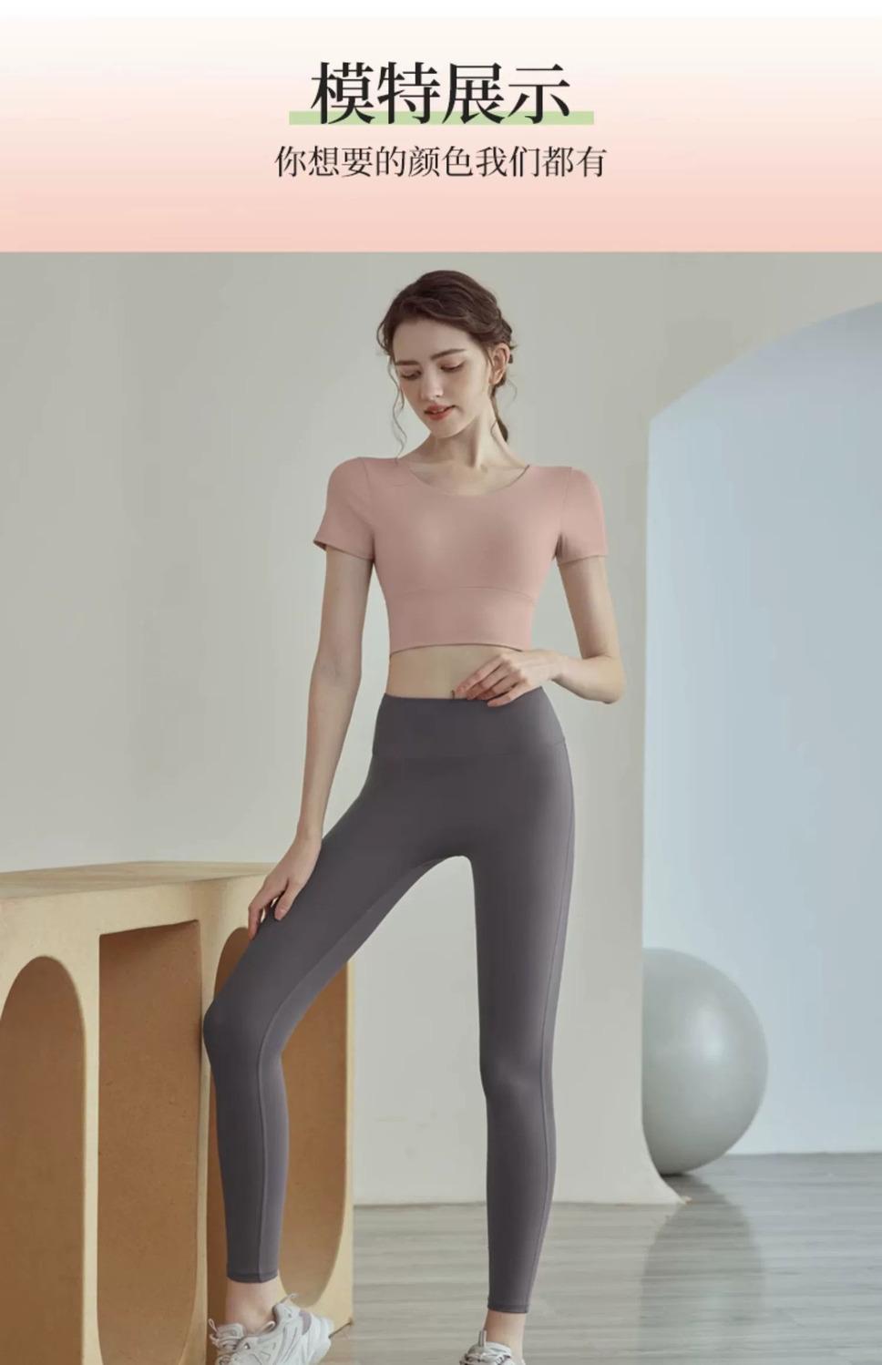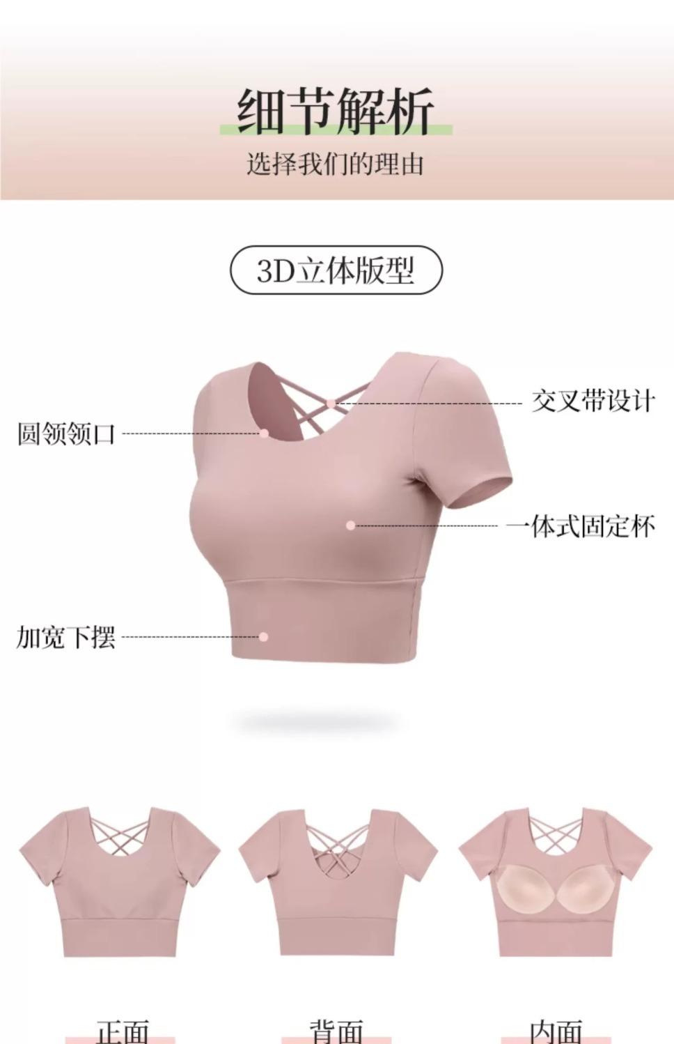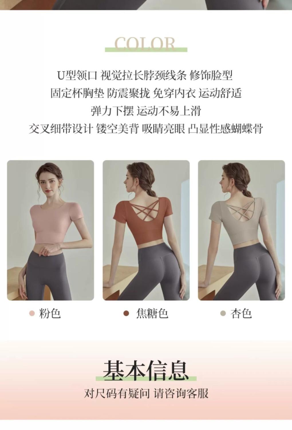 Ropa de Yoga Youyou para Mujer 2025 con Almohadilla en el Pecho Manga Corta Fitness Deportivo Pilates Entrenamiento Top Set