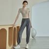 Light pink short-sleeved top [fixed cup] + black and gray trousers