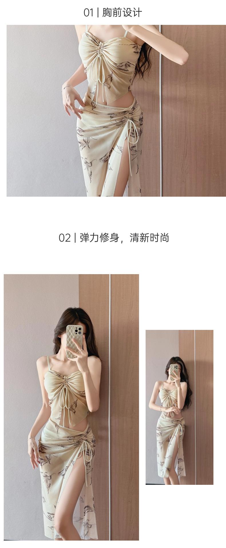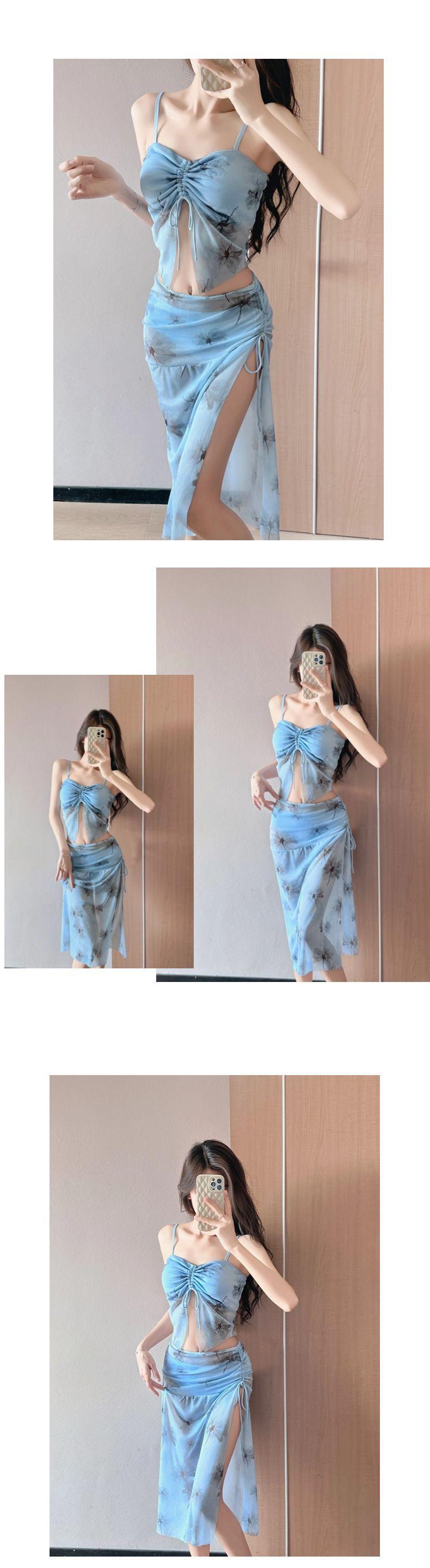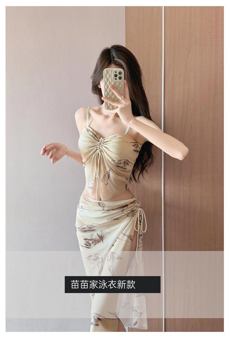 Traje de baño dividido de talla grande para mujer Vacaciones puras Sexy Delgado Vestido largo Bikini de aguas termales Traje de baño de tres piezas Spice Girls para mujer