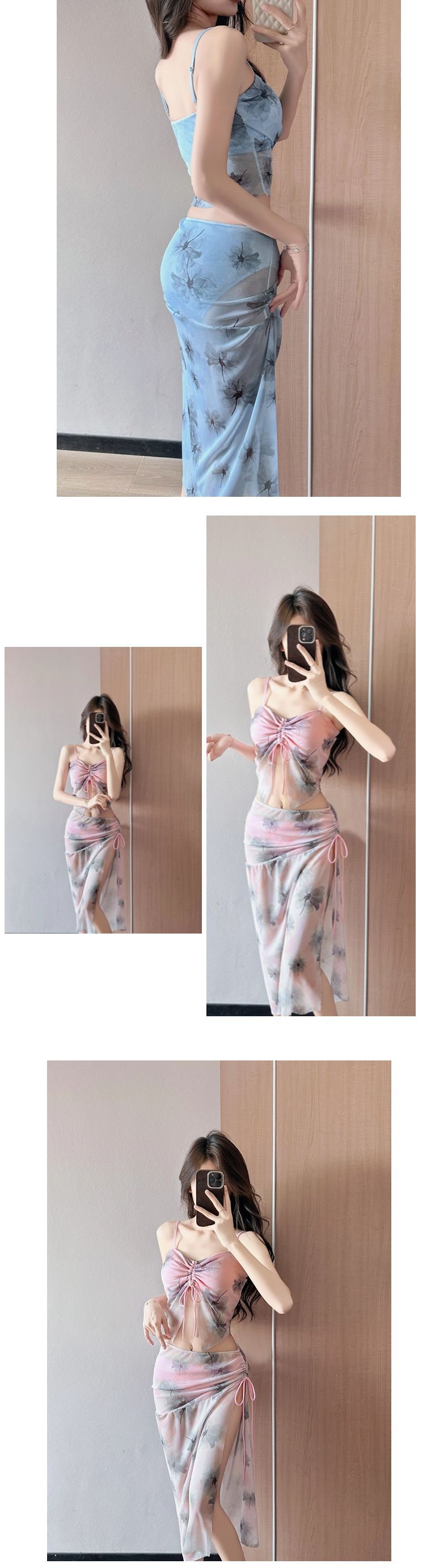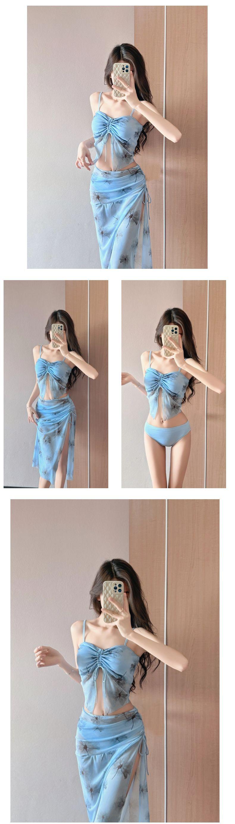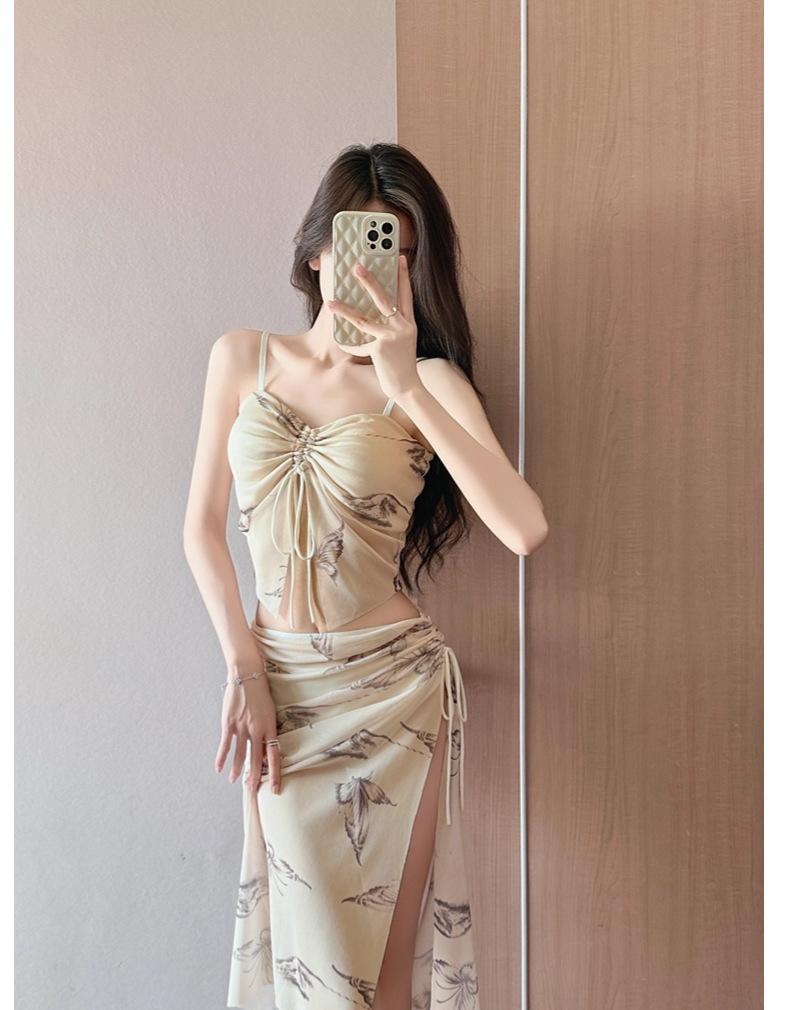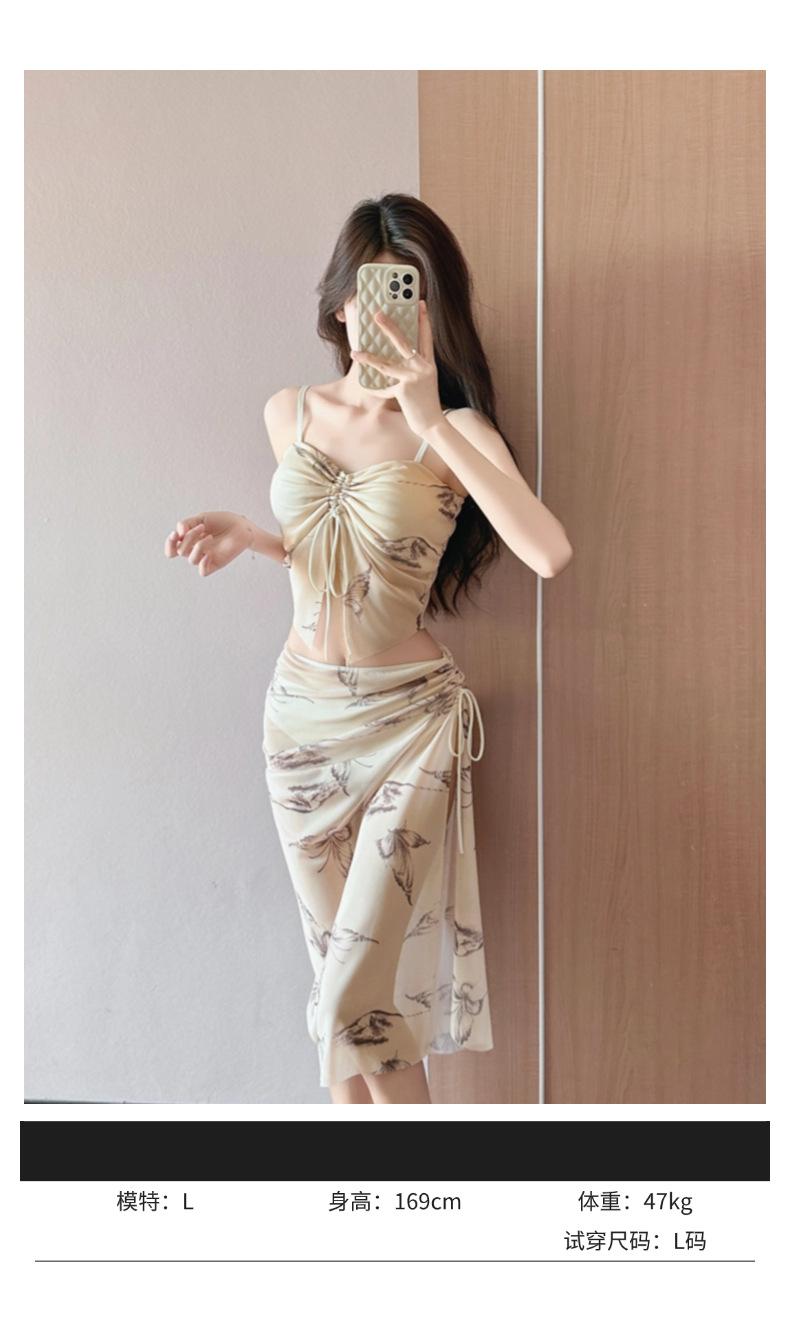 Traje de baño dividido de talla grande para mujer Vacaciones puras Sexy Delgado Vestido largo Bikini de aguas termales Traje de baño de tres piezas Spice Girls para mujer