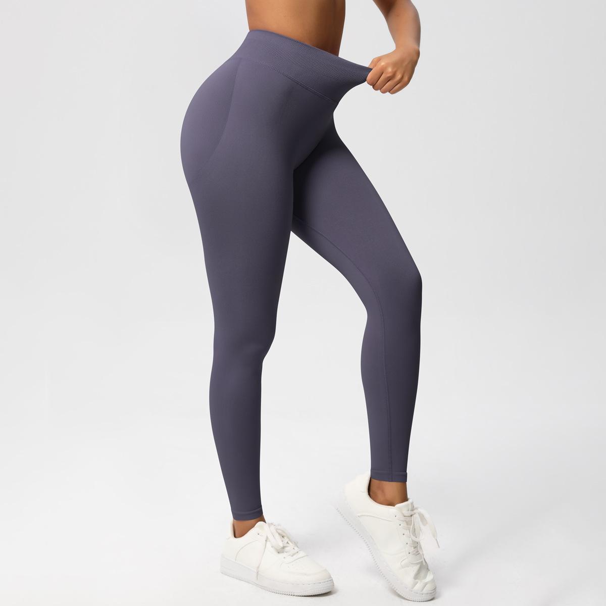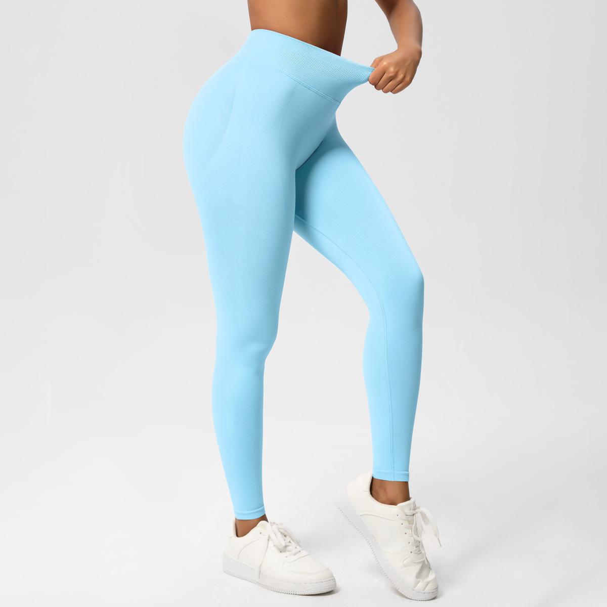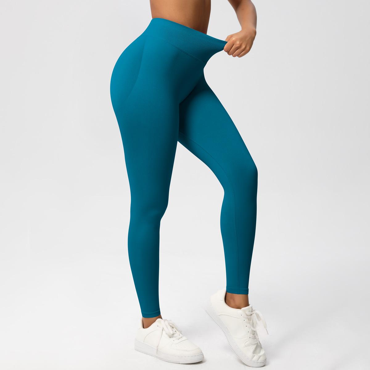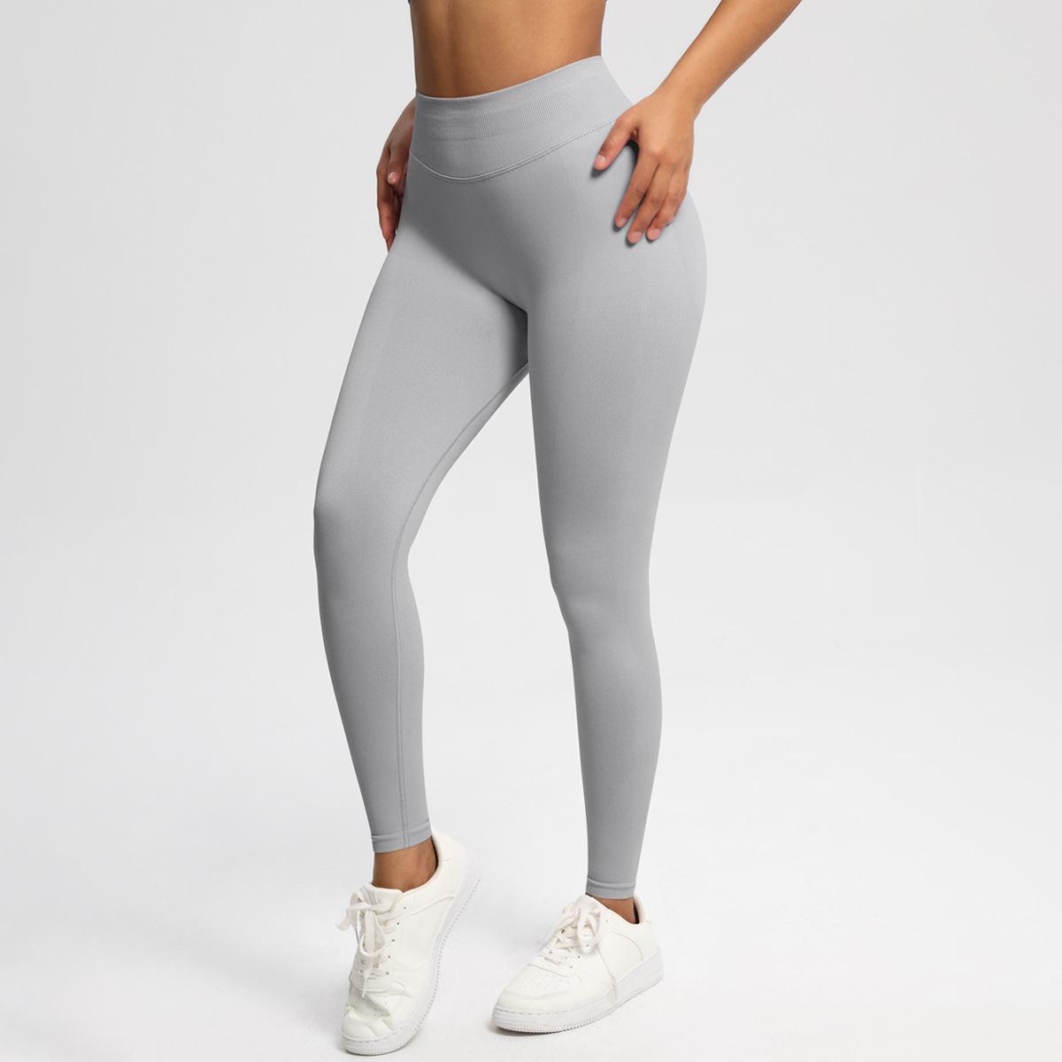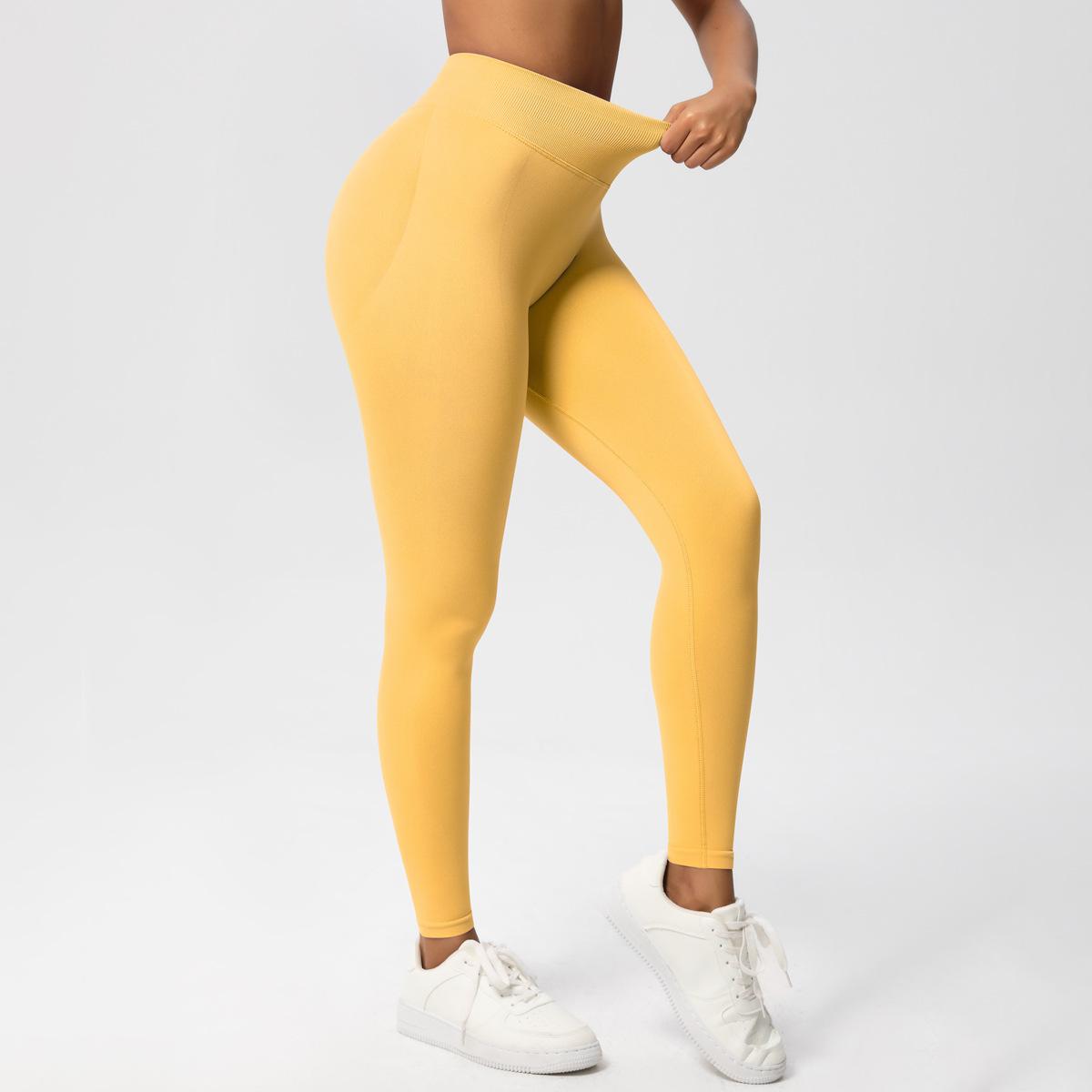 Nuevo color sólido transfronterizo de tres secciones con cintura arrugada y cadera, pantalones ajustados de cintura baja, pantalones deportivos para correr y fitness sin costuras para yoga