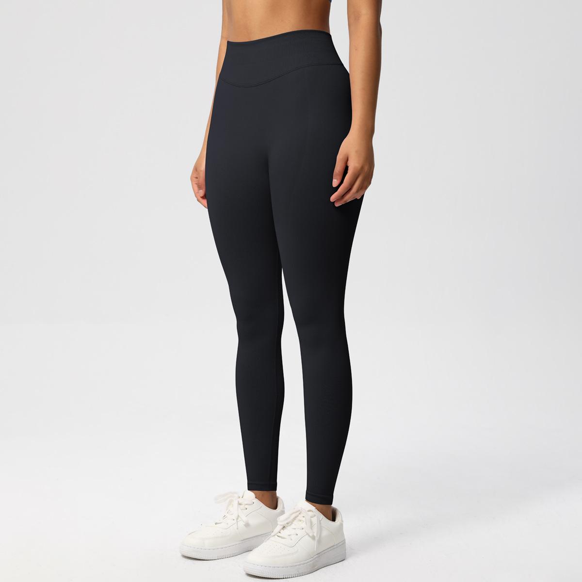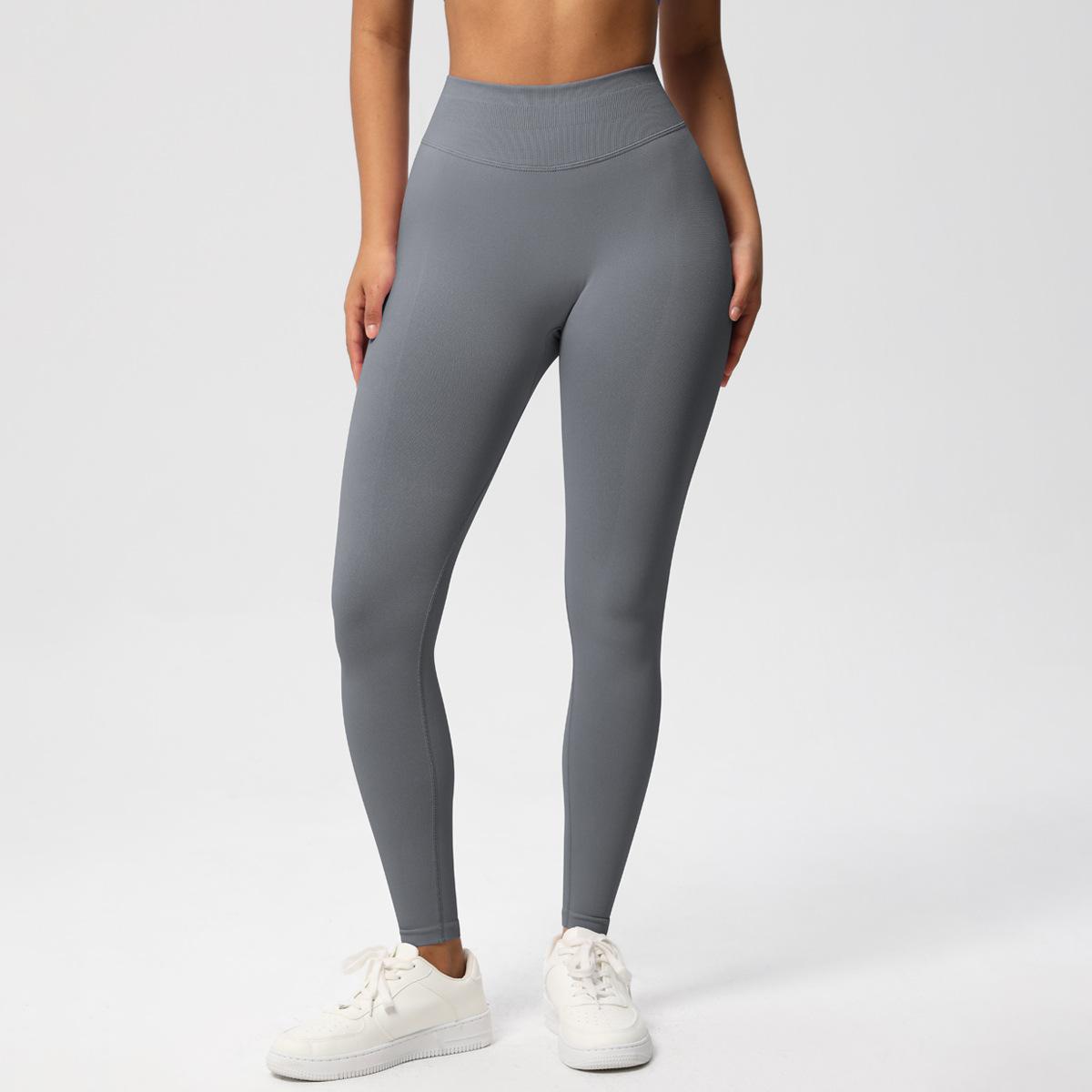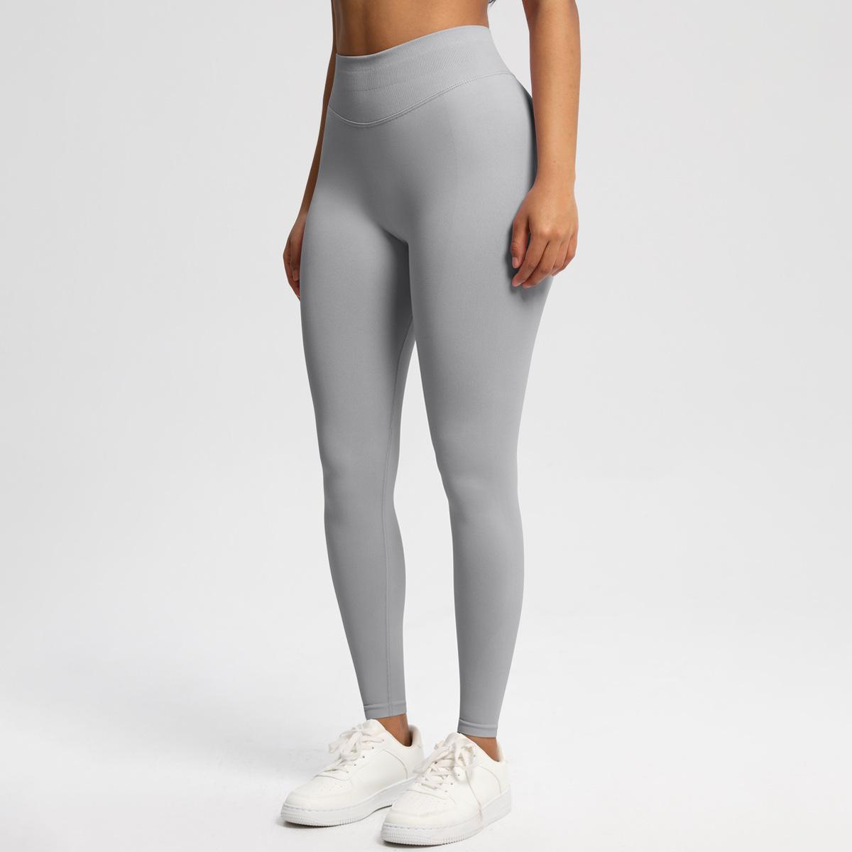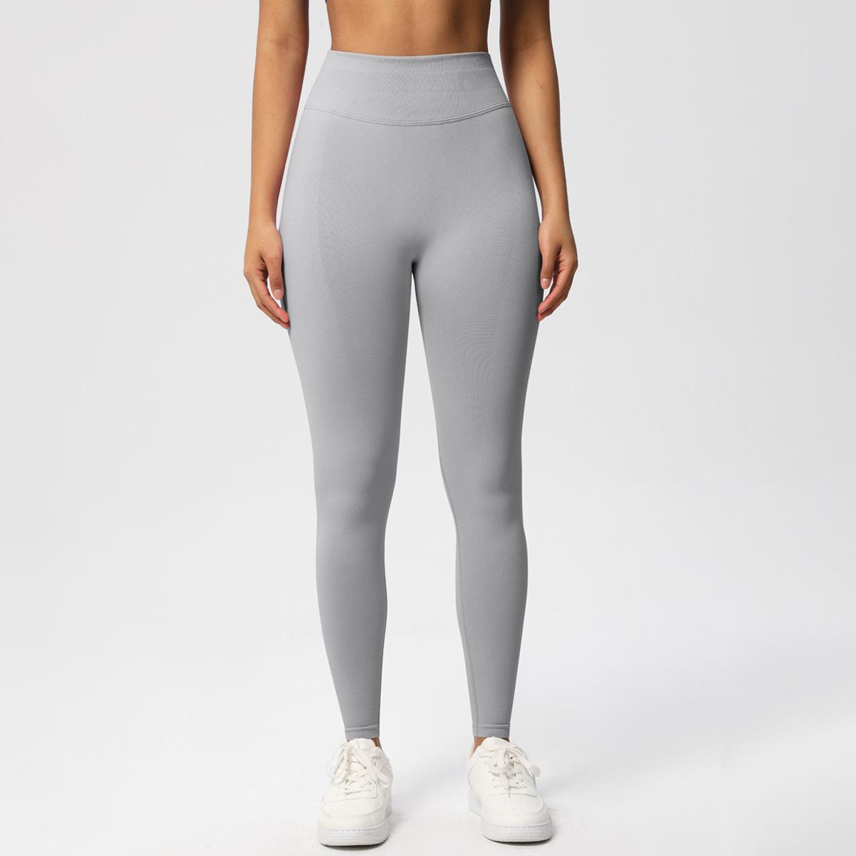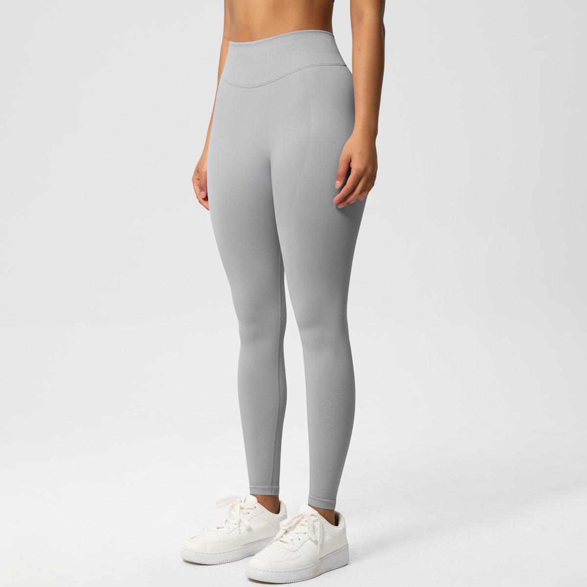 Nuevo color sólido transfronterizo de tres secciones con cintura arrugada y cadera, pantalones ajustados de cintura baja, pantalones deportivos para correr y fitness sin costuras para yoga