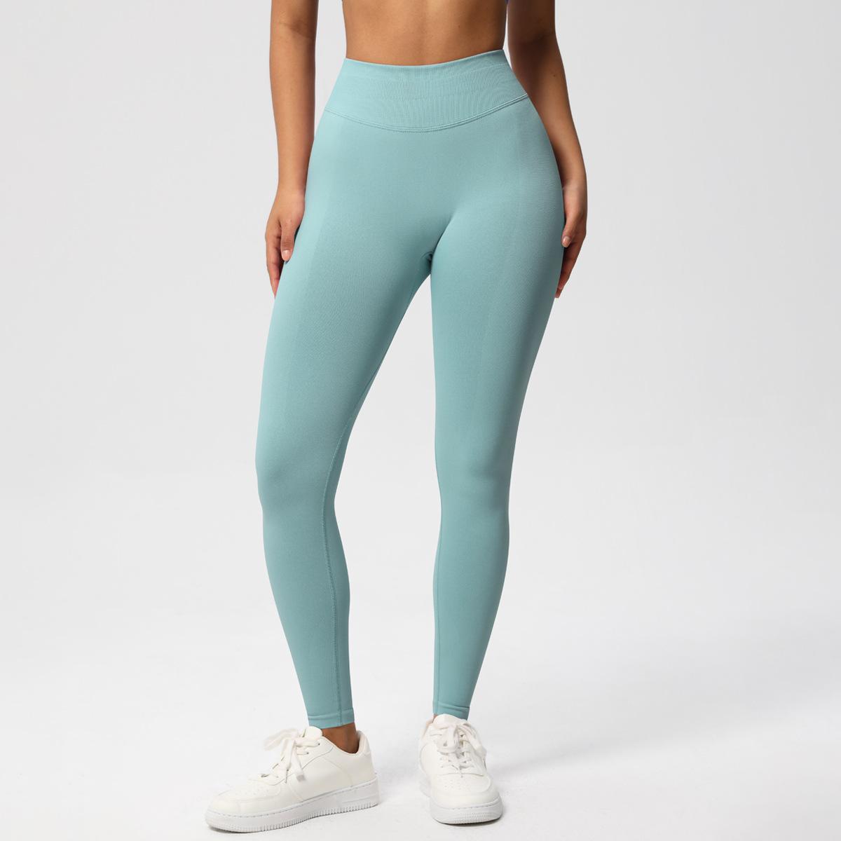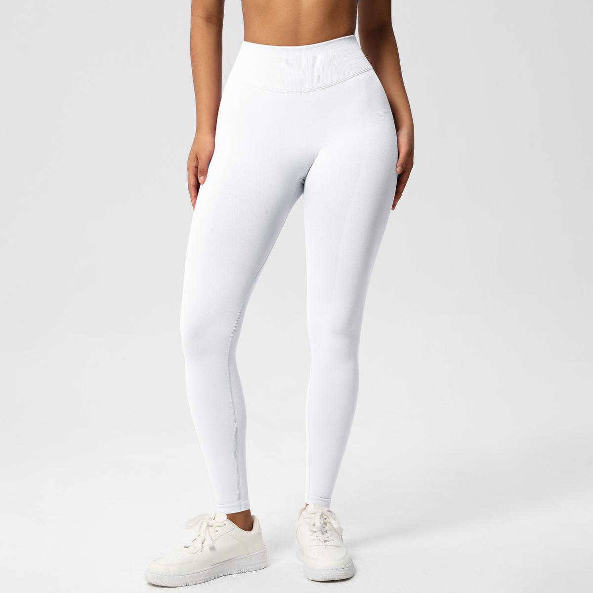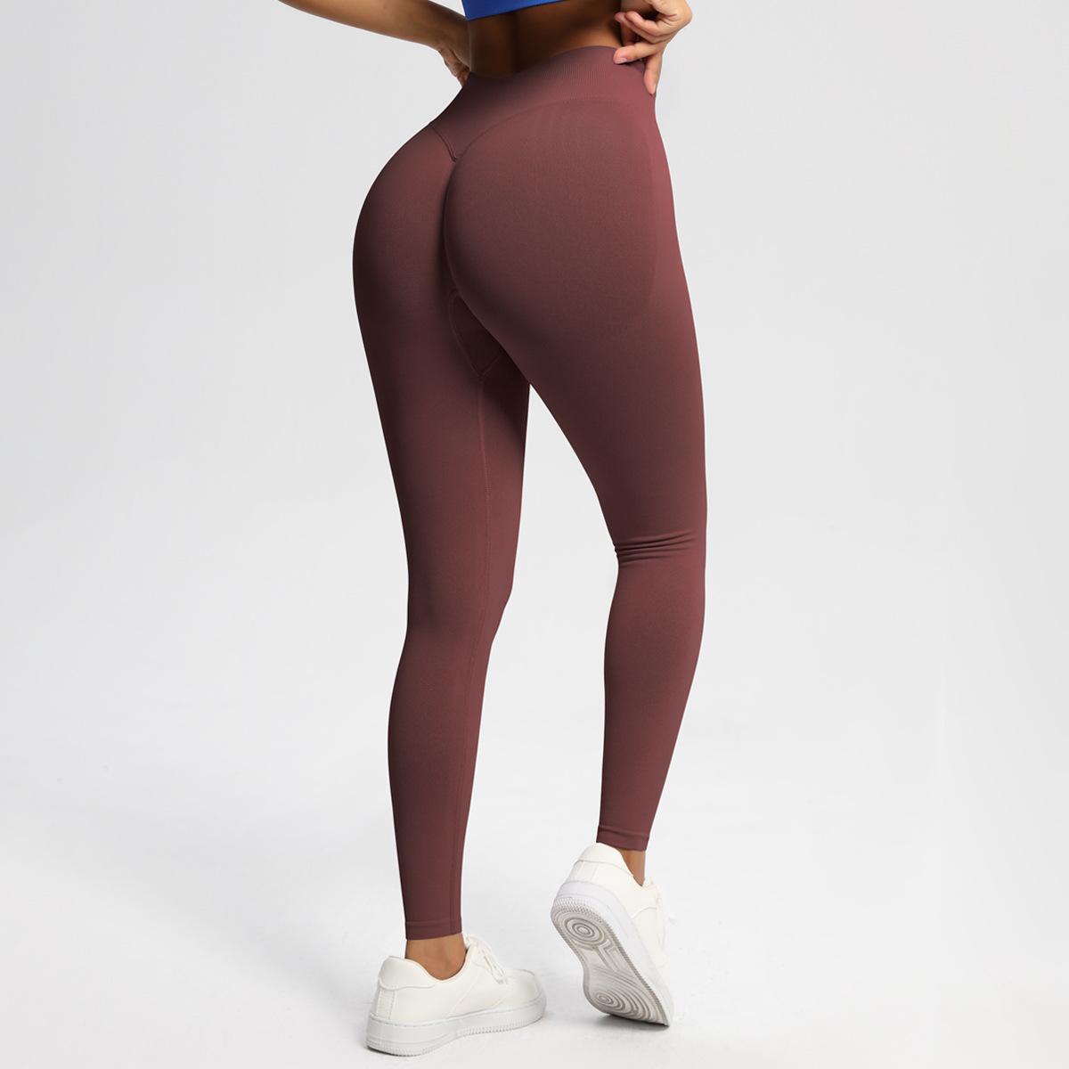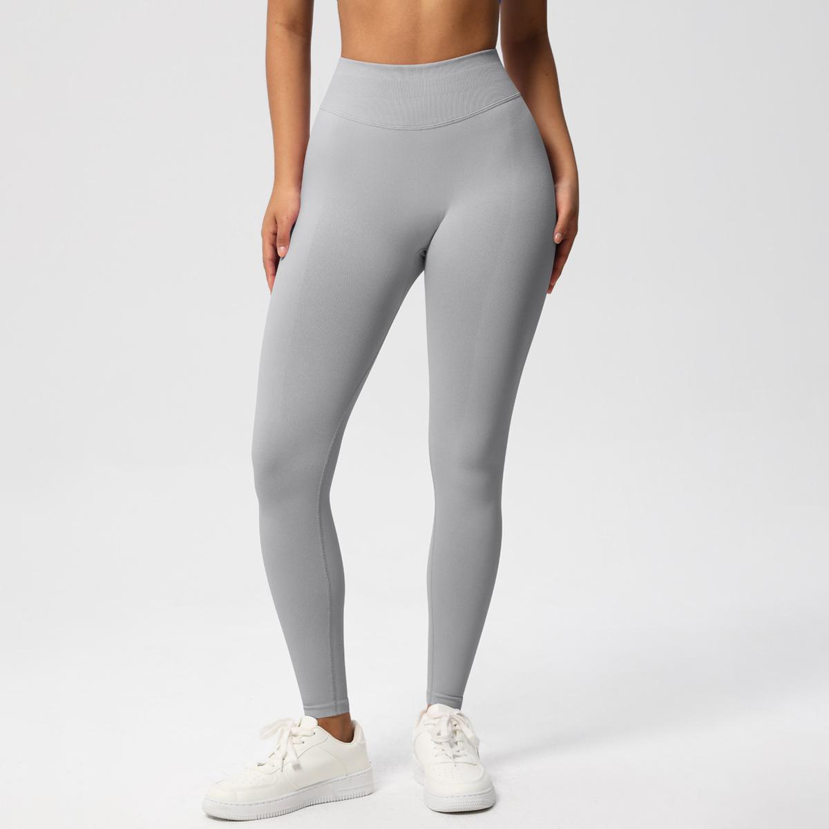 Nuevo color sólido transfronterizo de tres secciones con cintura arrugada y cadera, pantalones ajustados de cintura baja, pantalones deportivos para correr y fitness sin costuras para yoga