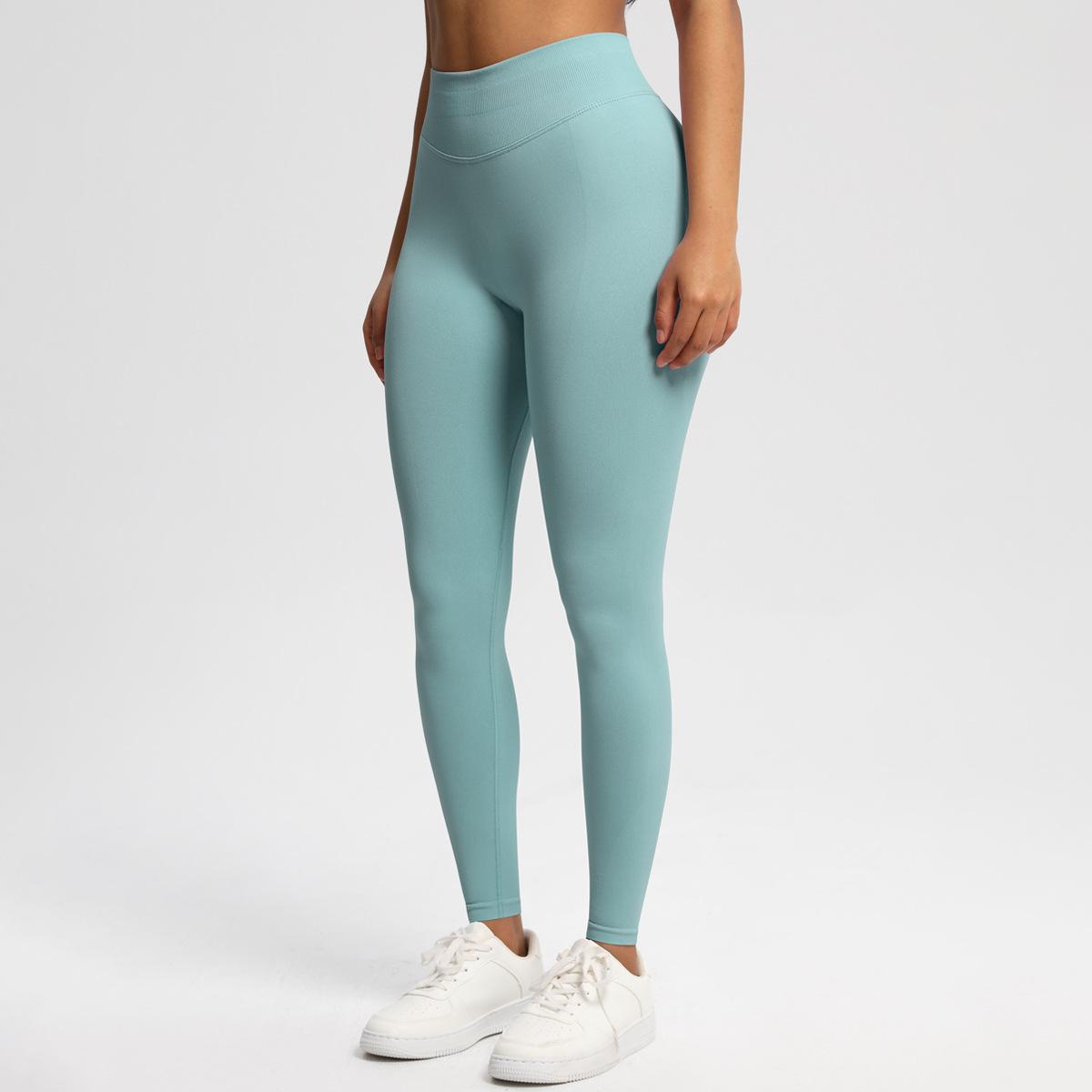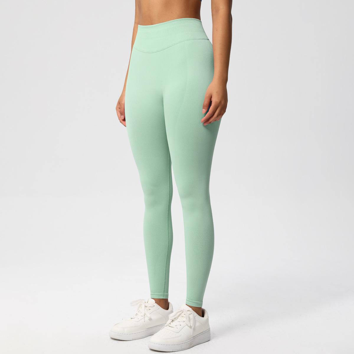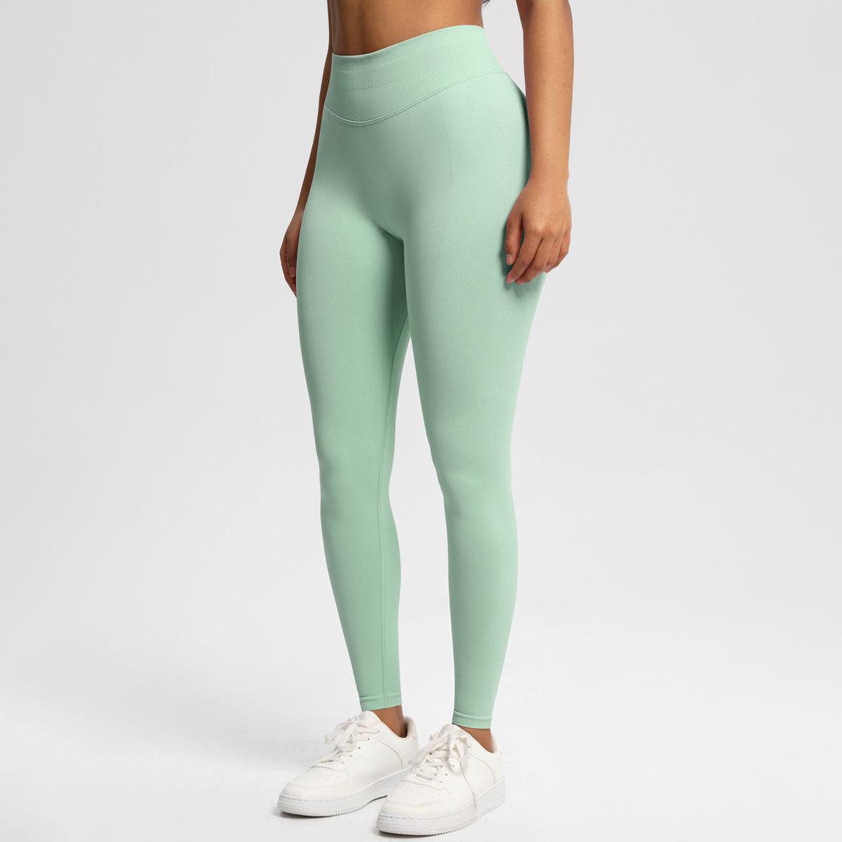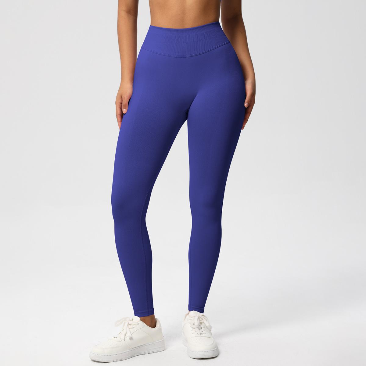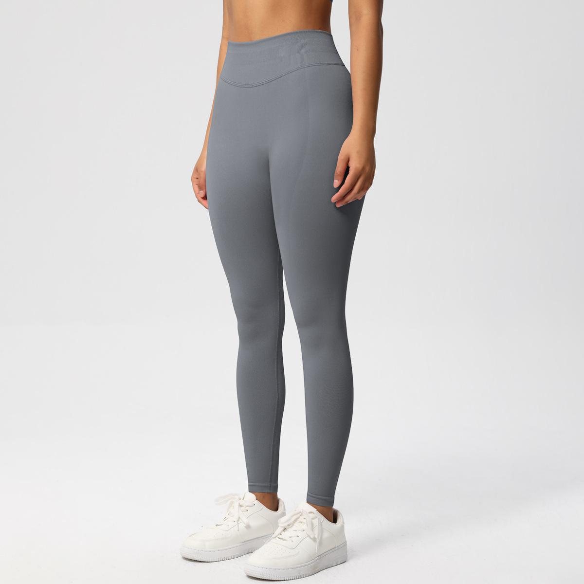 Nuevo color sólido transfronterizo de tres secciones con cintura arrugada y cadera, pantalones ajustados de cintura baja, pantalones deportivos para correr y fitness sin costuras para yoga