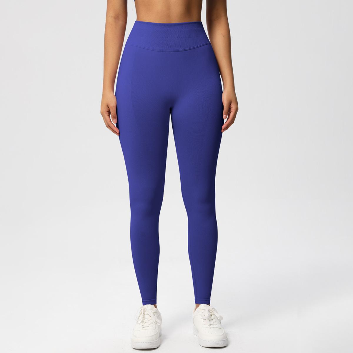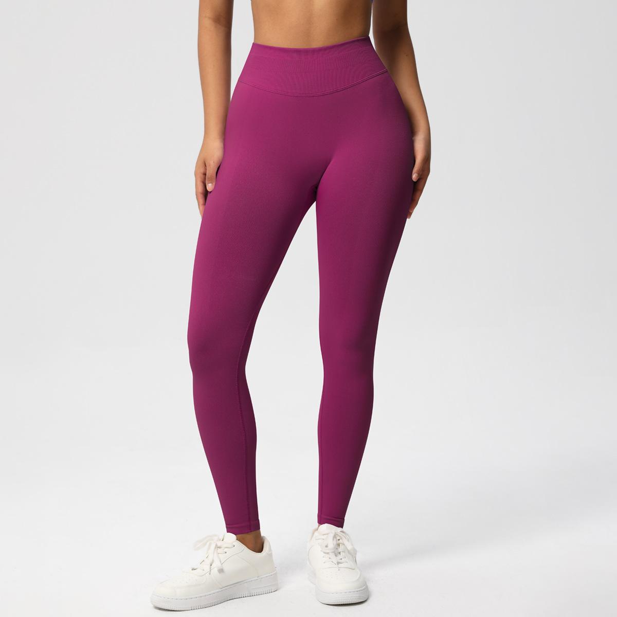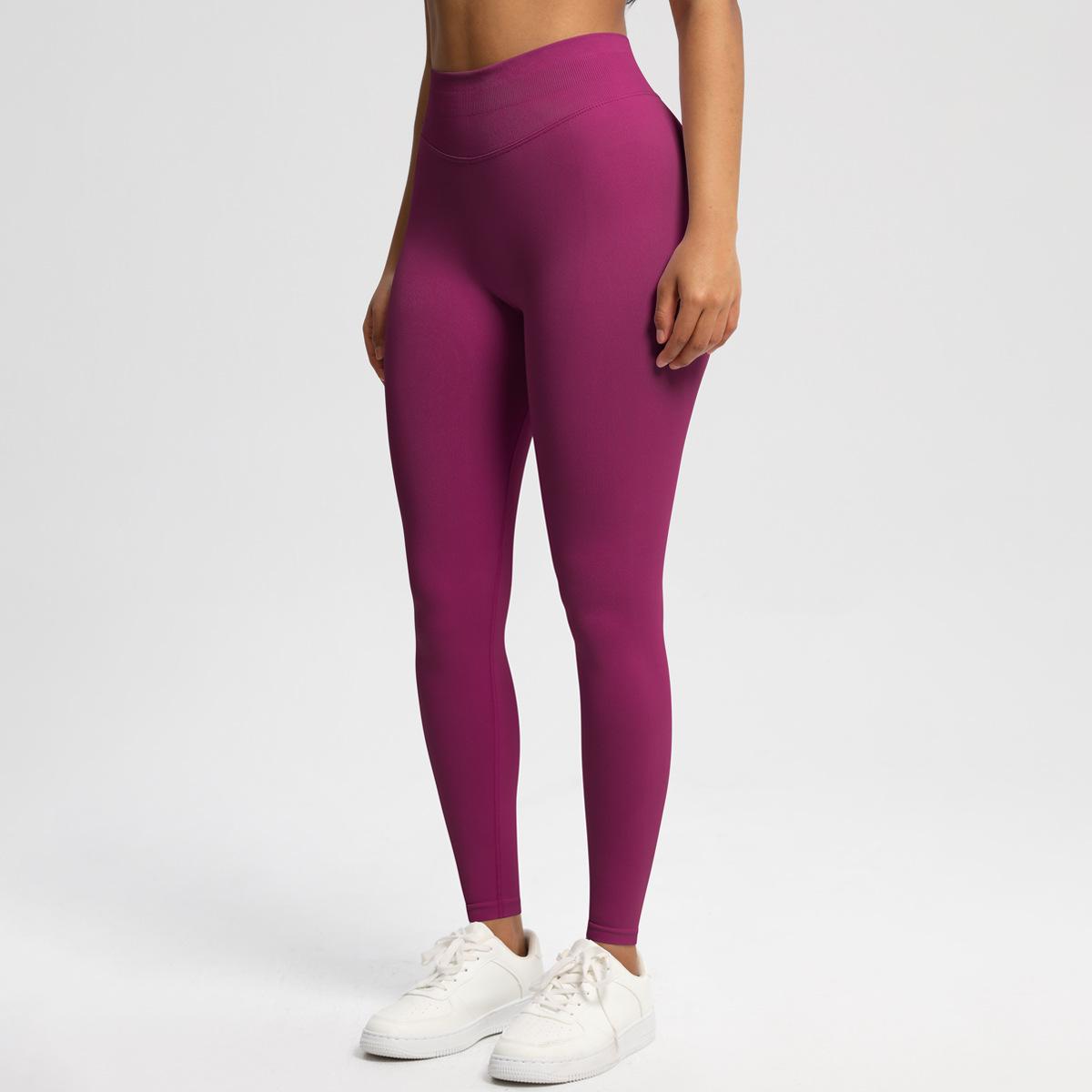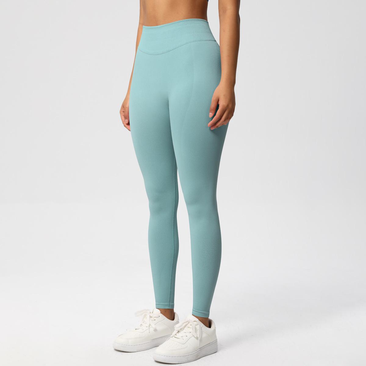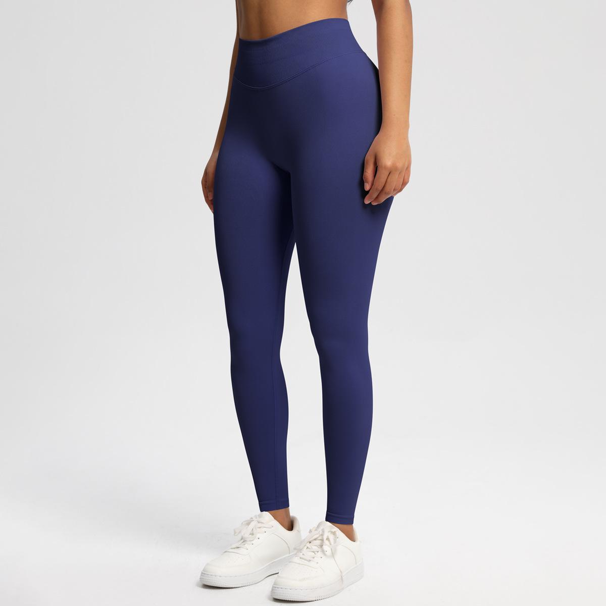 Nuevo color sólido transfronterizo de tres secciones con cintura arrugada y cadera, pantalones ajustados de cintura baja, pantalones deportivos para correr y fitness sin costuras para yoga