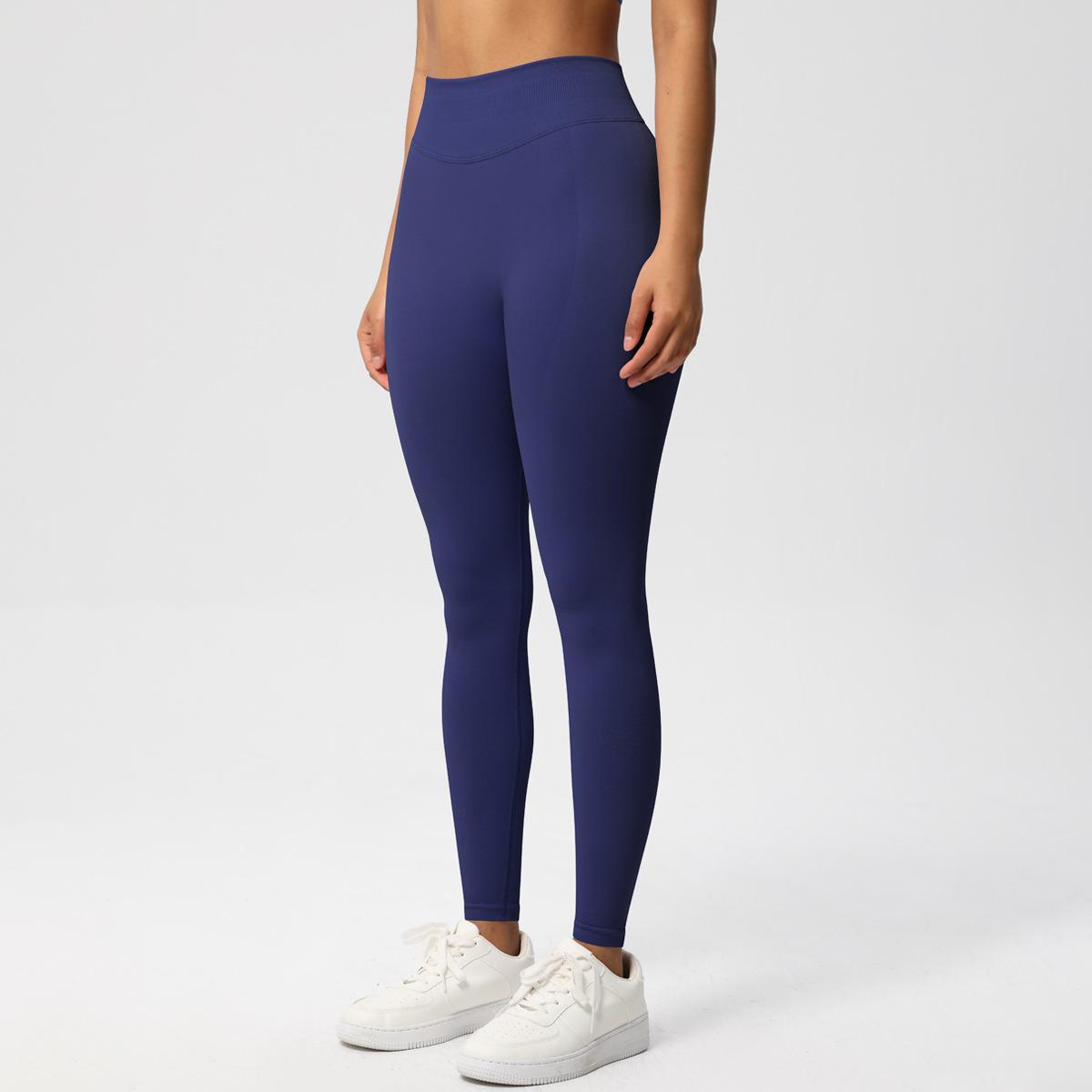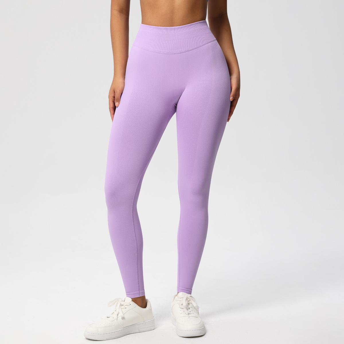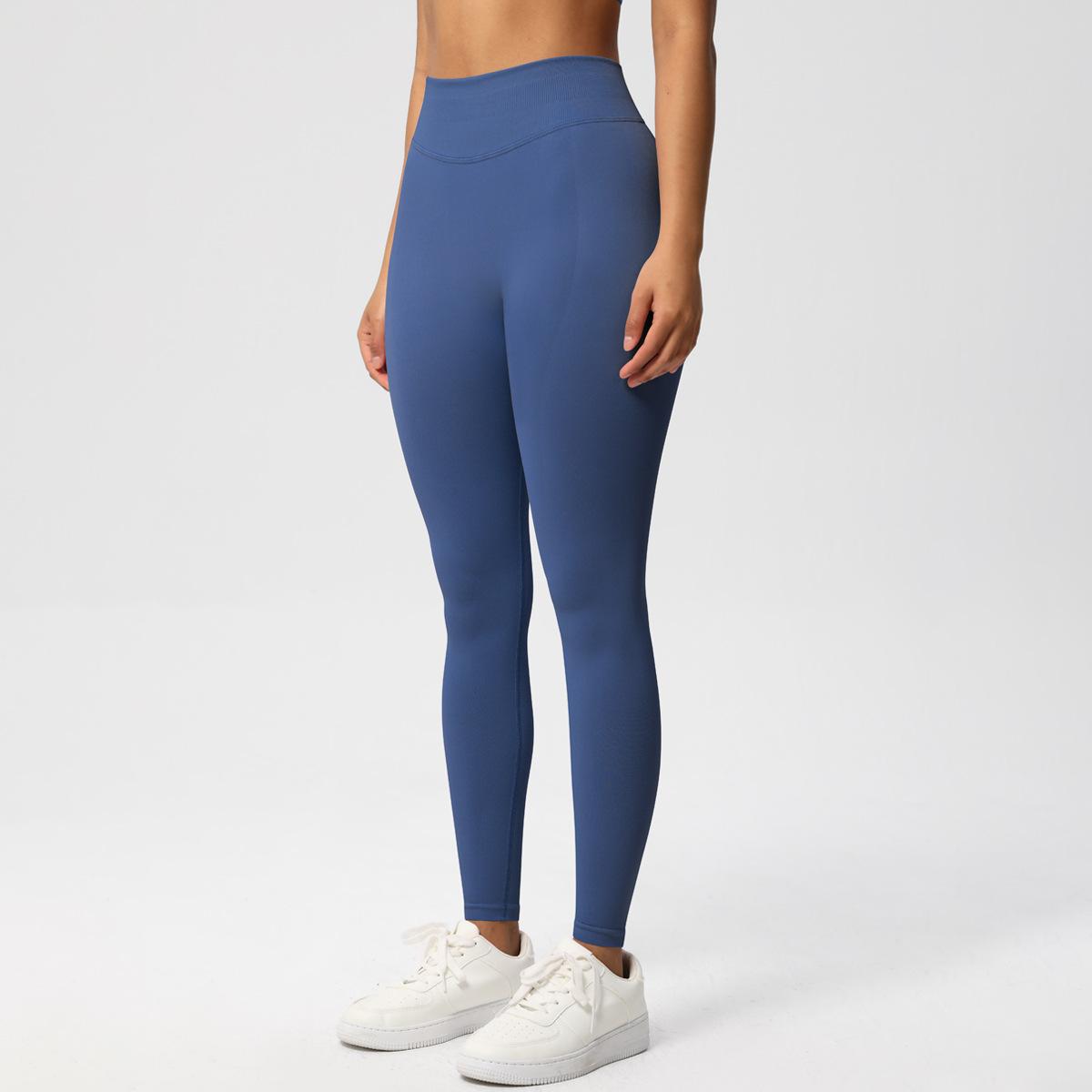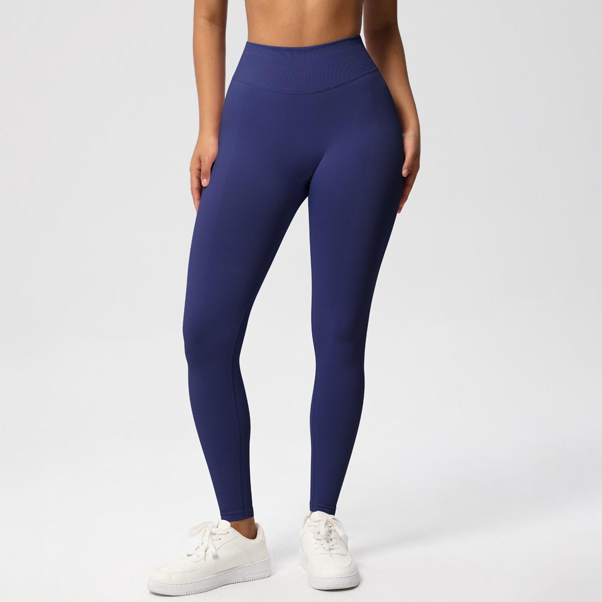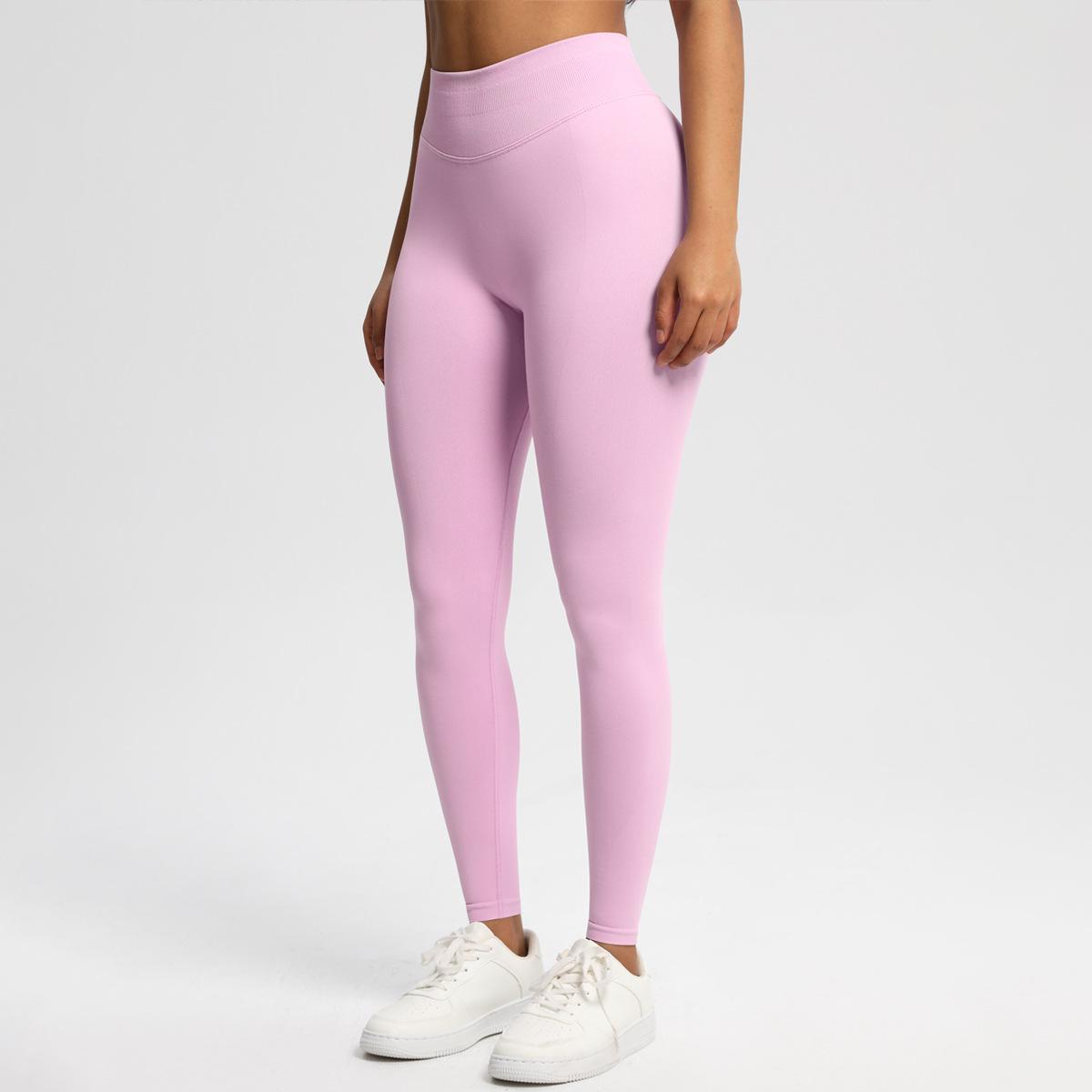 Nuevo color sólido transfronterizo de tres secciones con cintura arrugada y cadera, pantalones ajustados de cintura baja, pantalones deportivos para correr y fitness sin costuras para yoga