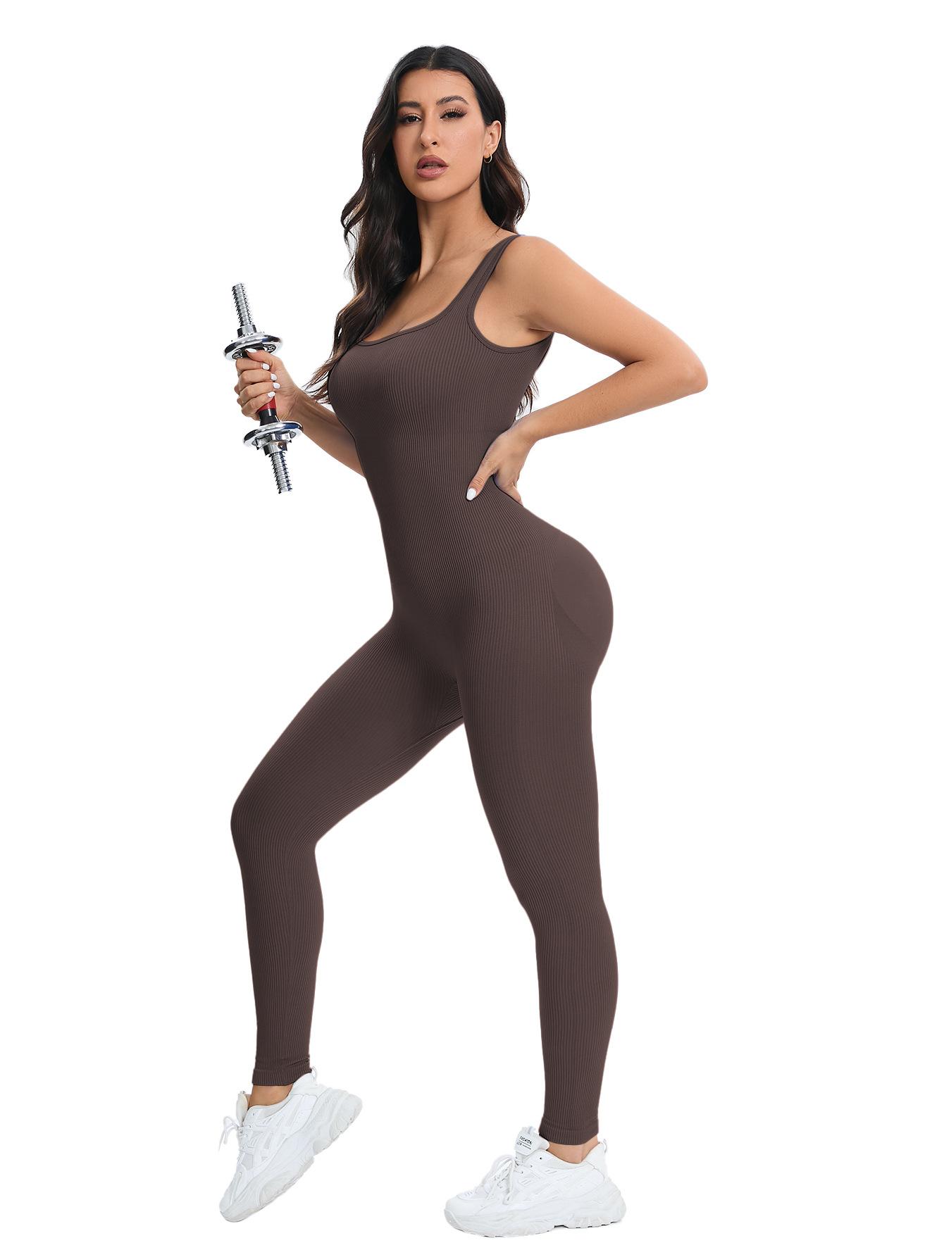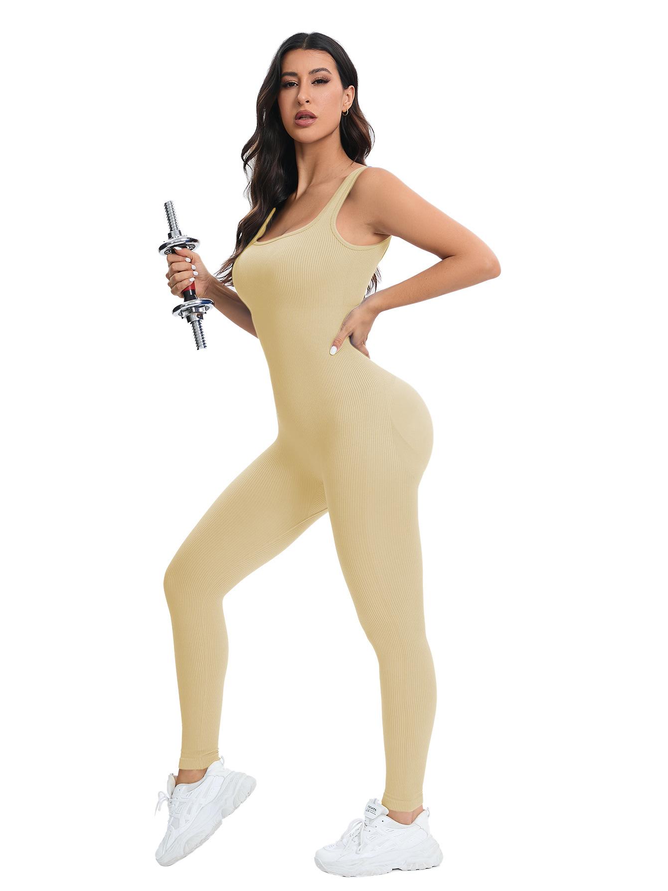 Traje de yoga de una pieza sin costuras con espalda descubierta, pantalones de yoga de hilo de secado rápido sexys europeos y americanos, mono de entrenamiento de fitness