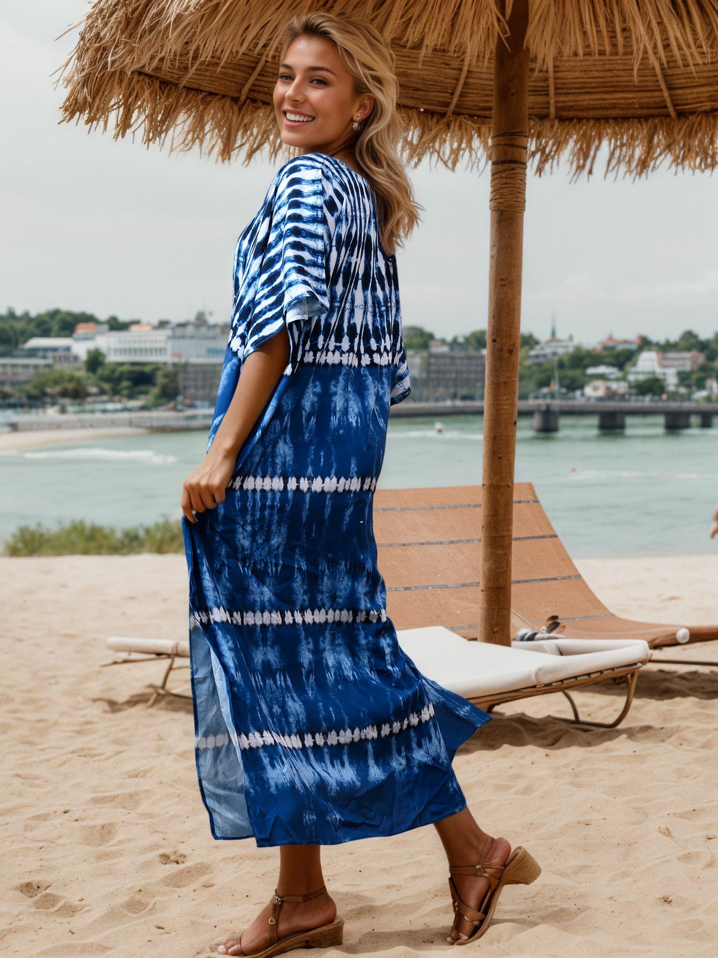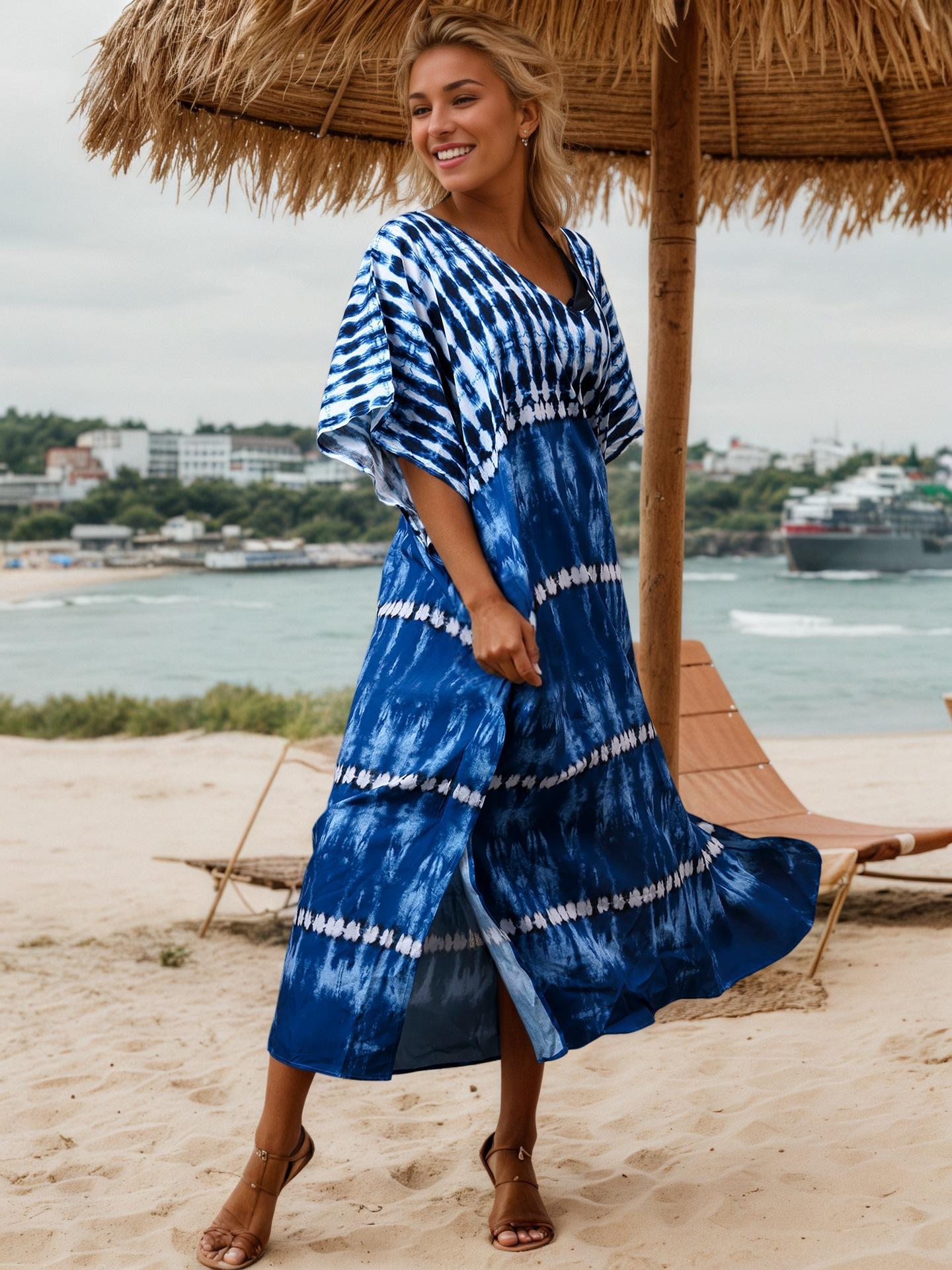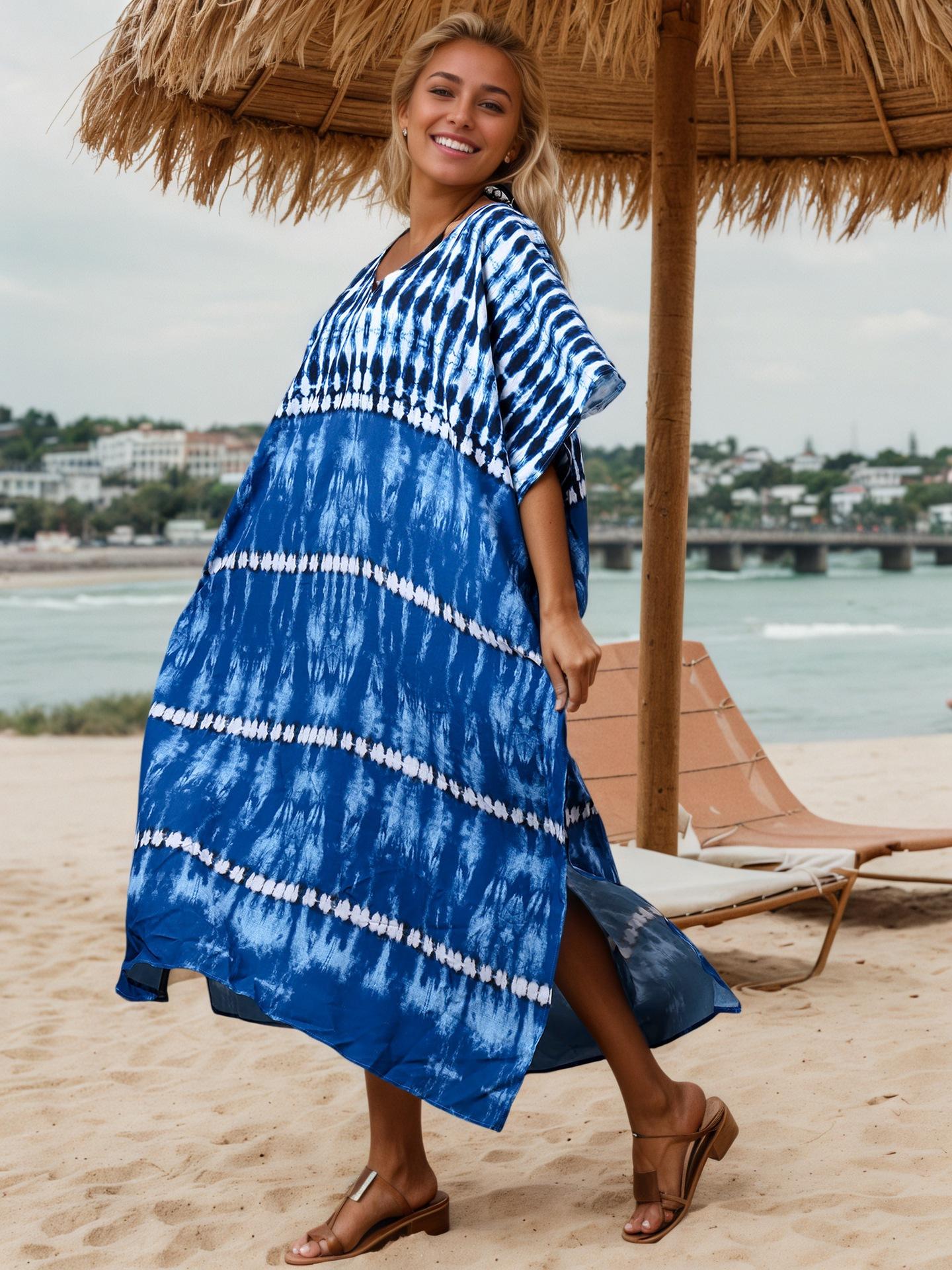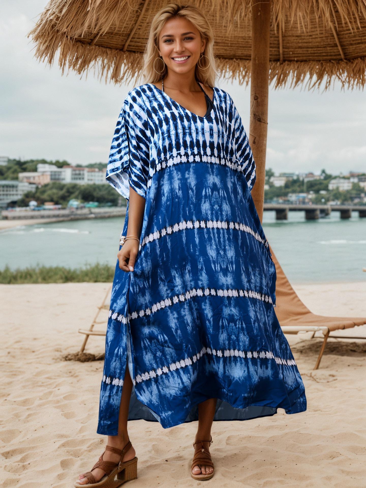 Nueva Llegada Hombre Algodón Tie-Dye Estampado Blusa de Playa Posicionamiento Estampado Bata Bikini Protector Solar Traje de Baño Blusa Transfronteriza