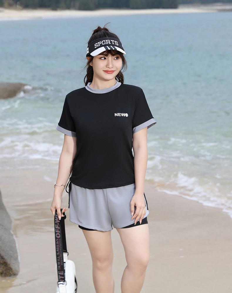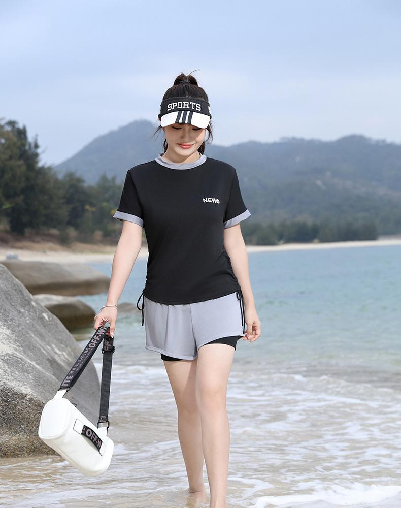 Traje de Baño Deportivo para Mujer Bóxer Dividido Talla Grande Chica Gordita Conservador Delgado Aguas Termales Rosa Nuevo Traje de Baño Venta al por Mayor